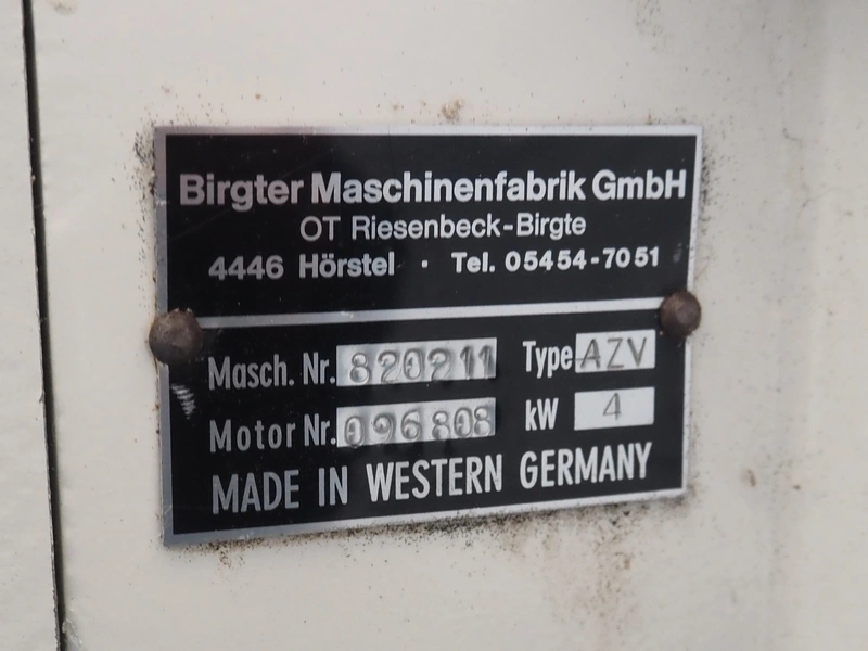 Birgter Maschinenfabrik GmbH mobile organic shredder, type: AZV, number: 820211, year of construction: 1982, 380 V, 50 Hz, 8.7 A, 4 kW, dimensions: 820 mm x 820 mm x 1480 mm.
