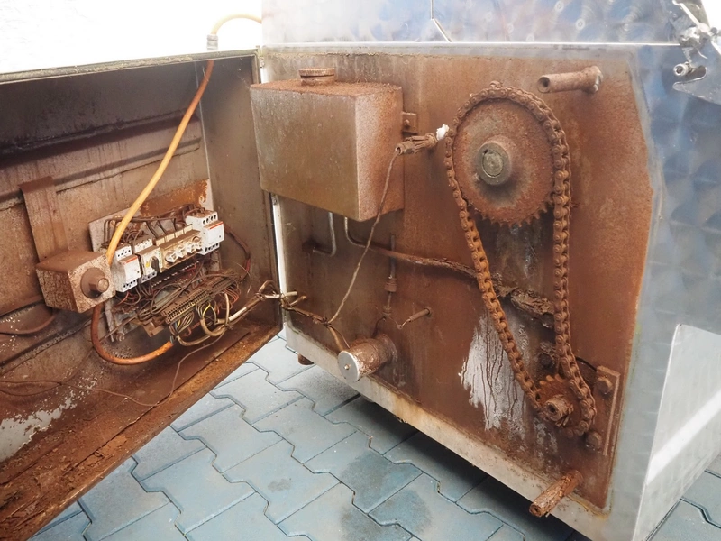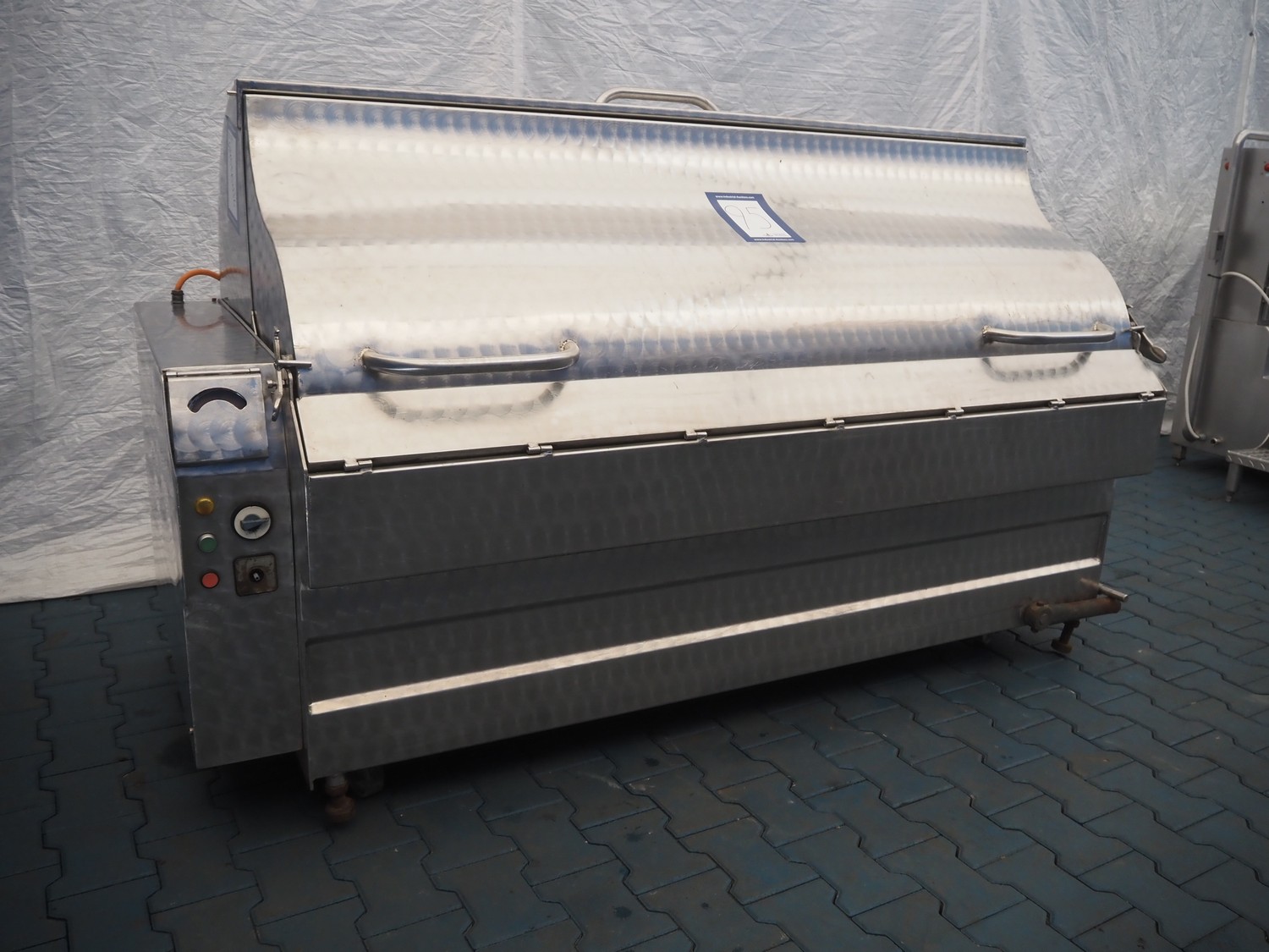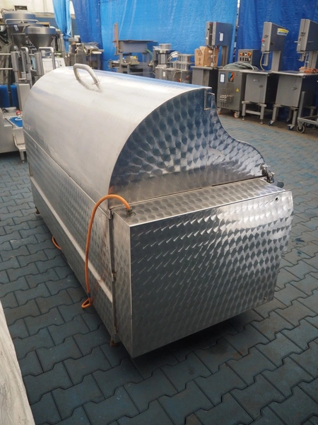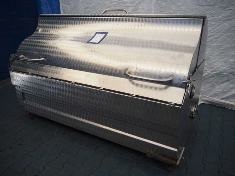 Mobile scalding and dehairing machine, inside dimensions: 1800 mm x 800 mm, total dimensions: 2150 mm x 1000 mm x 1400 mm.