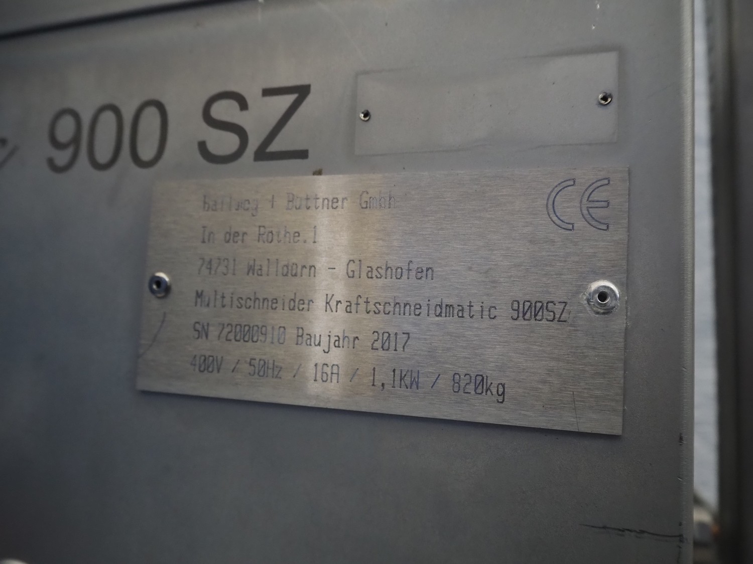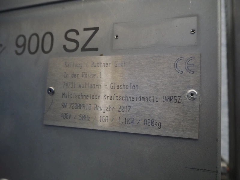 Ballweg + Böttner GmbH mobile multi slicer, type: 900SZ, serial number: 72000910, year of construction: 2017, 400 V, 50 Hz, 16 A, 1.1 kW, weight: 820 kg, working width: 850 mm, total dimensions: 1050 mm x 1350 mm x 2050 mm.
