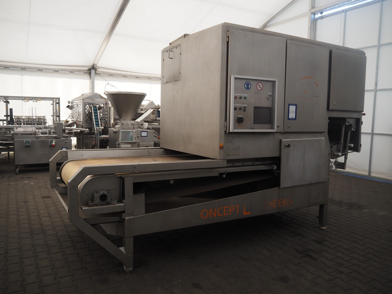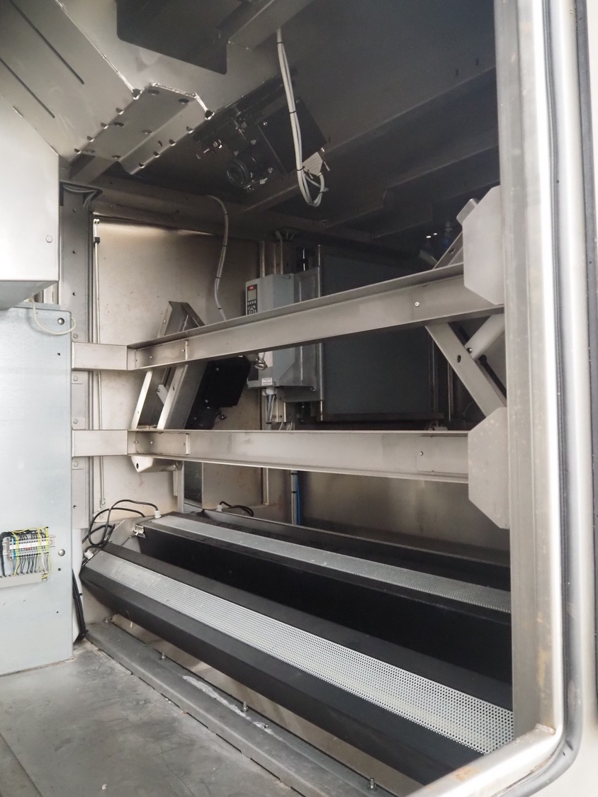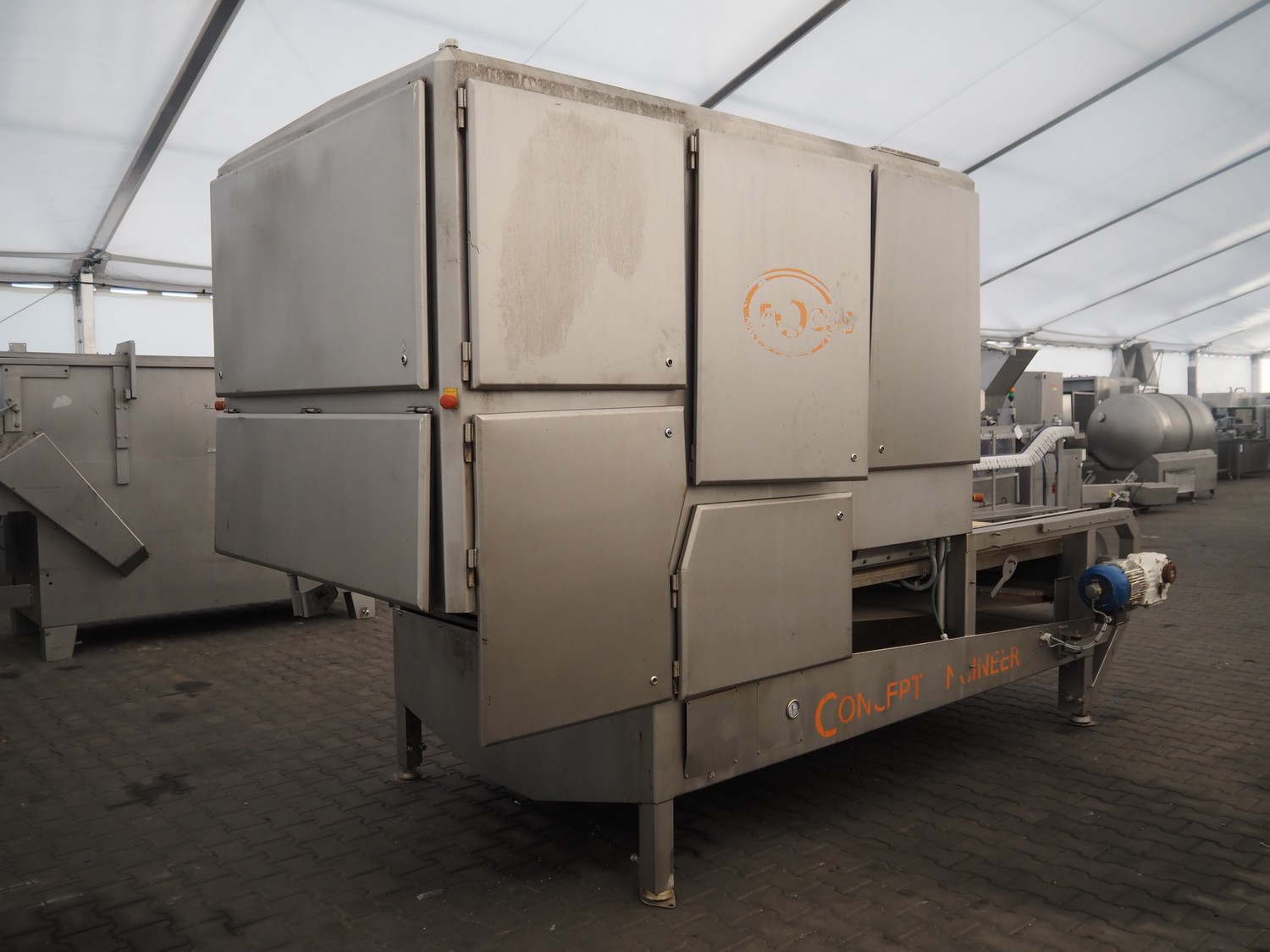 Concept Engineers optical sorting machine, type: OSS12142030, machine number: 99228, year of construction: 2009, 400 V, 3 Ph, 50 Hz, 14 A, weight: 2500 kg, plastic belt, belt width: 1400 mm, clearance: 1200 mm x 120 mm, total dimensions: 4150 mm x 1900 mm x 2600 mm.
