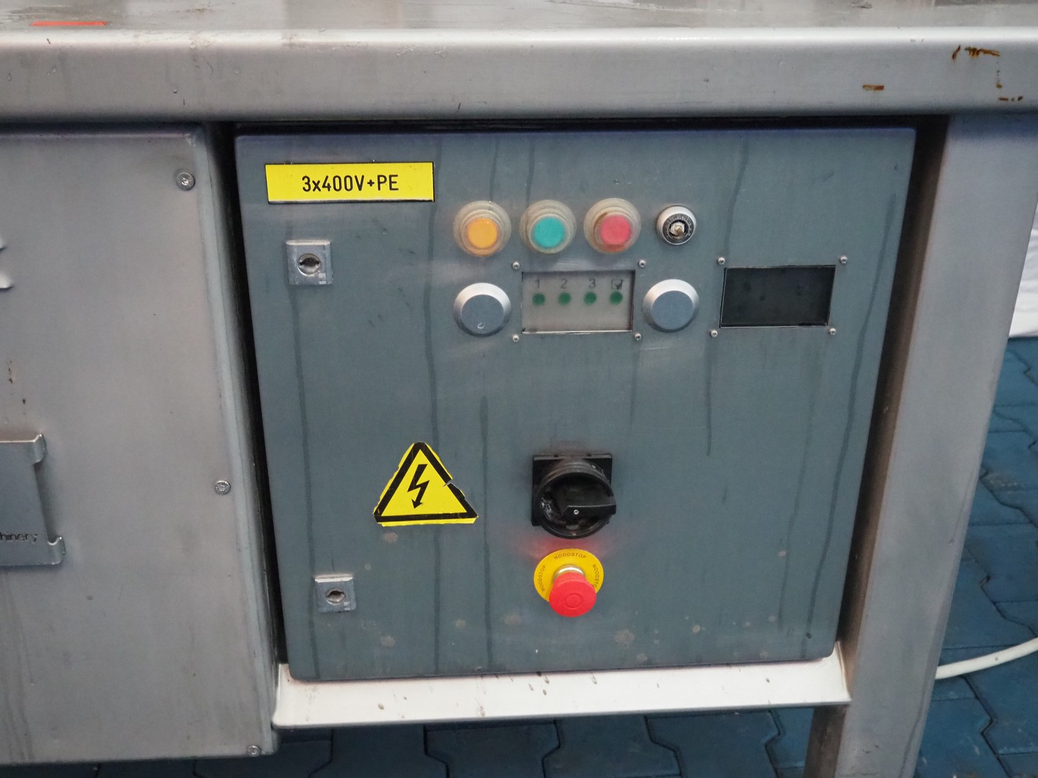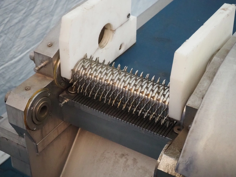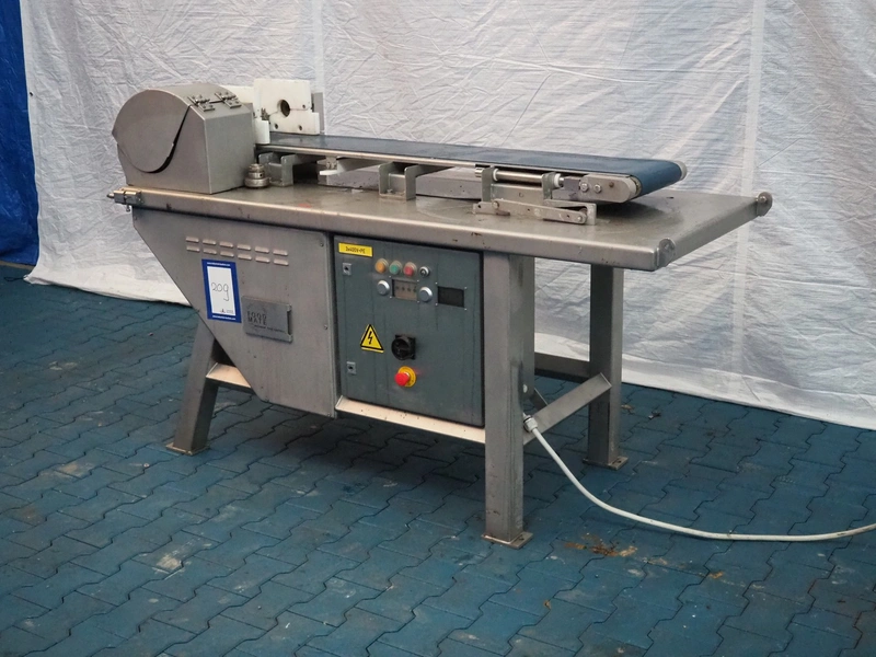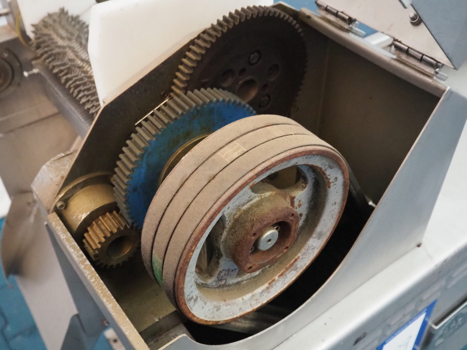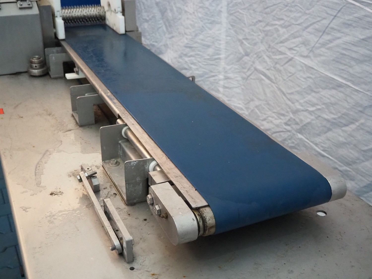 Foodmate tenderizer, plastic belt, belt width: 270 mm, working width: 230 mm, total dimensions: 2000 mm x 850 mm x 1200 mm. Incomplete.