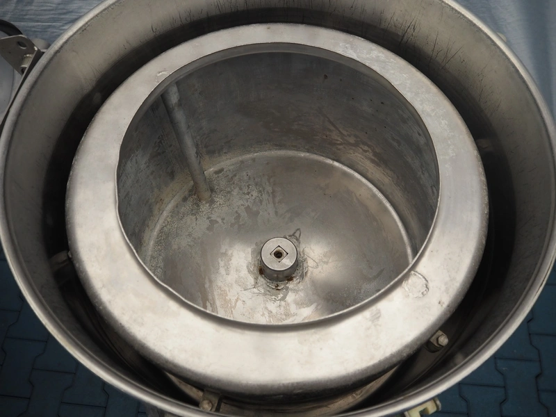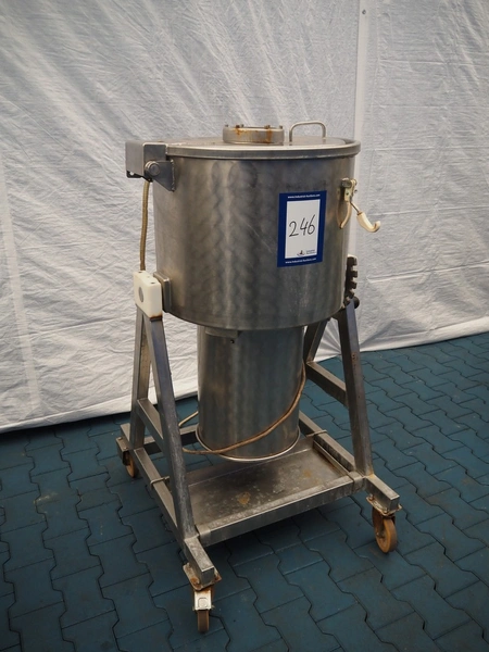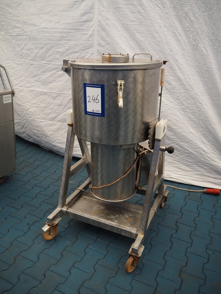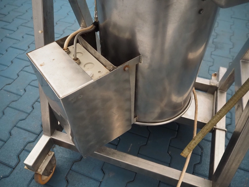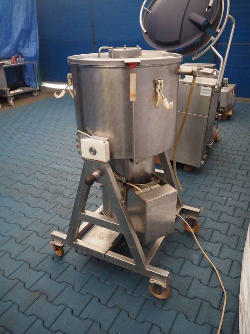 Röschermatic mobile vacuum tumbler, inside dimensions: Ø 500 mm x 350 mm, total dimensions: 850 mm x 800 mm x 1400 mm. Without vacuum pump.
