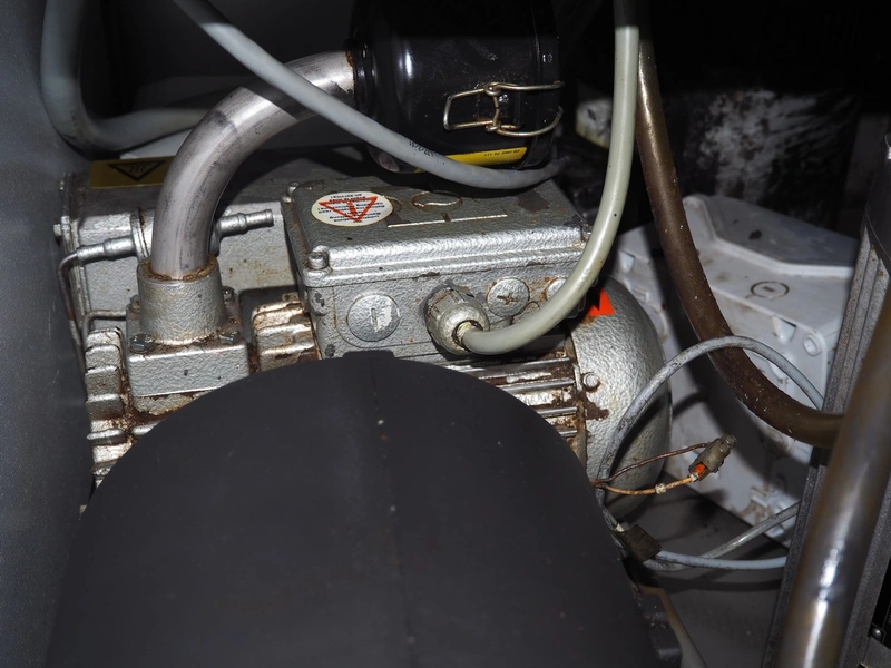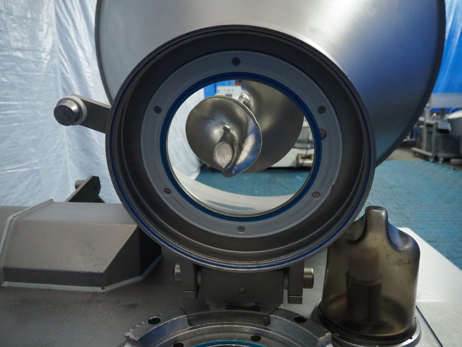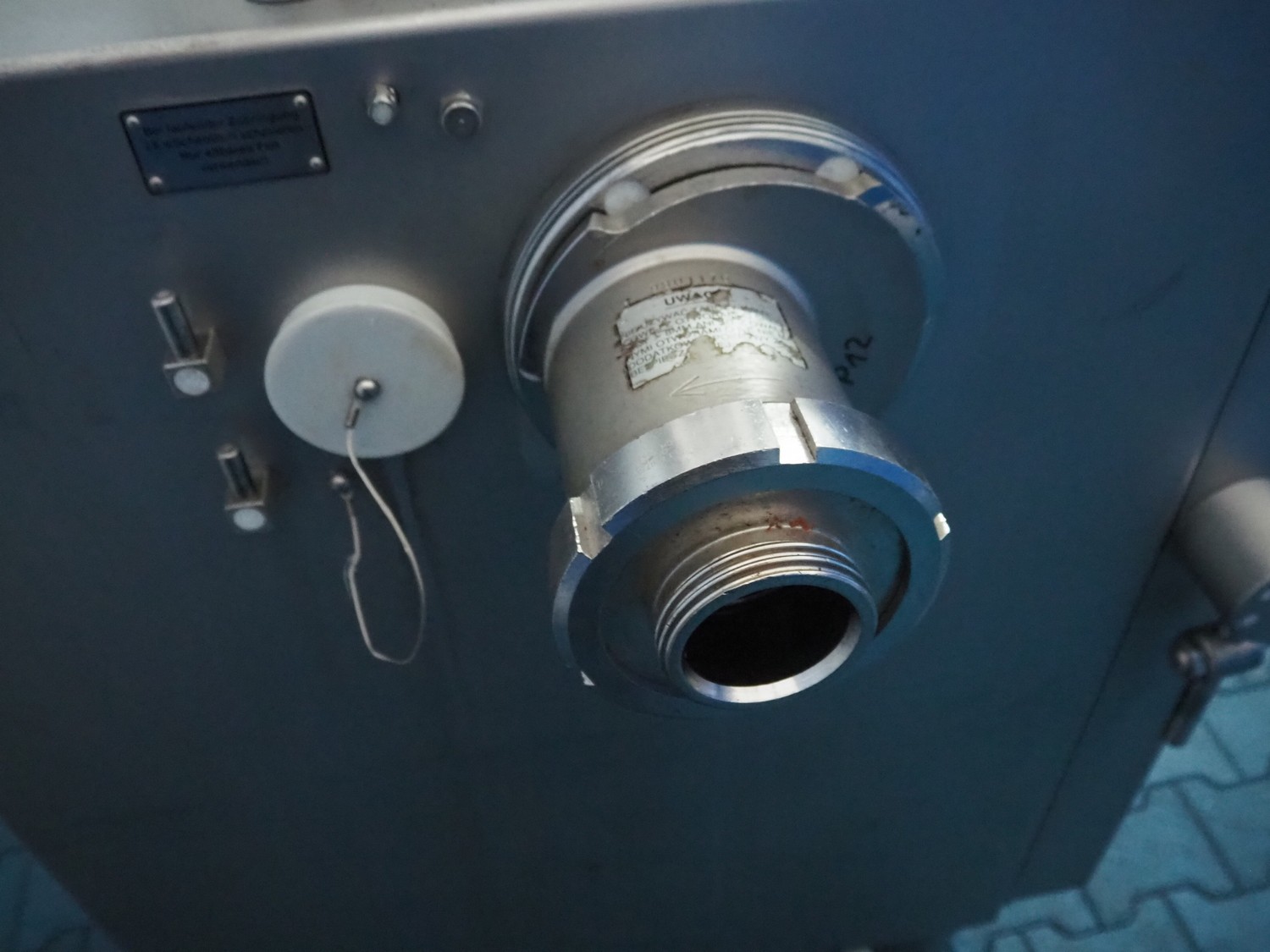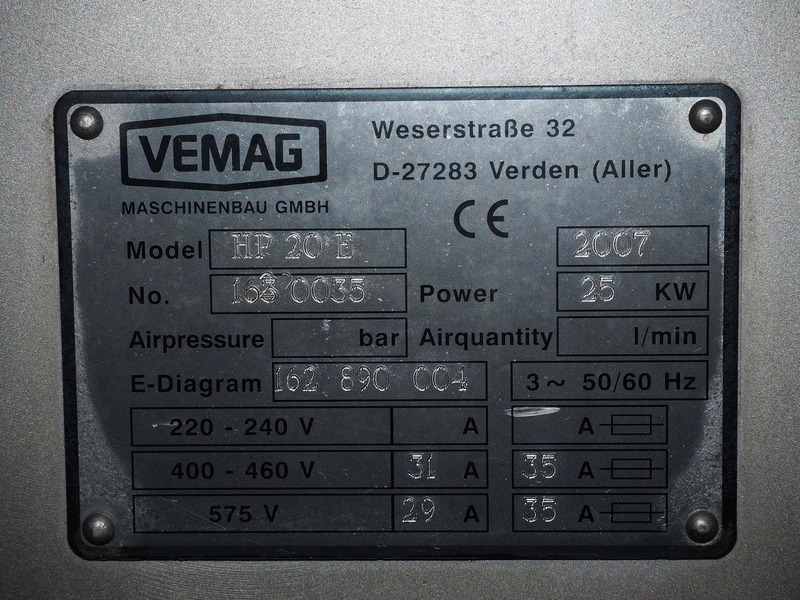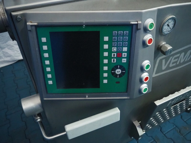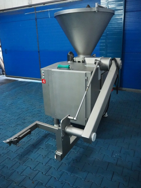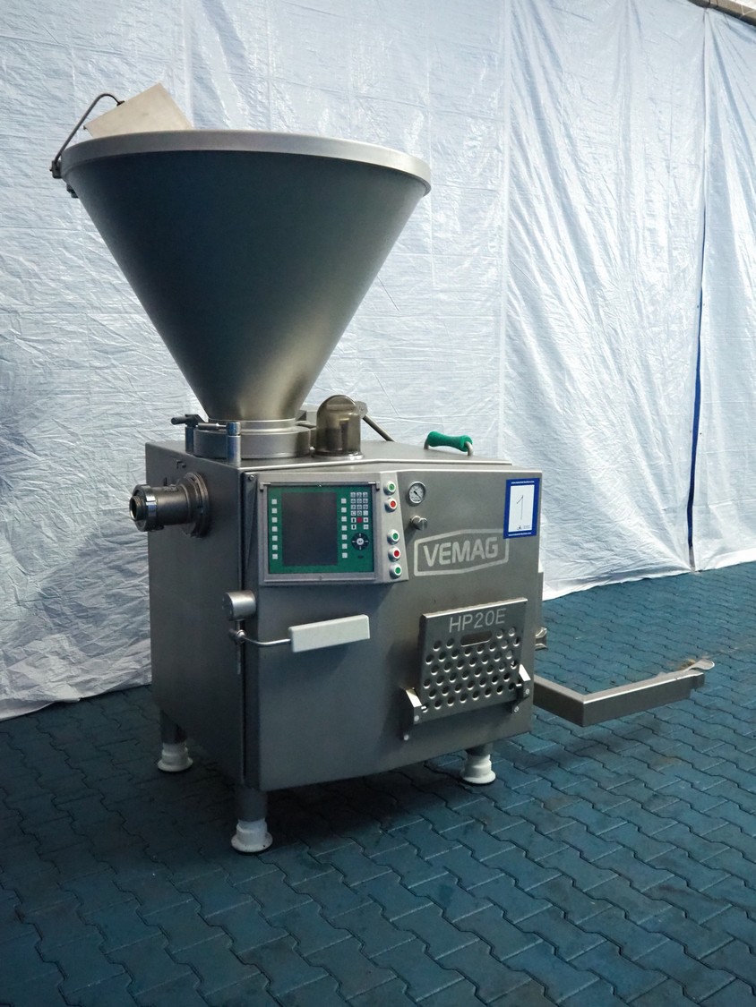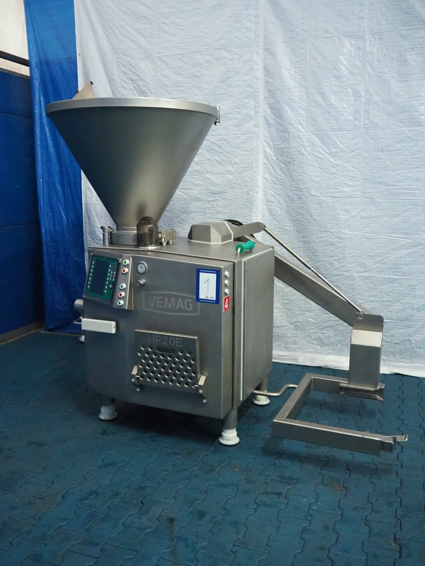 Vemag vacuum filling machine with lifter for meat bins, model: HP20E, number: 1630035, year of construction: 2007, 400-460/575 V, 3 Ph, 50/60 Hz, 31/35/29 A, 25 kW, dimensions: 2200 mm x 1400 mm x 2150 mm.