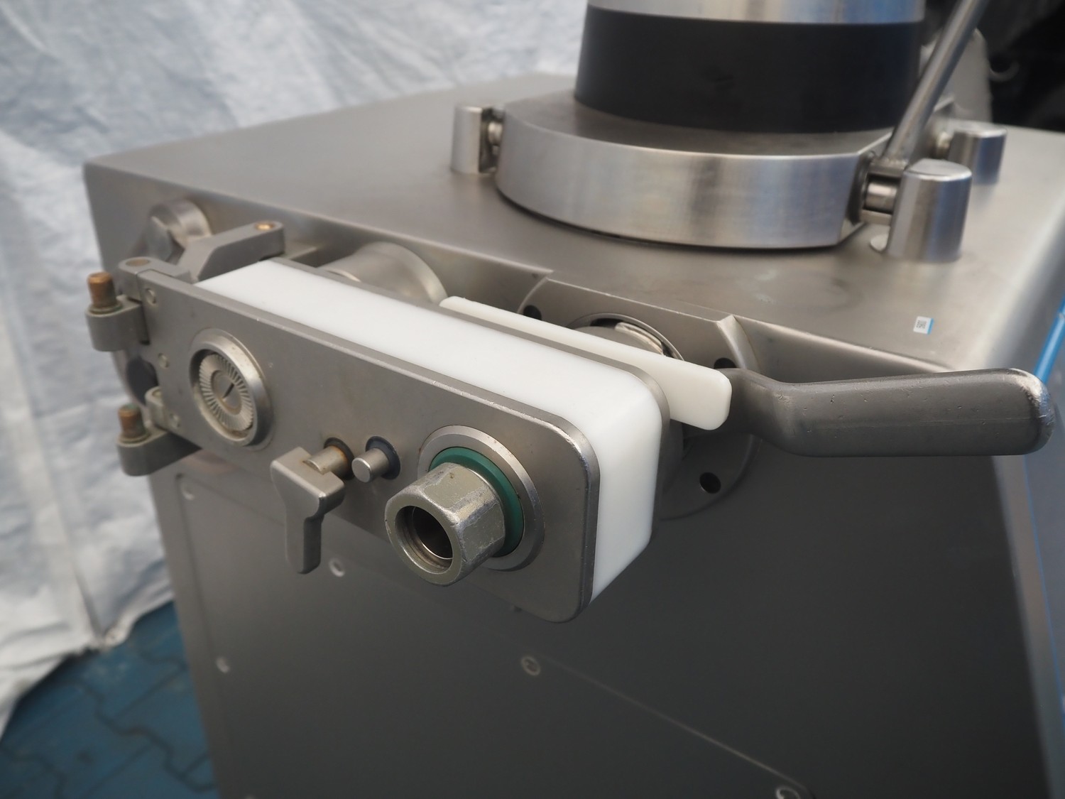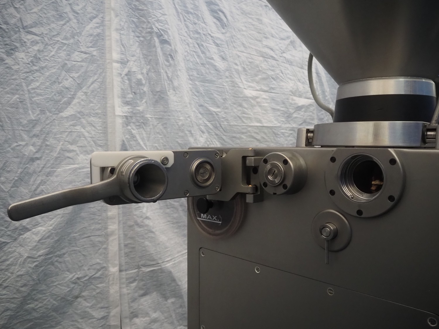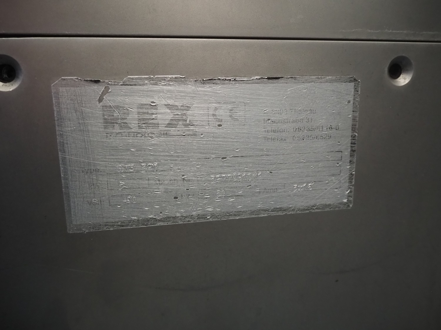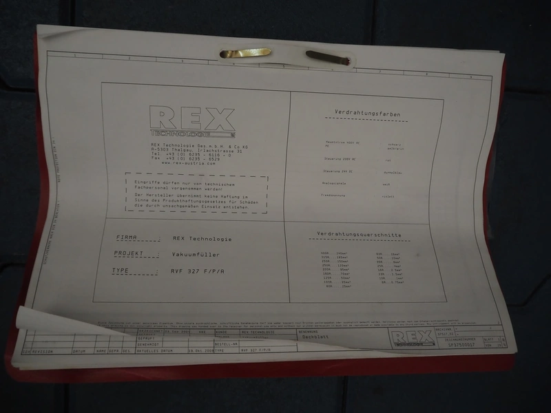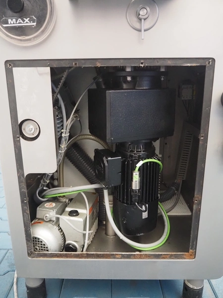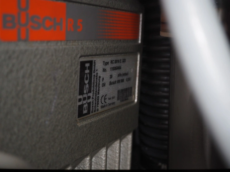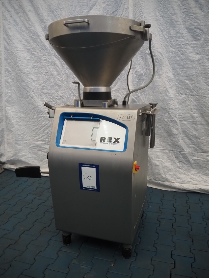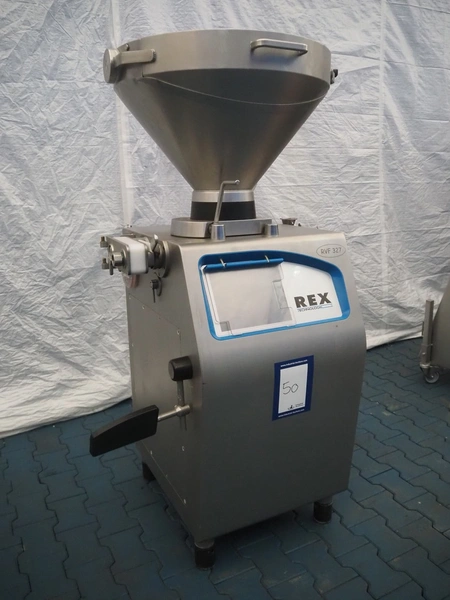 Rex Technologie GmbH vacuum filling machine, type: RVF 327, serial number: 2377091111, 400 V, 50 Hz, 3x16 A, 5 kW, with Busch vacuum pump, type: KC 0016 E 320, serial number: 1100558454, year of construction: 2011, capacity: 16 m³/h, total dimensions: 1150 mm x 800 mm x 1200 mm.