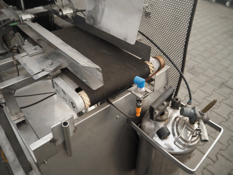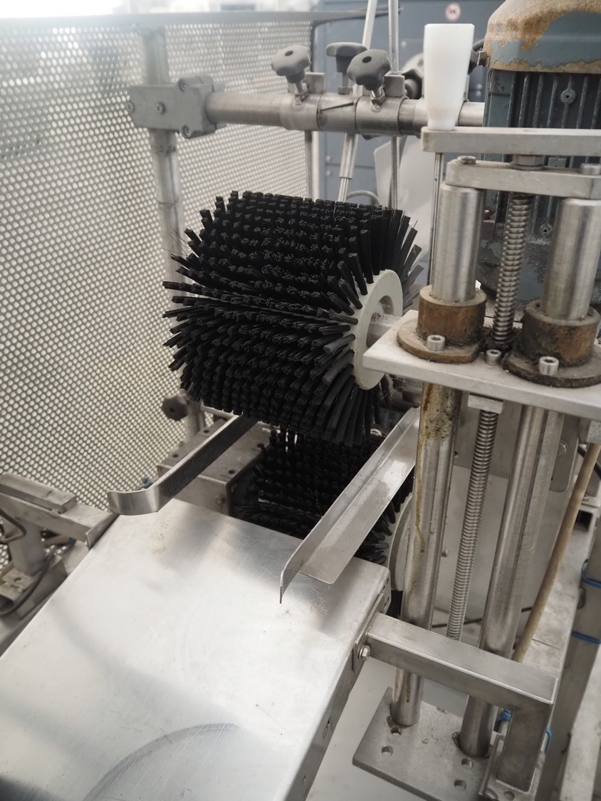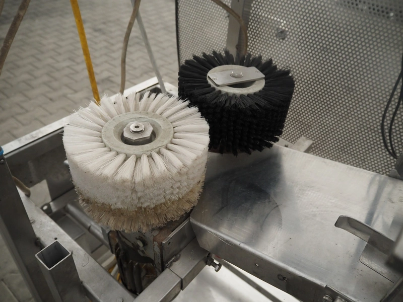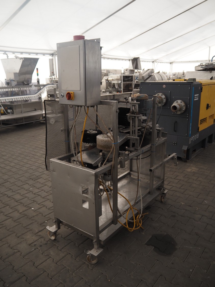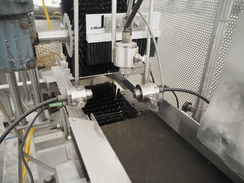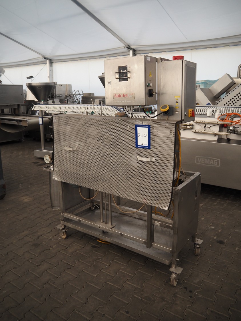 Autojet mobile spraying/cleaning belt, brush width: (2x) 100 mm and (2x) 150 mm, plastic belt, belt width: 220 mm, total dimensions: 1670 mm x 650 mm x 1900 mm.