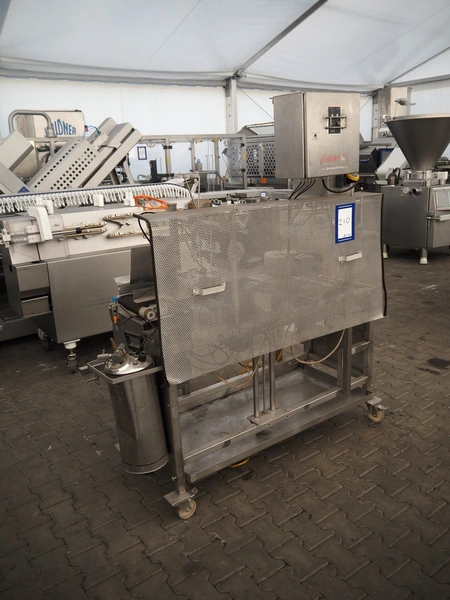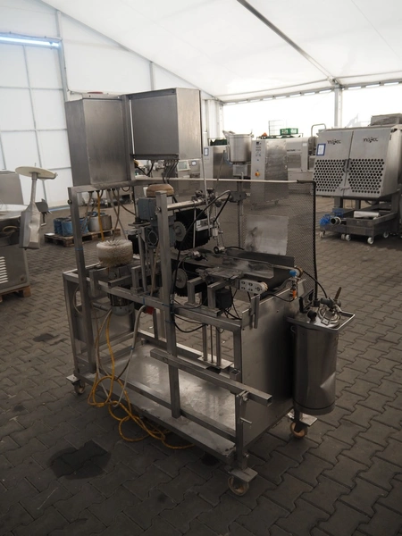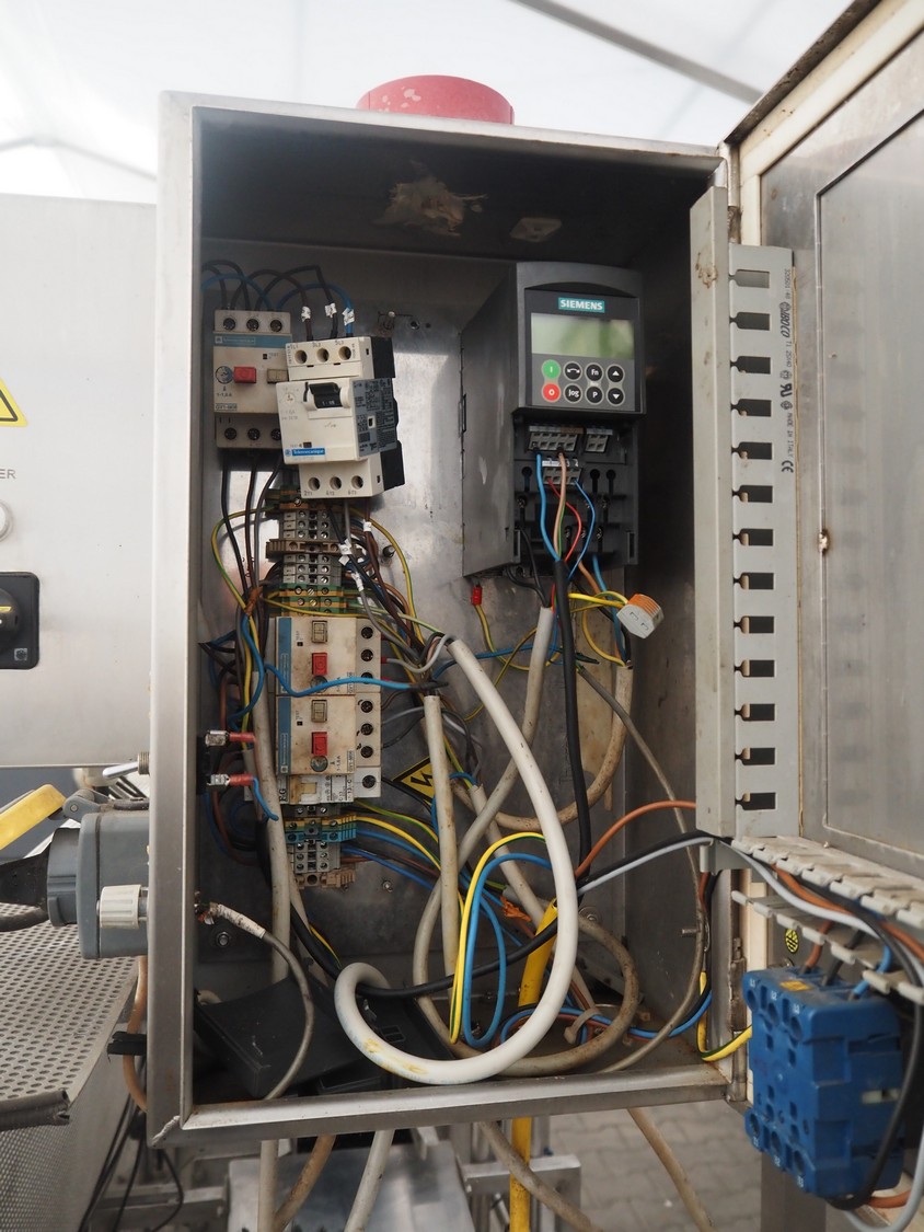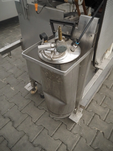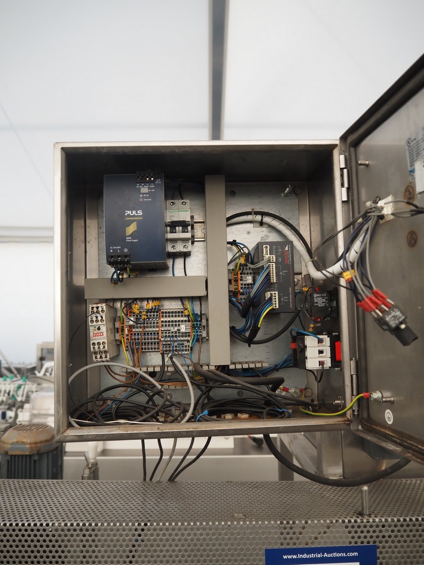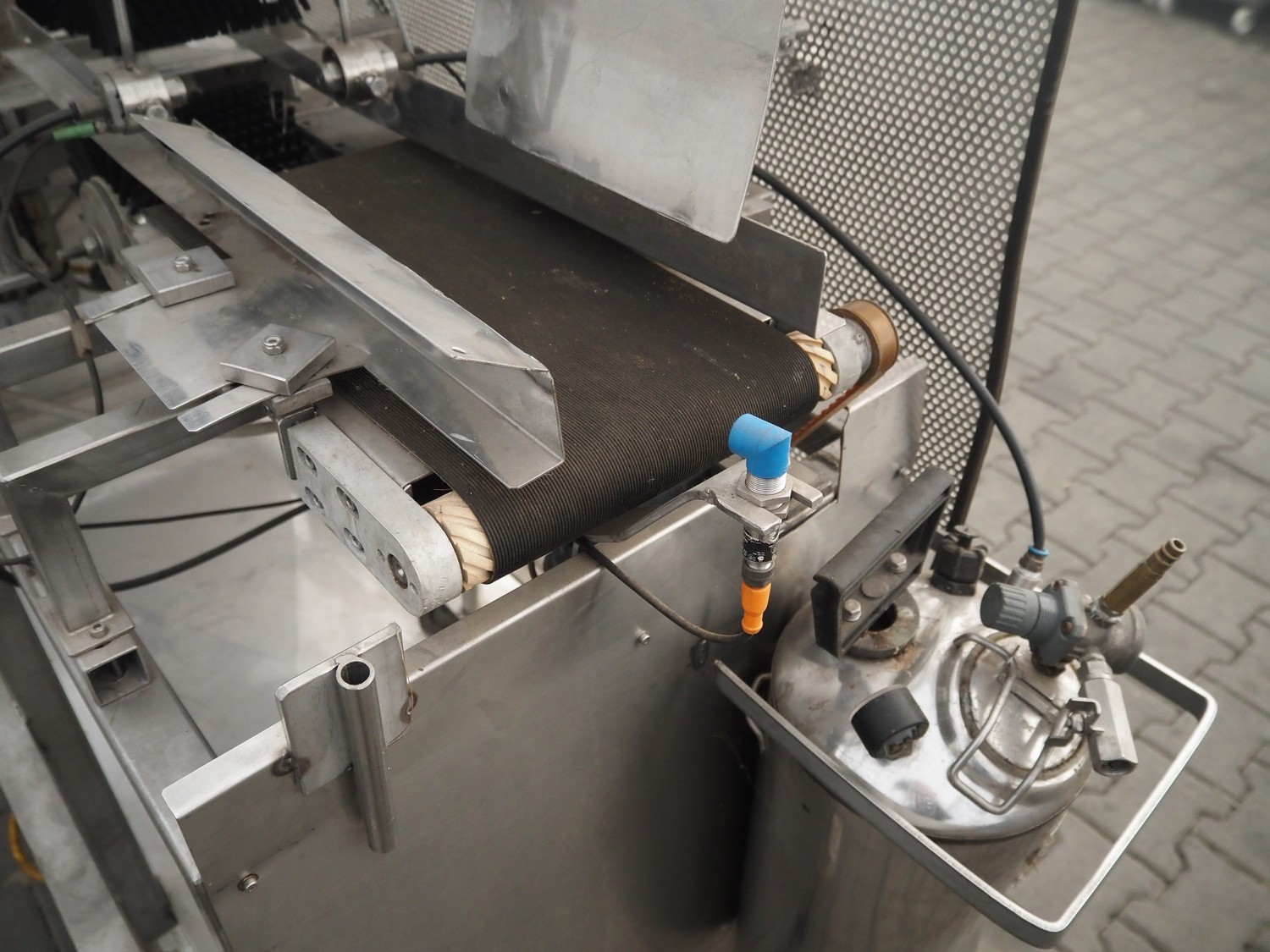 Autojet mobile spraying/cleaning belt, brush width: (2x) 100 mm and (2x) 150 mm, plastic belt, belt width: 220 mm, total dimensions: 1670 mm x 650 mm x 1900 mm.