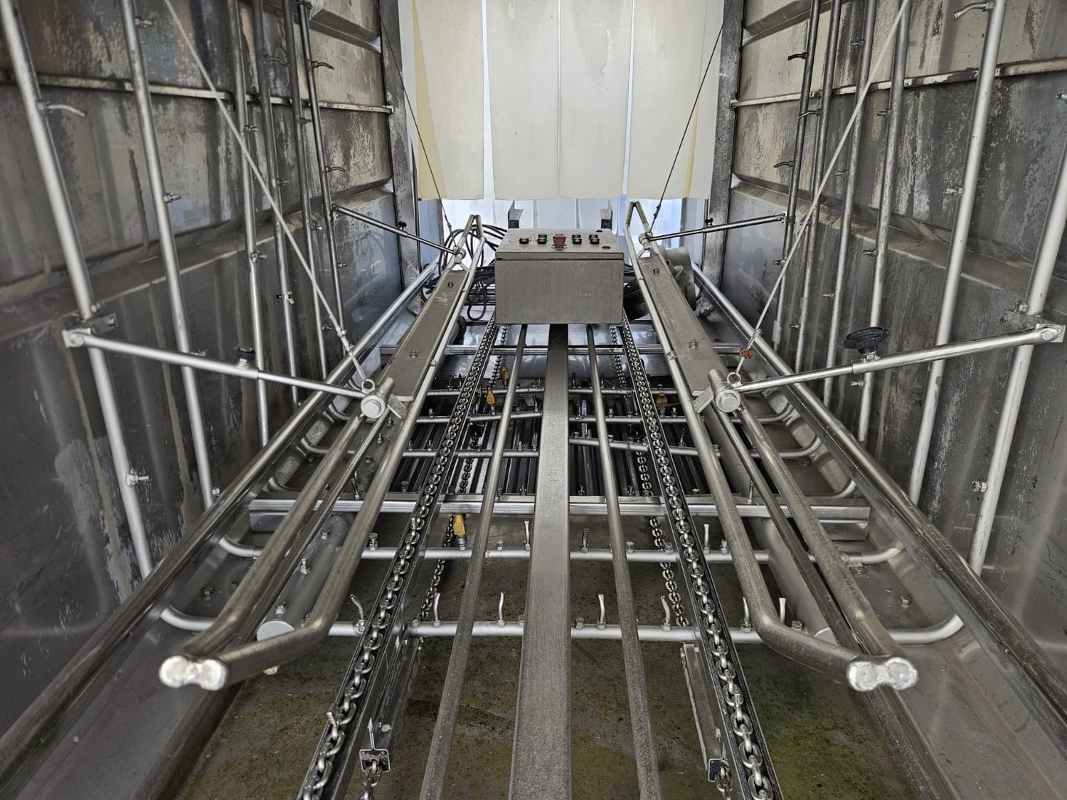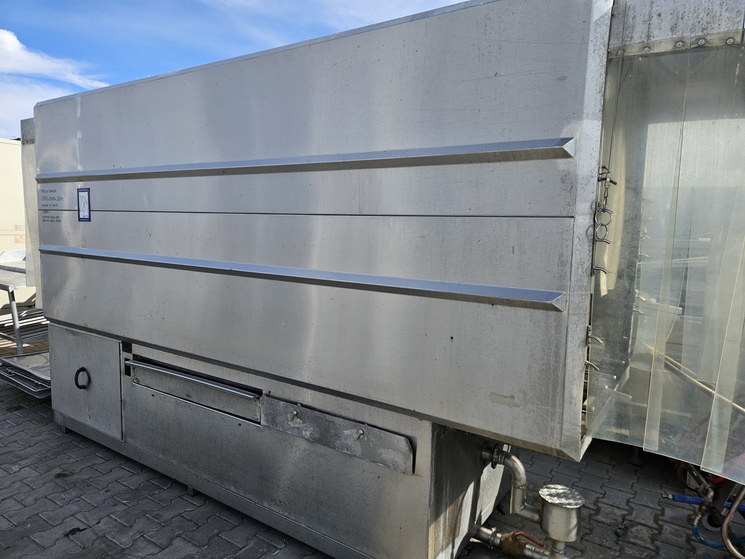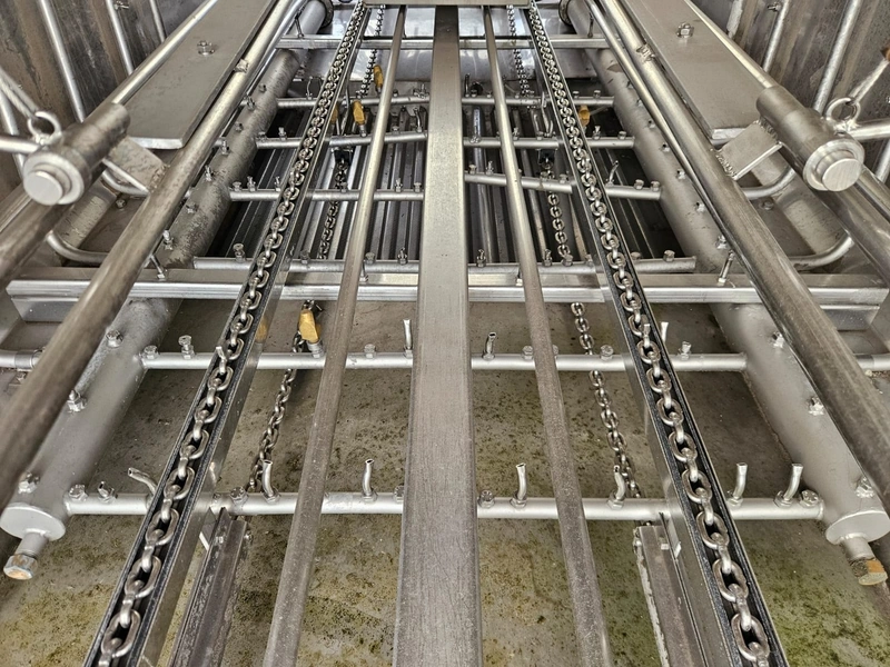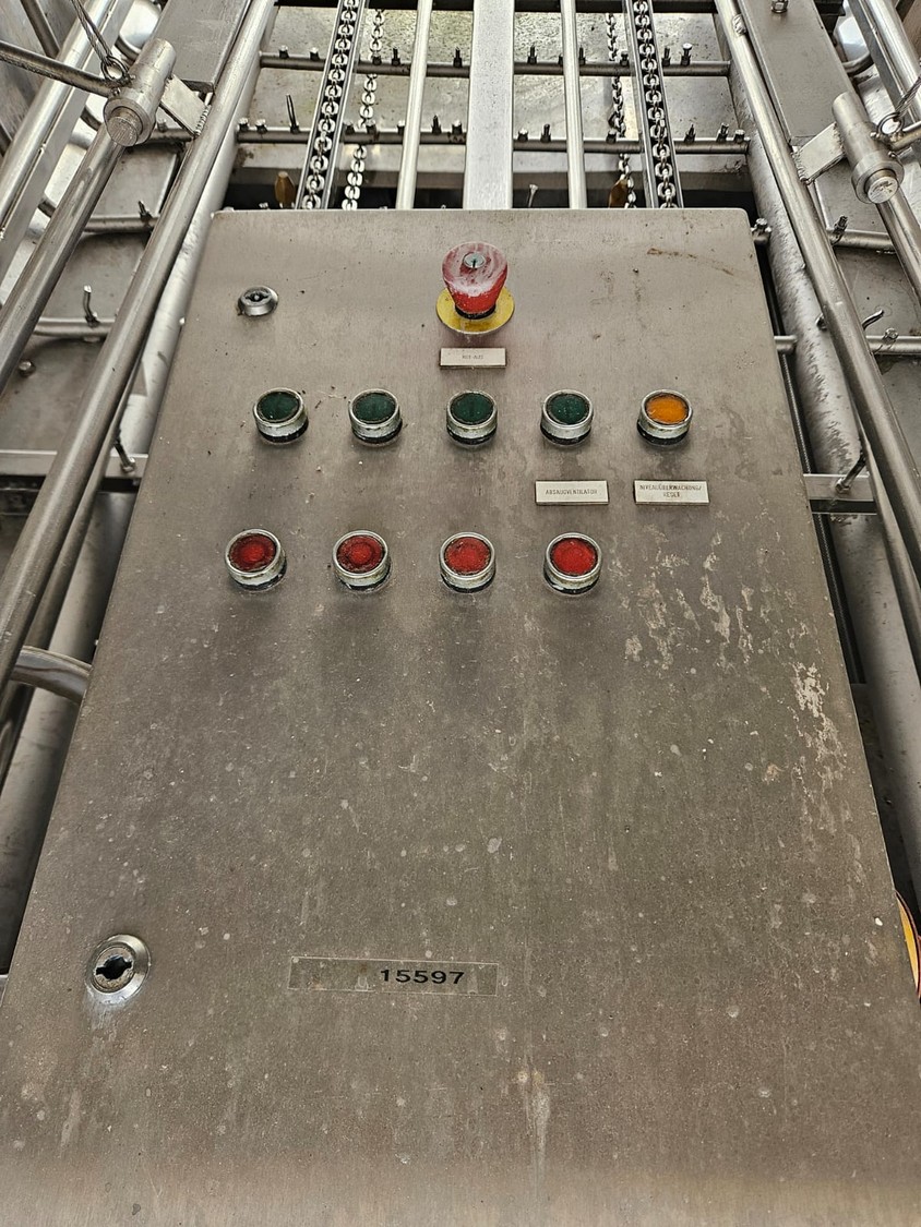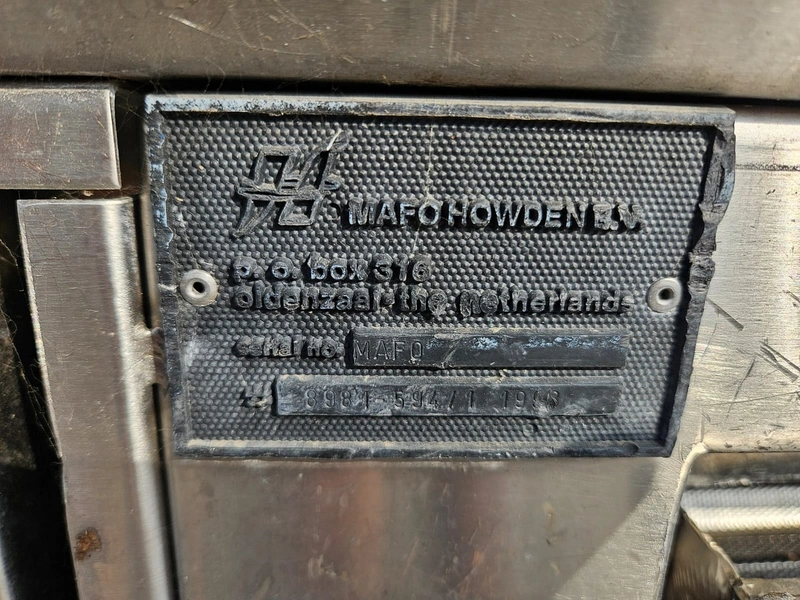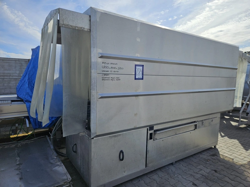 Mafo Howden B.V. washing machine for pallet boxes, serial number: MAFO, serial number: 8981-594/1, year of construction: 1998, clearance: 900 mm x 1200 mm, total dimensions: 4800 mm x 1300 mm x 2200 mm.