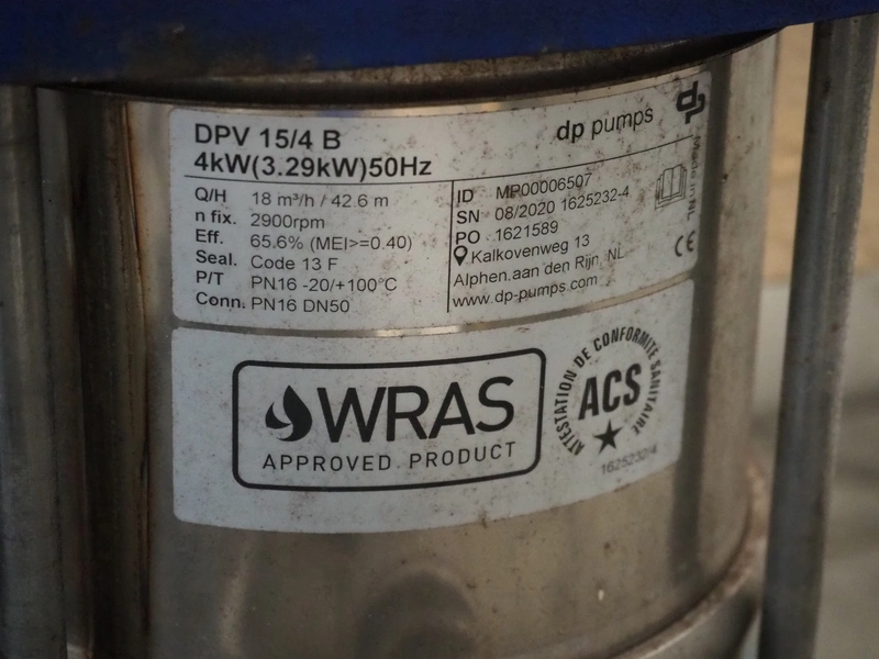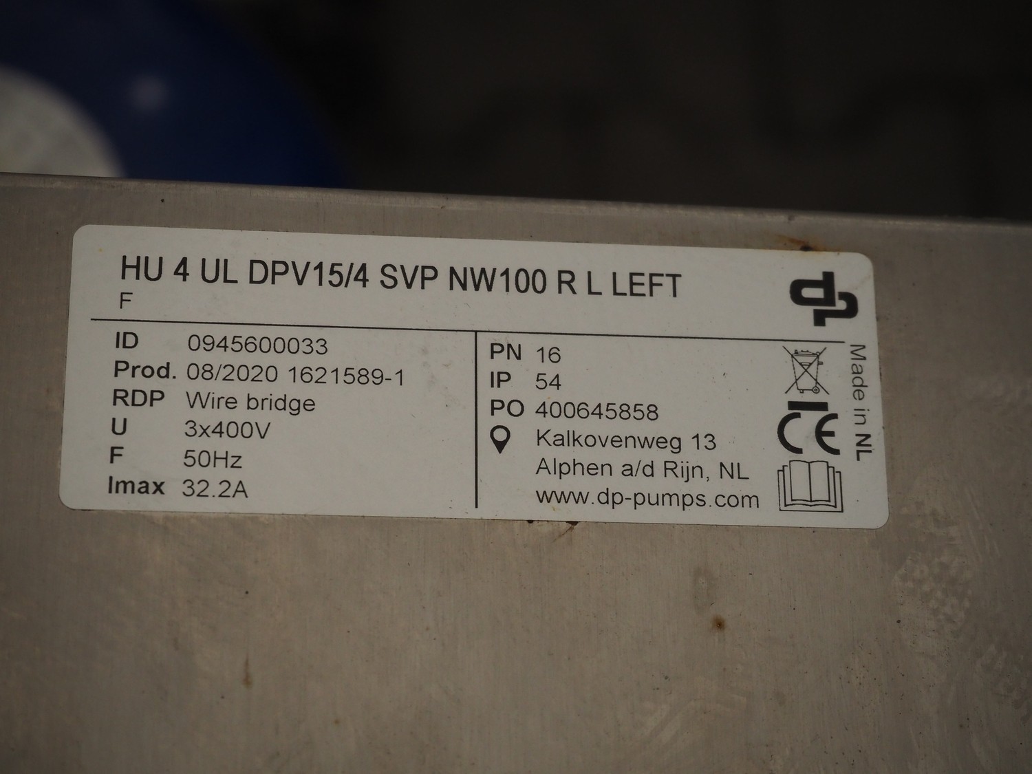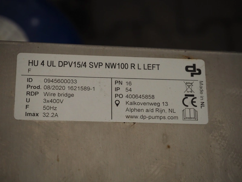 DP Pumps pump hydro-unit, model: HU 4 UL DPV15/4 SVP NW100 R L LEFT, ID: 0945600033, year of construction: 08/2020, 3x400 V, 50 Hz, 32.2 A, dimensions pumps: 1350 mm x 900 mm x 950 mm, dimensions switch cabinet: 600 mm x 350 mm x 1520 mm.