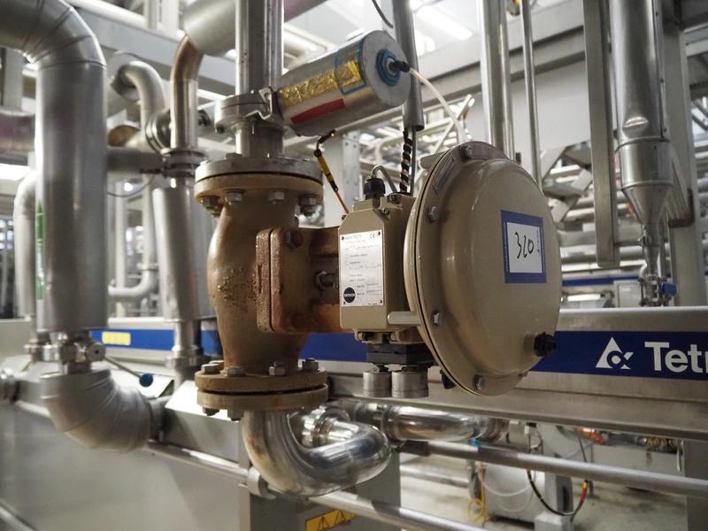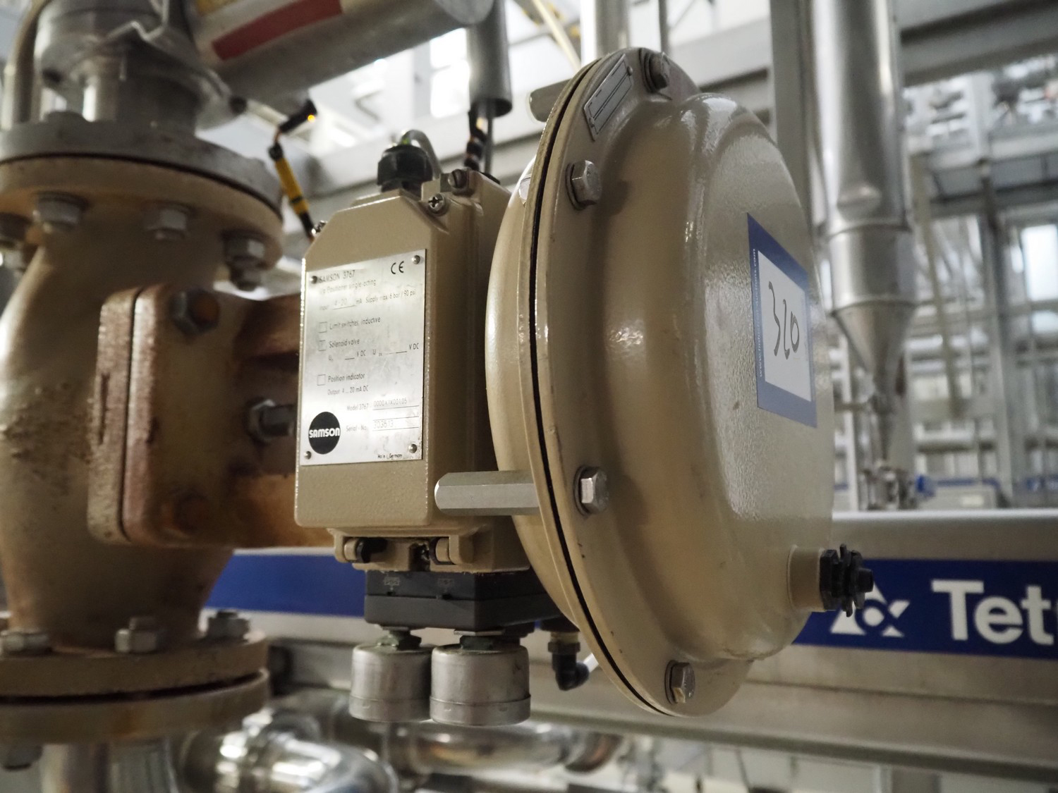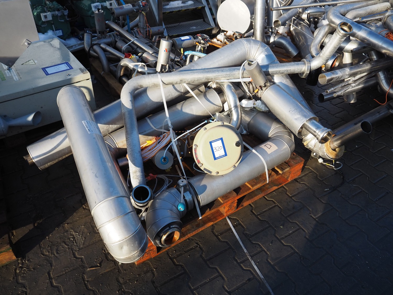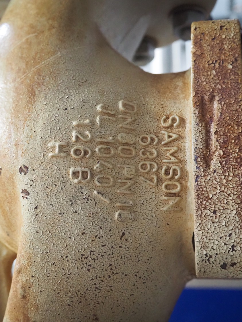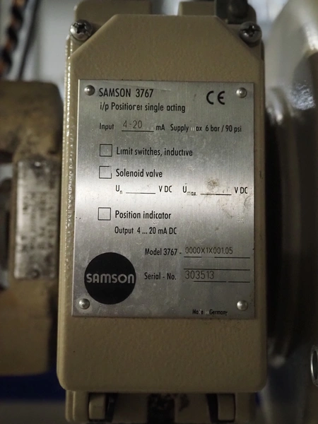Pallet with pipes and Samson pneumatic actuator.