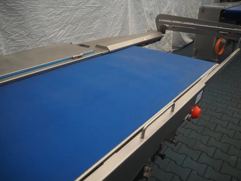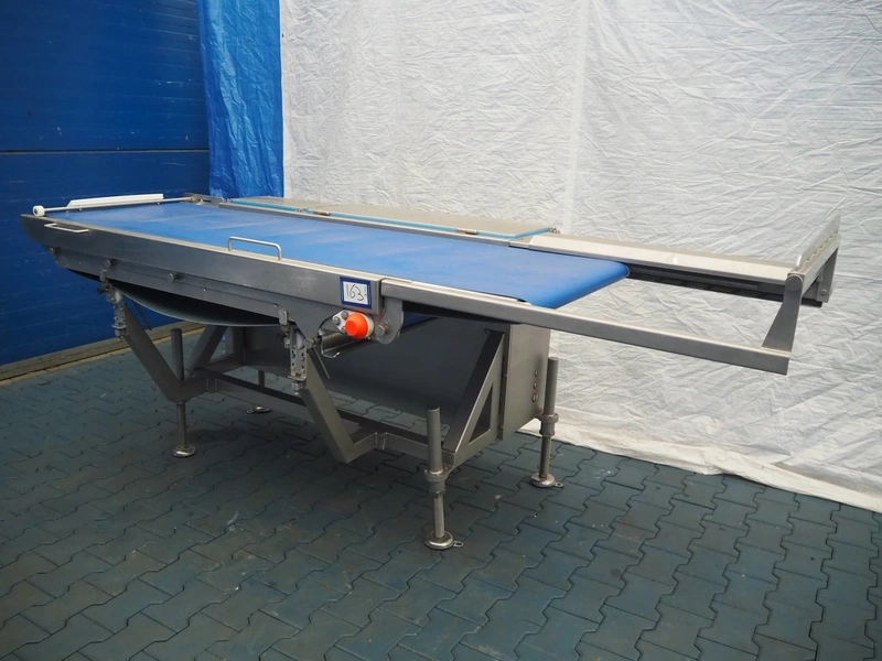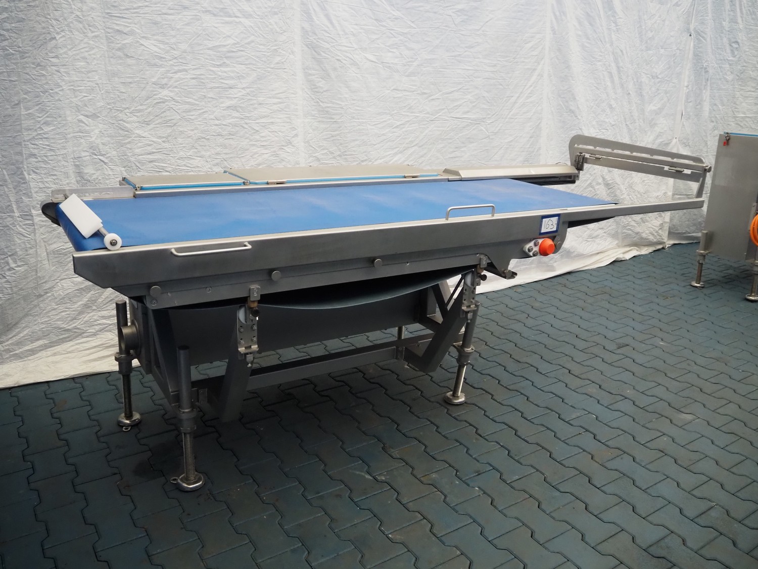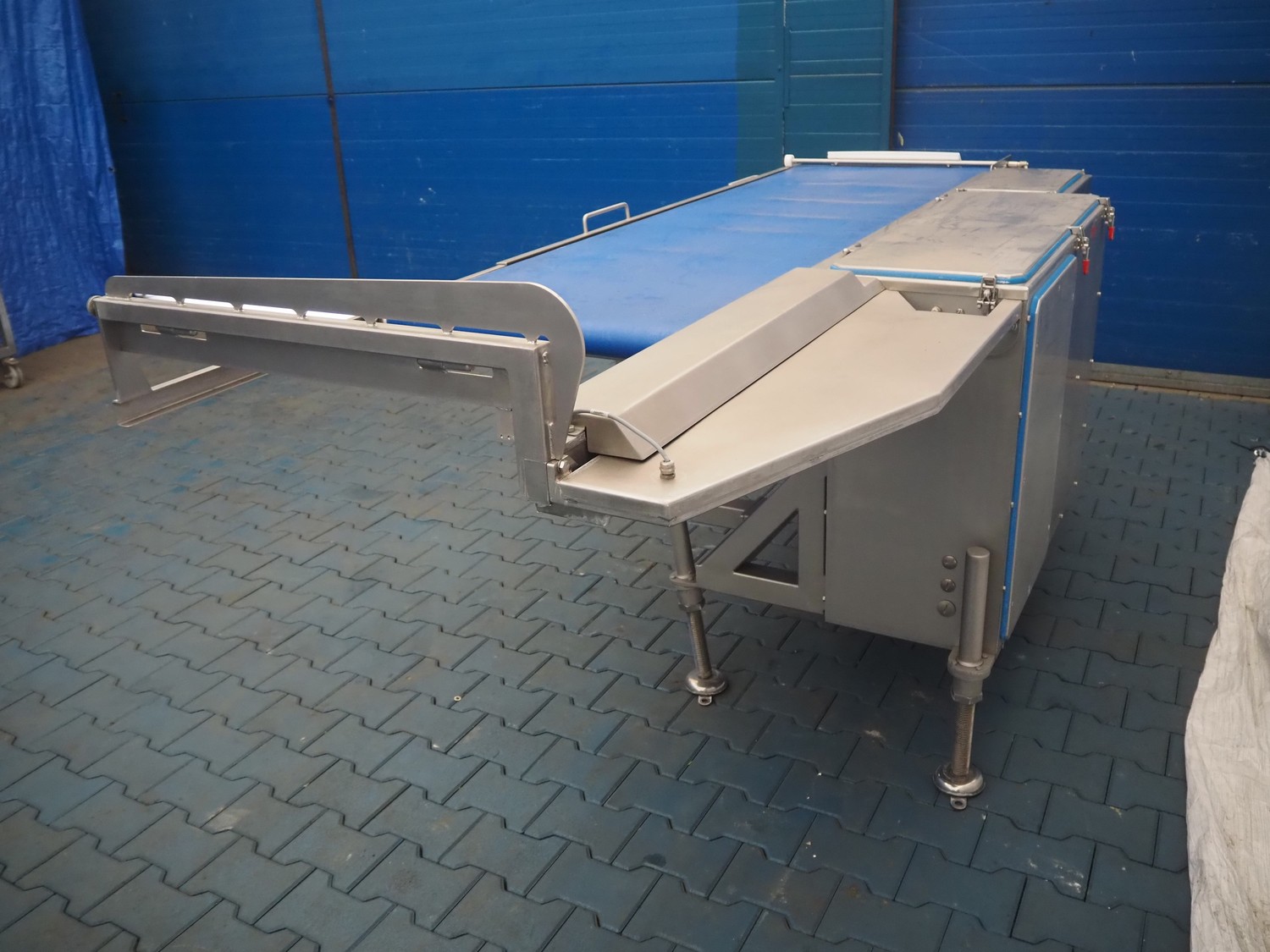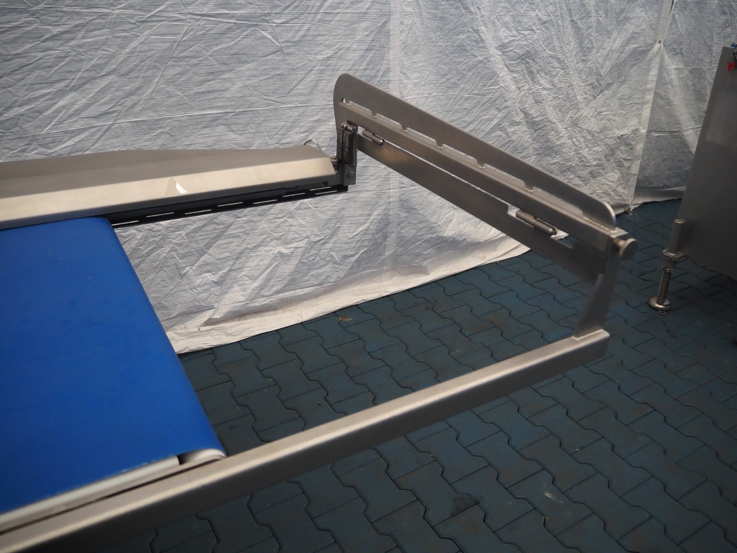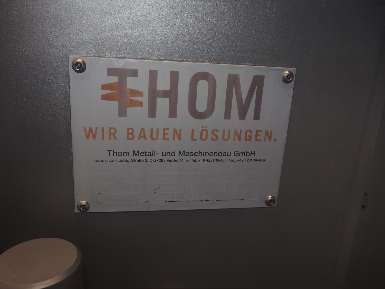 Thom Maschinenbau GmbH shuttle conveyor, model: Multi-Line-Loader, machine number: 72392-001-00, weight: 1360 kg, plastic belt, belt width: 650 mm, total dimensions: 2650 mm x 1200 mm x 1250 mm.