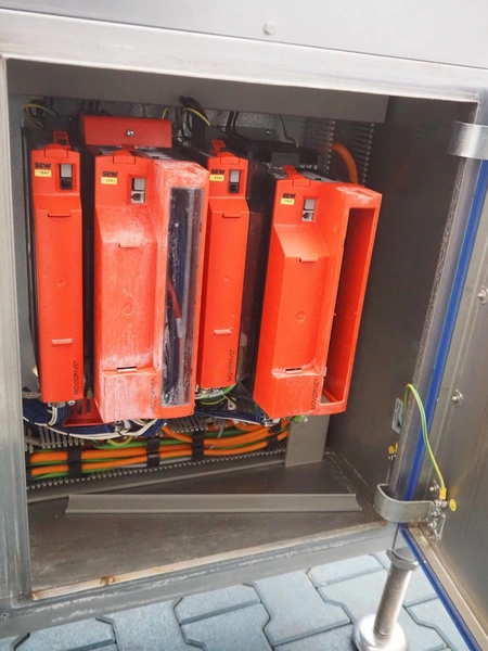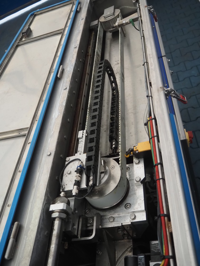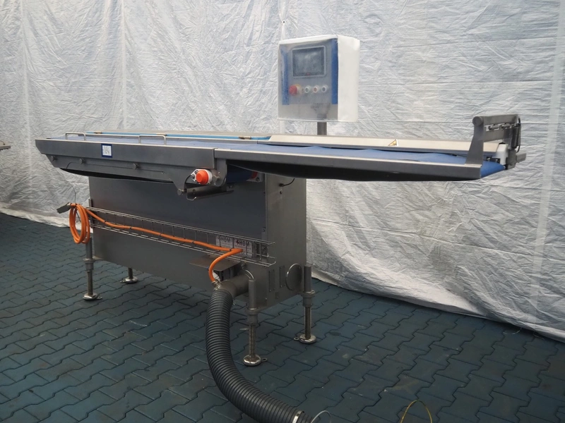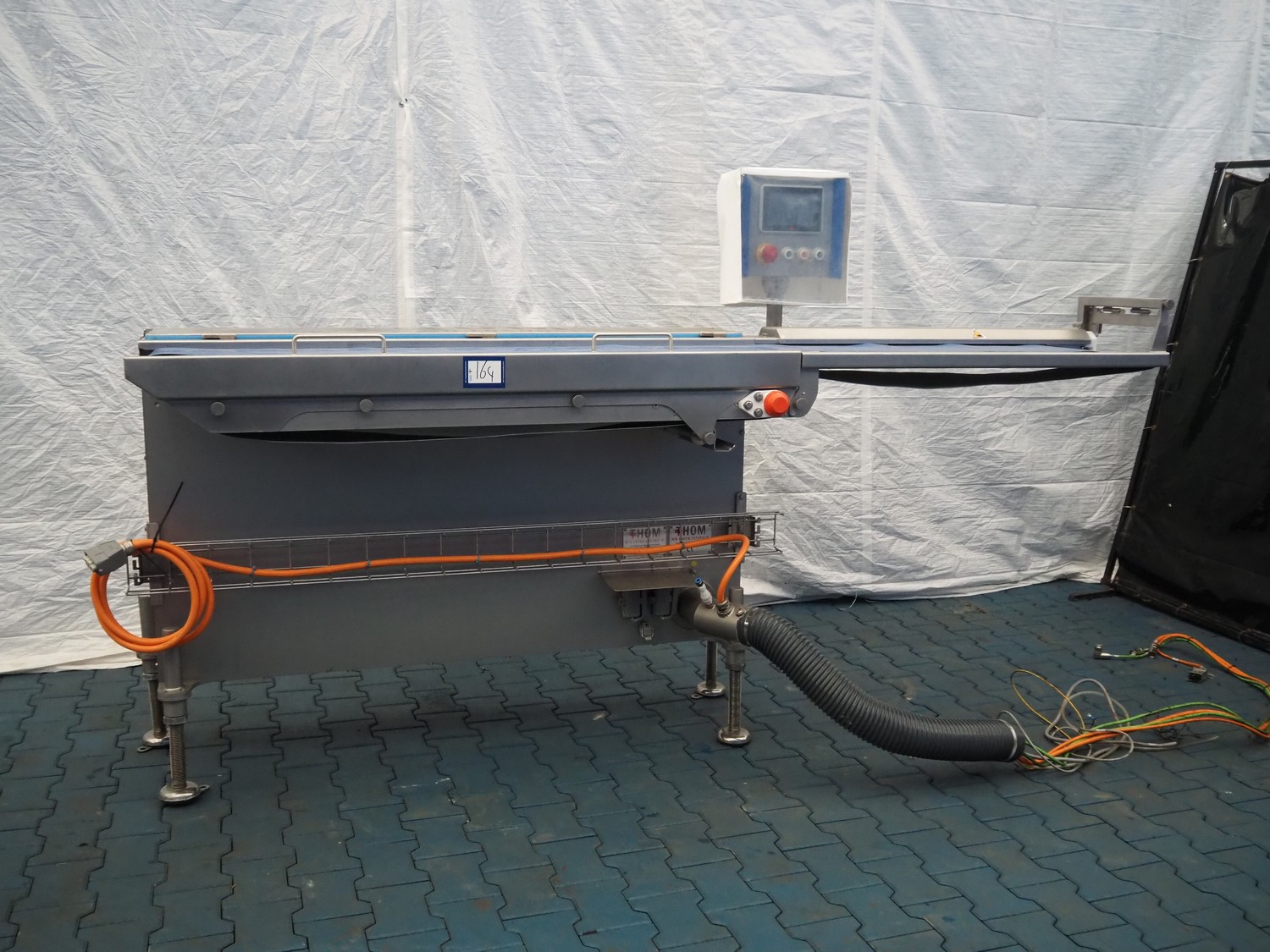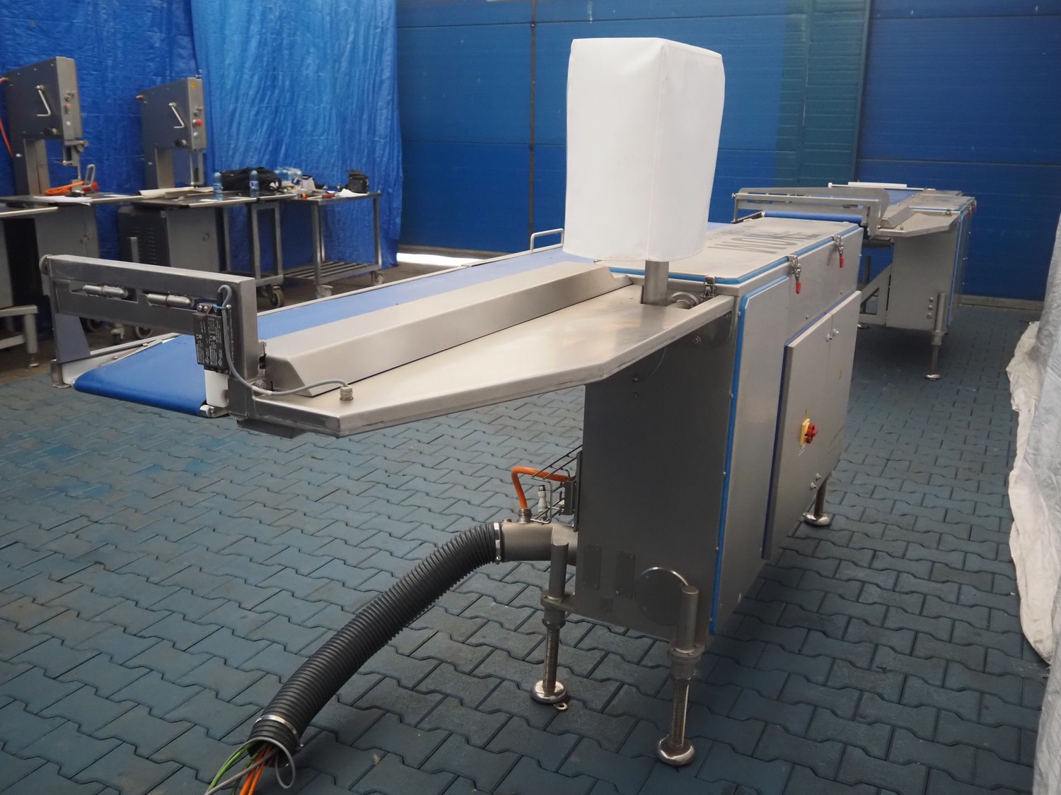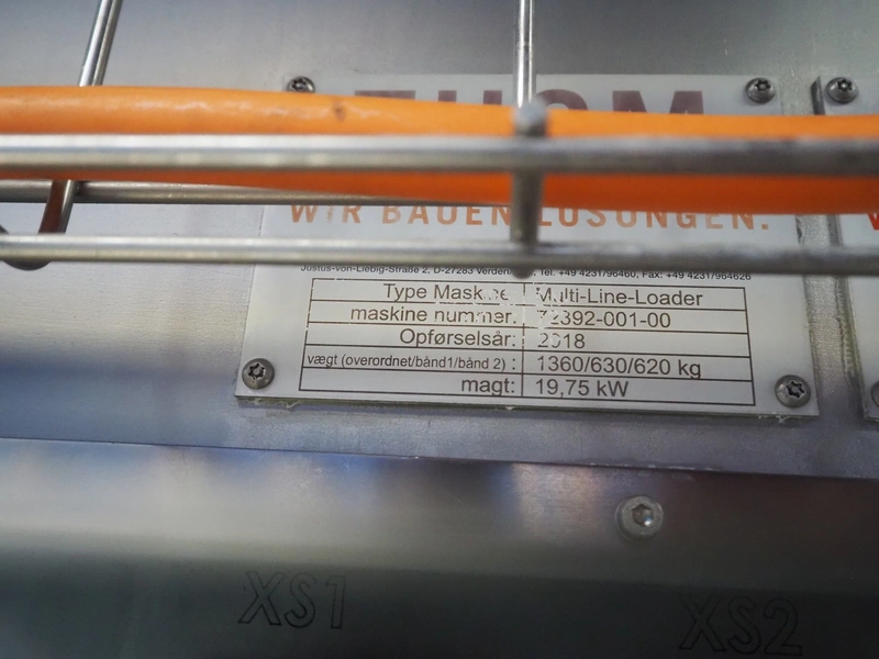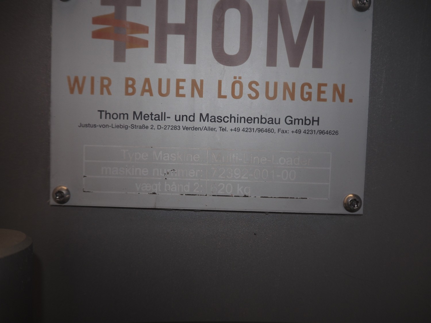 Thom Maschinenbau GmbH shuttle conveyor, model: Multi-Line-Loader, machine number: 72392-001-00, year of construction: 2018, 19.75 kW, plastic belt, belt width: 250 mm, total dimensions: 2800 mm x 800 mm x 1650 mm.