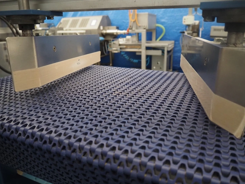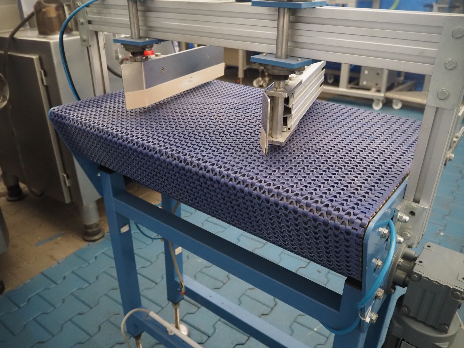 Itra dividing belt, machine number: 06-06686, plastic mesh belt, belt width: 795 mm, total dimensions: 1040 mm x 500 mm x 1400 mm.