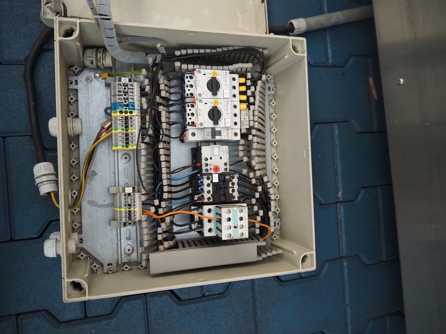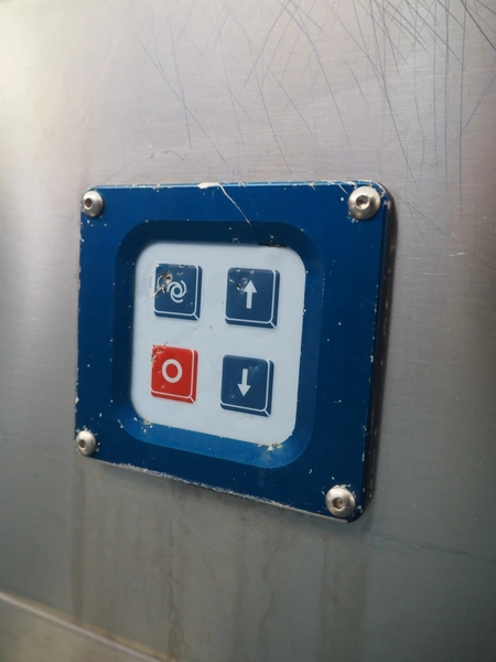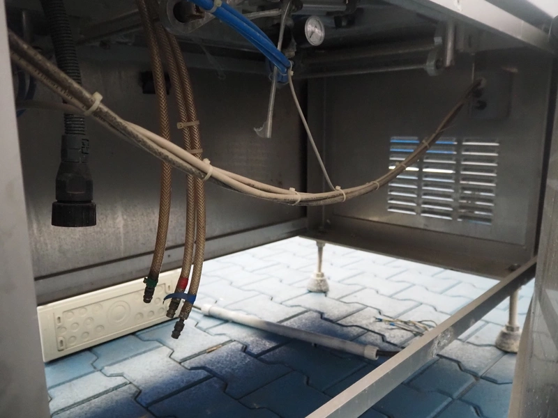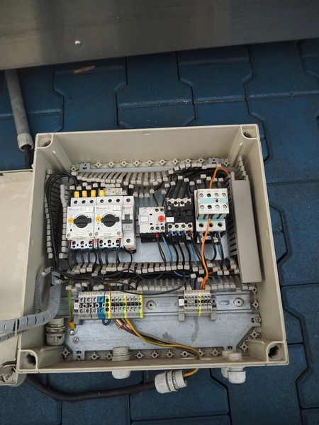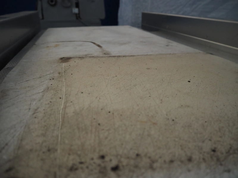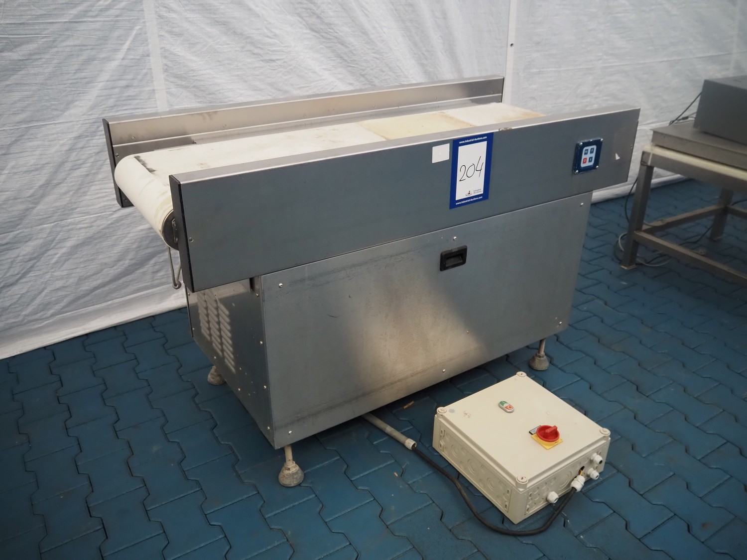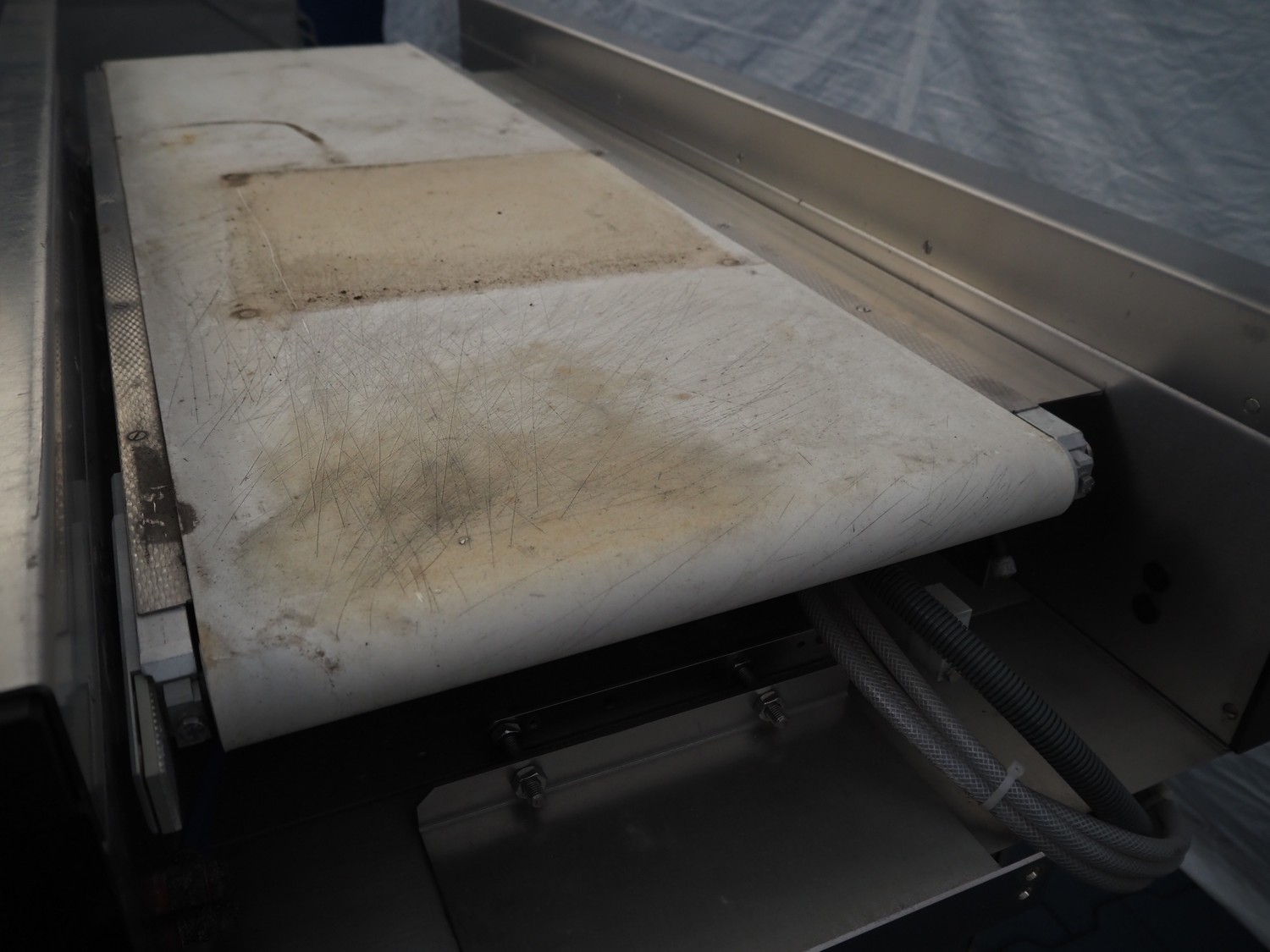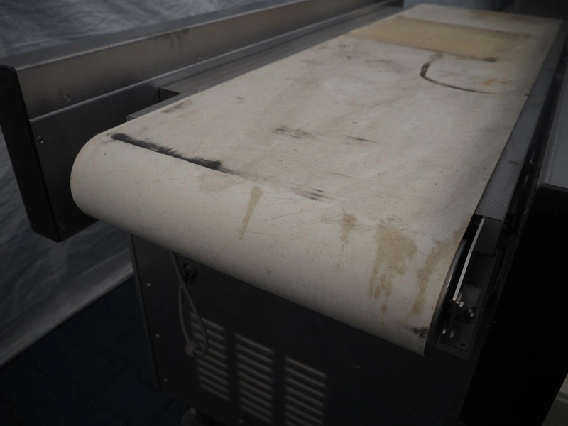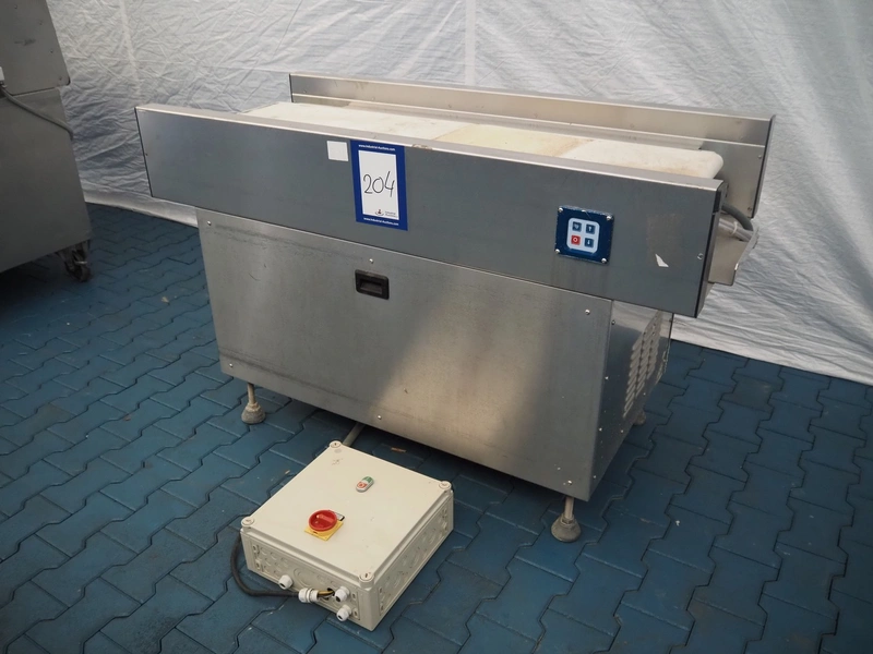 Transport belt, s/s frame, plastic belt, belt width: 440 mm, total dimensions: 1550 mm x 720 mm x 980 mm.
