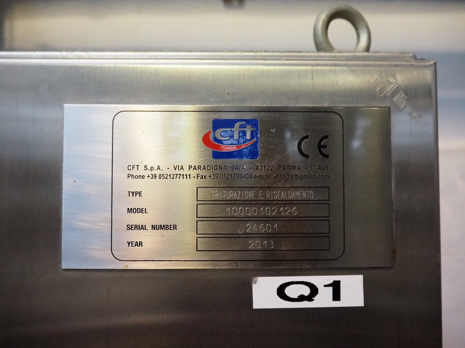 CFT S.p.A. crusher with progressive cavity outfeed pump, type: TRITAGHIACCIO, model: CR 2, serial number: 24602, year of construction: 2013, inside dimensions hopper: 950 mm x 1000 mm x 900 mm, total dimensions: 5800 mm x 2100 mm x 3500 mm.