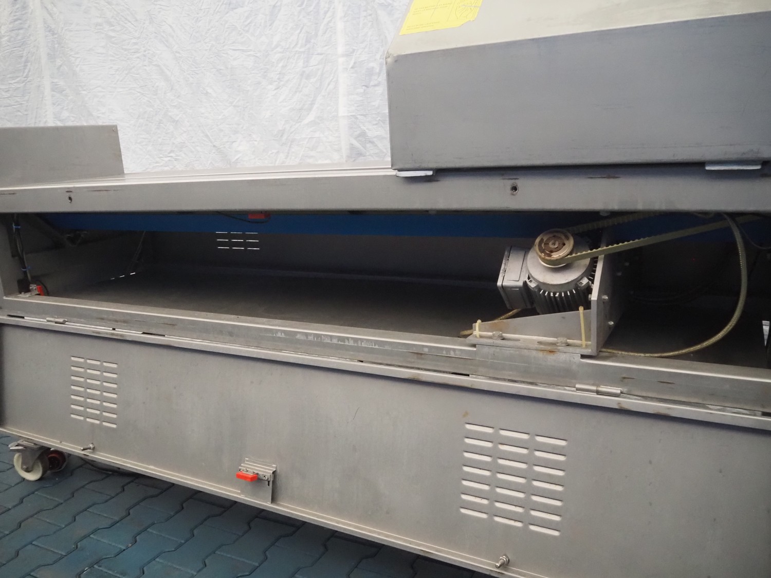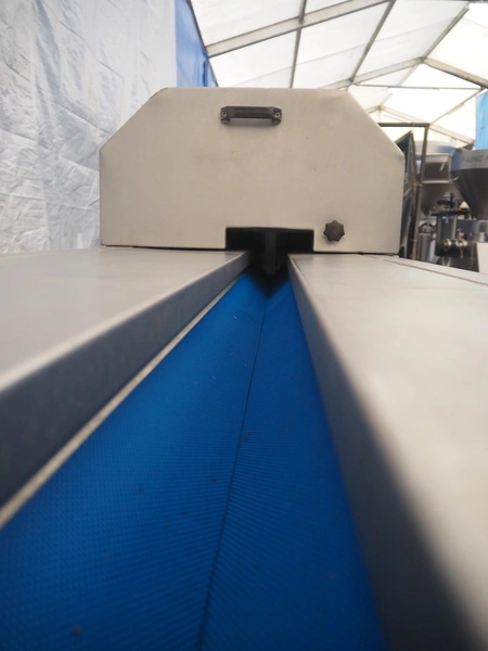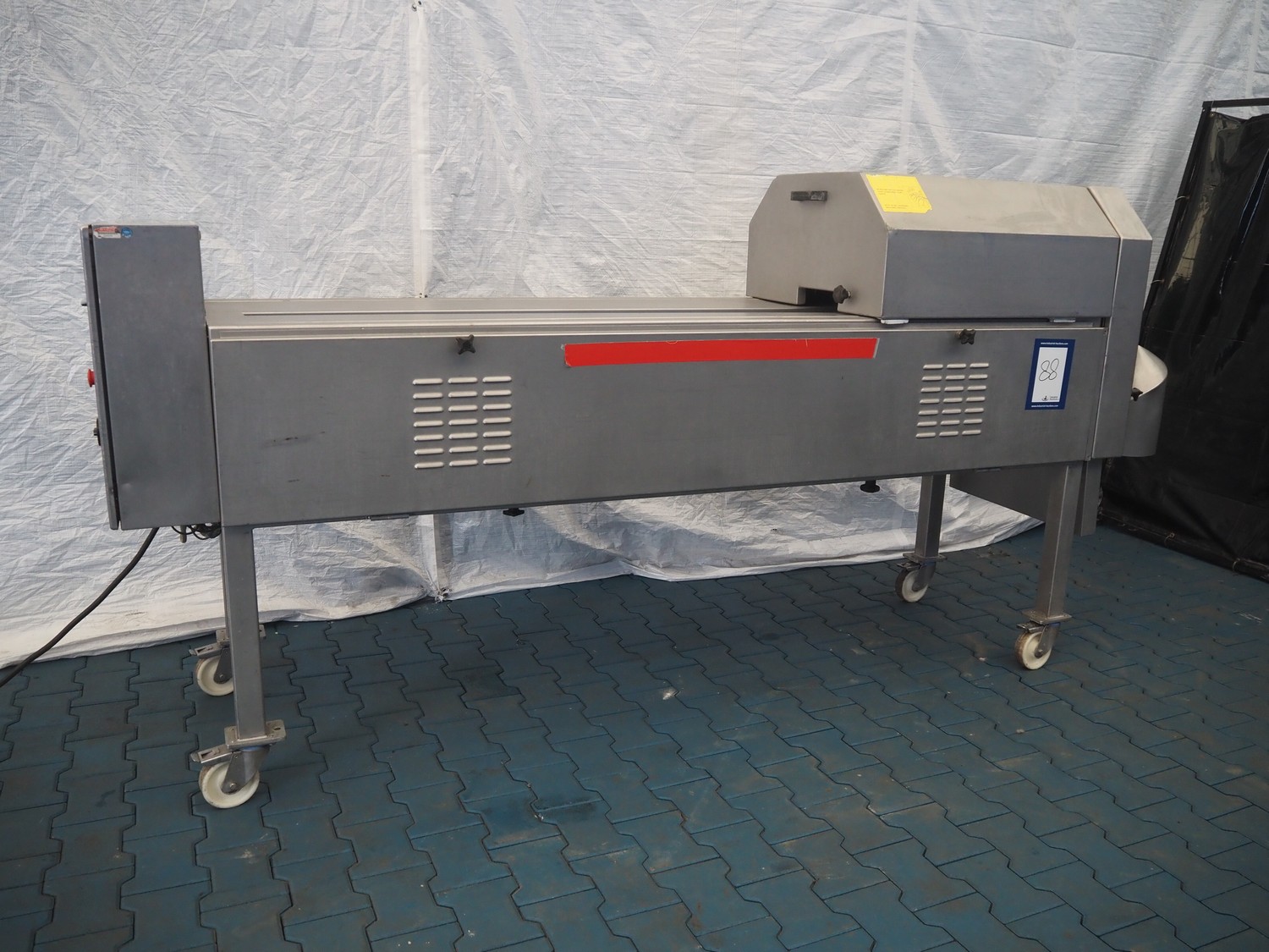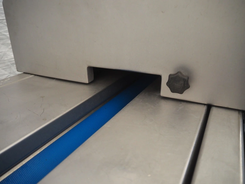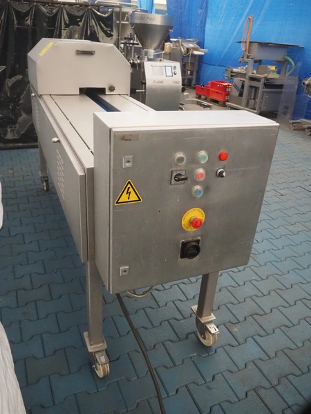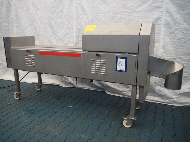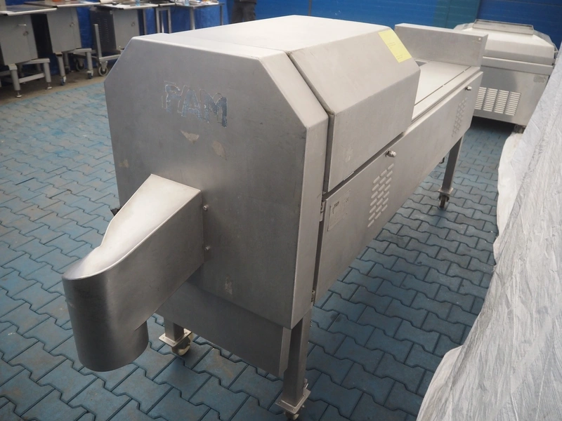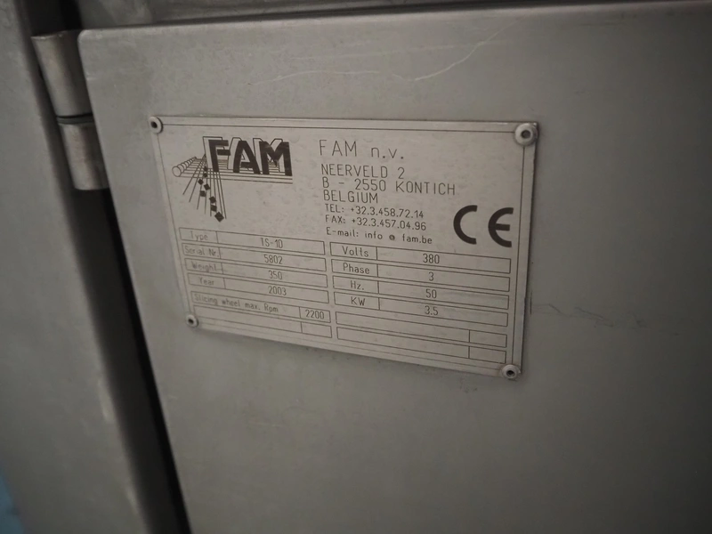 FAM mobile belt slicer, type: TS-10, serial number: 5802, year of construction: 2003, 380 V, 3 Ph, 50 Hz, 3.5 kW, 2200 RPM, clearance: 95 mm, total dimensions: 3200 mm x 700 mm x 1600 mm.
