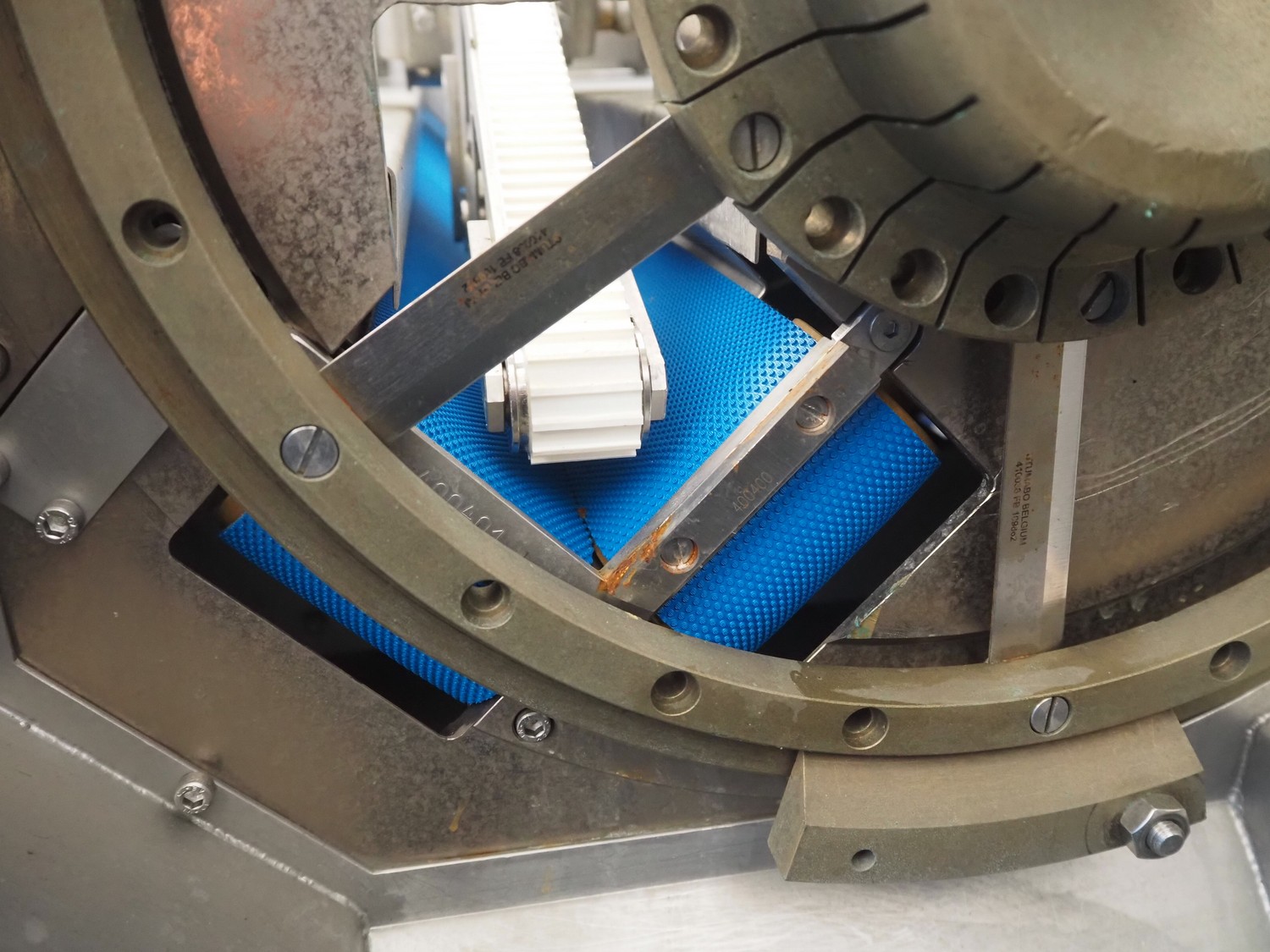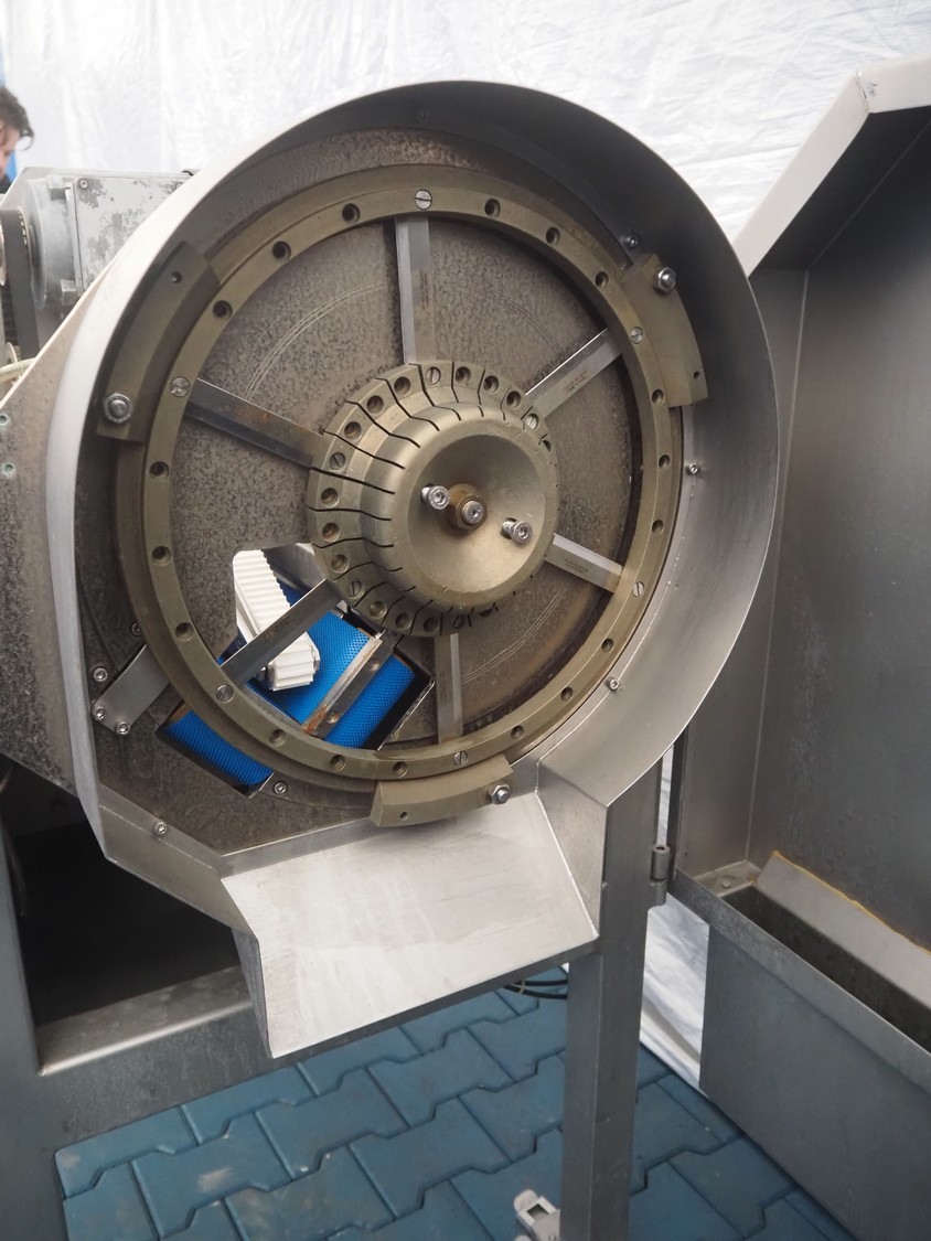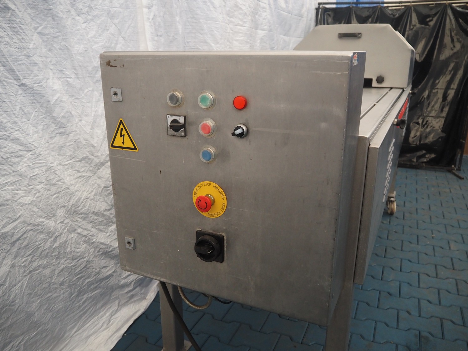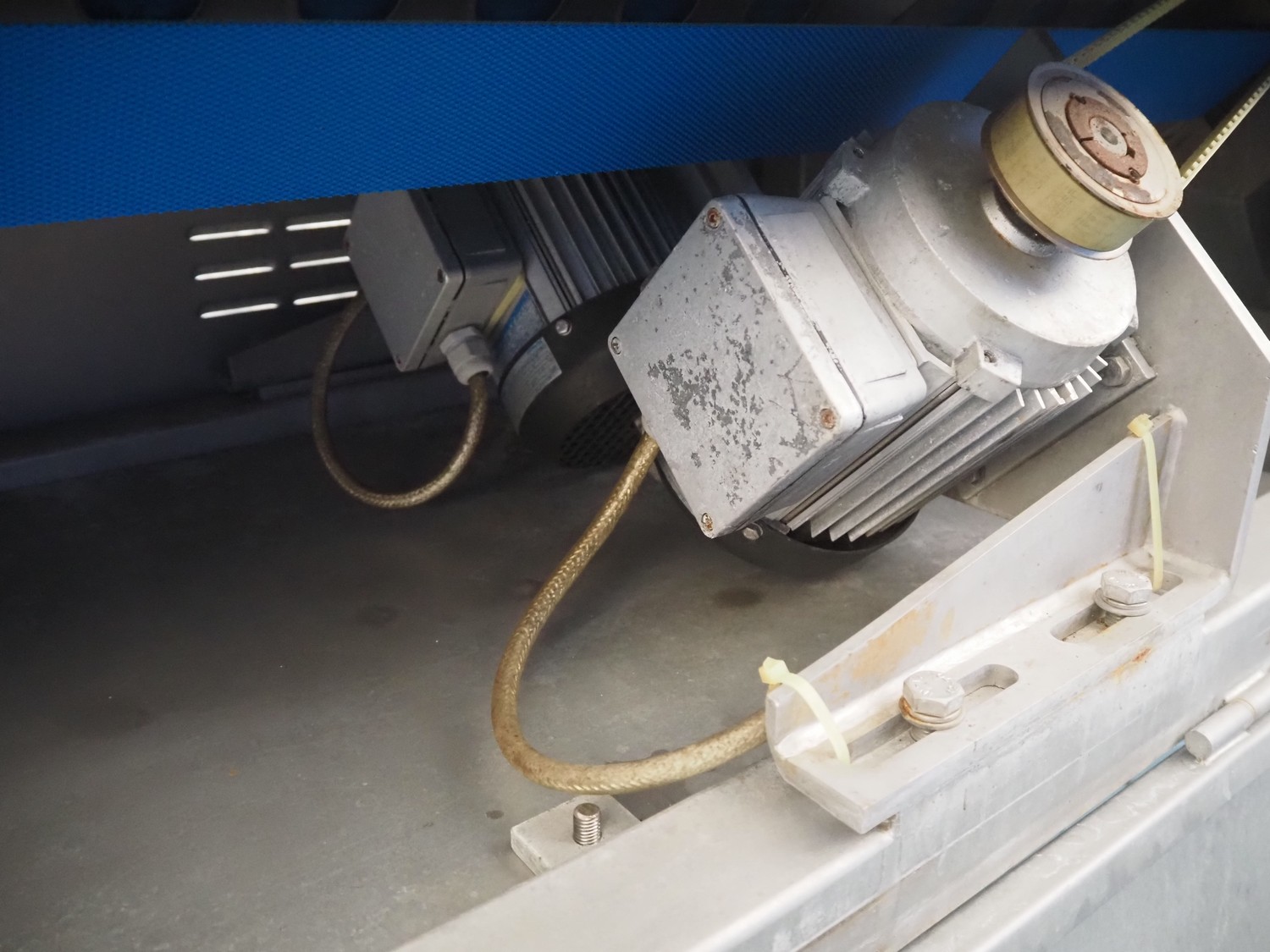 FAM mobile belt slicer, type: TS-10, serial number: 5802, year of construction: 2003, 380 V, 3 Ph, 50 Hz, 3.5 kW, 2200 RPM, clearance: 95 mm, total dimensions: 3200 mm x 700 mm x 1600 mm.