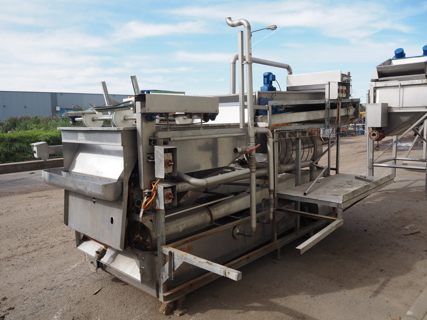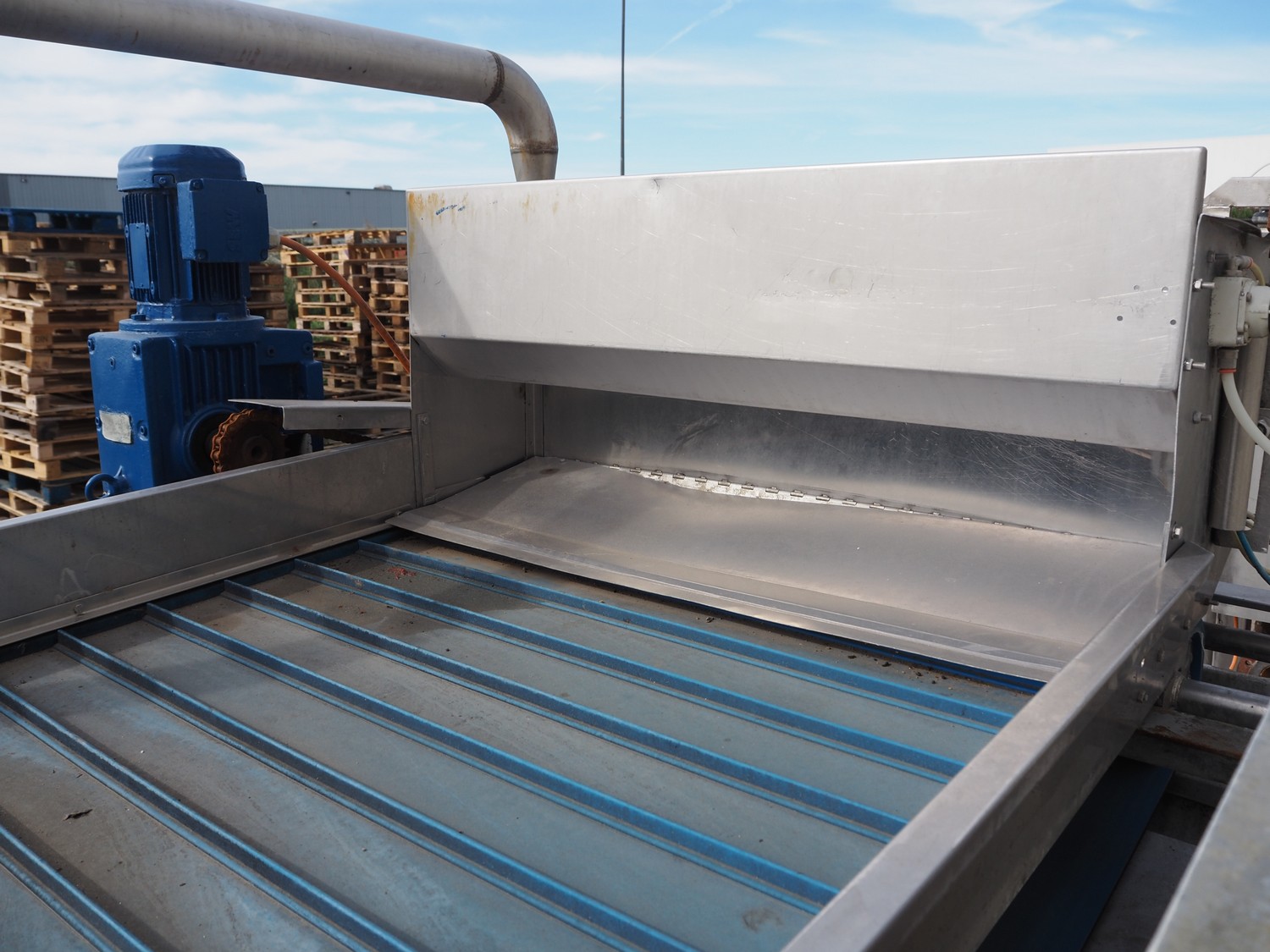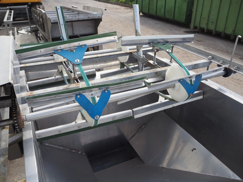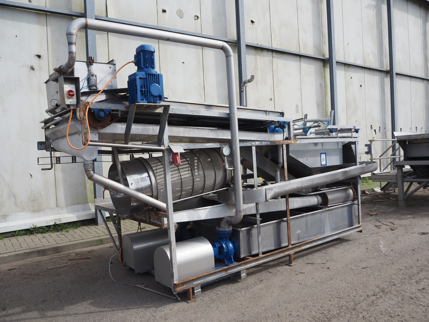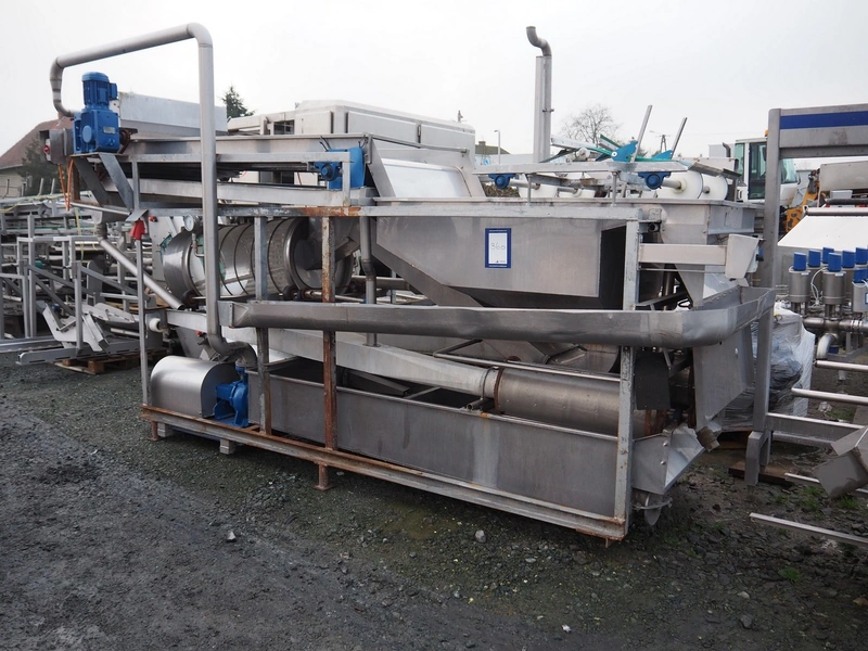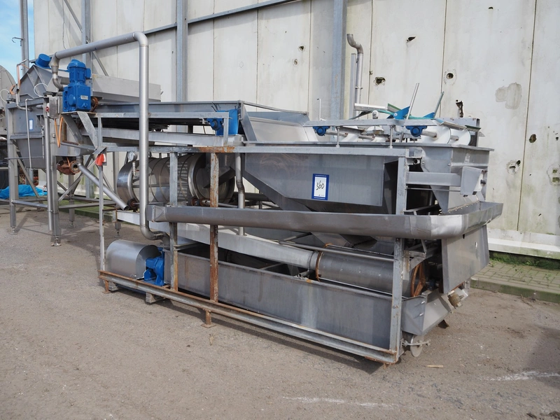 Washing machine for peas, inside dimensions tub: 1050 mm x 1100 mm x 400 mm, total dimensions: 4900 mm x 2400 mm x 2700 mm.