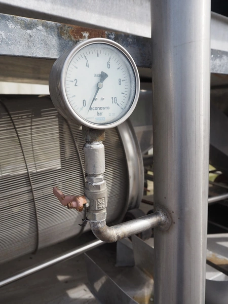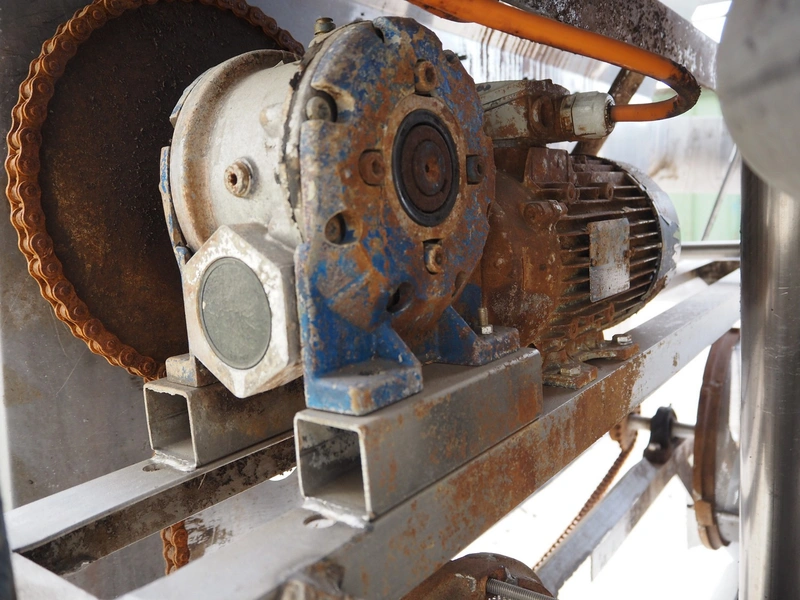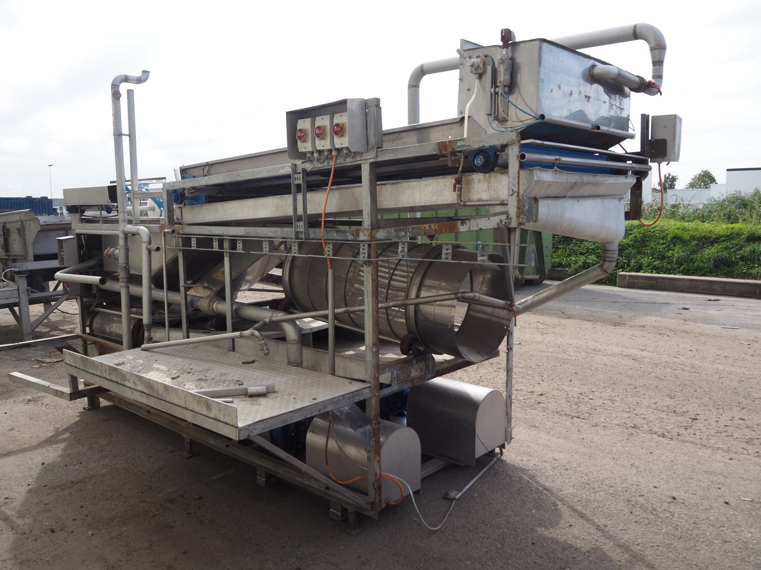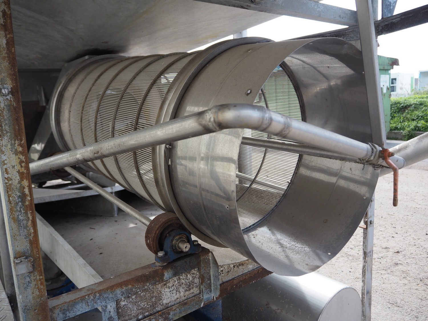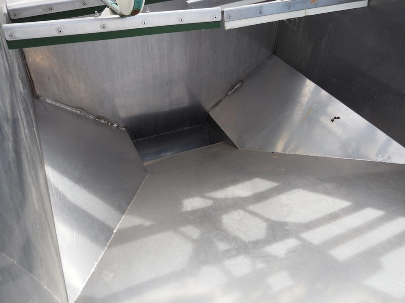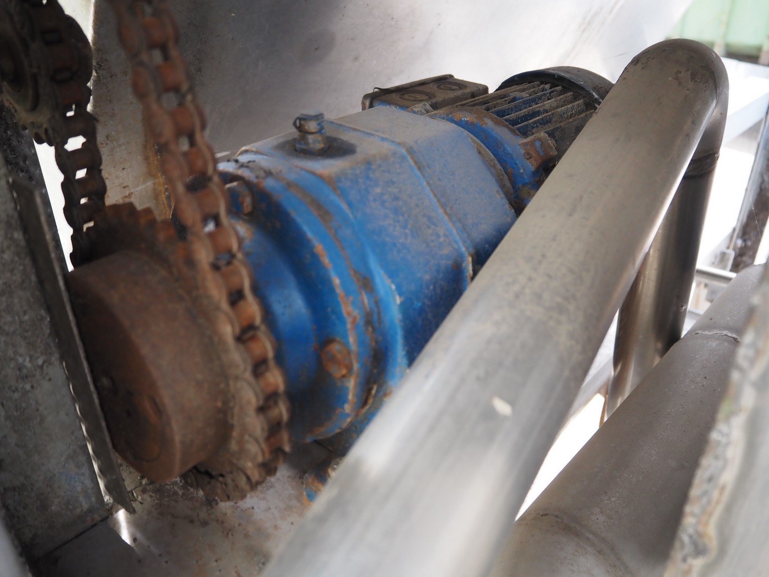 Washing machine for peas, inside dimensions tub: 1050 mm x 1100 mm x 400 mm, total dimensions: 4900 mm x 2400 mm x 2700 mm.