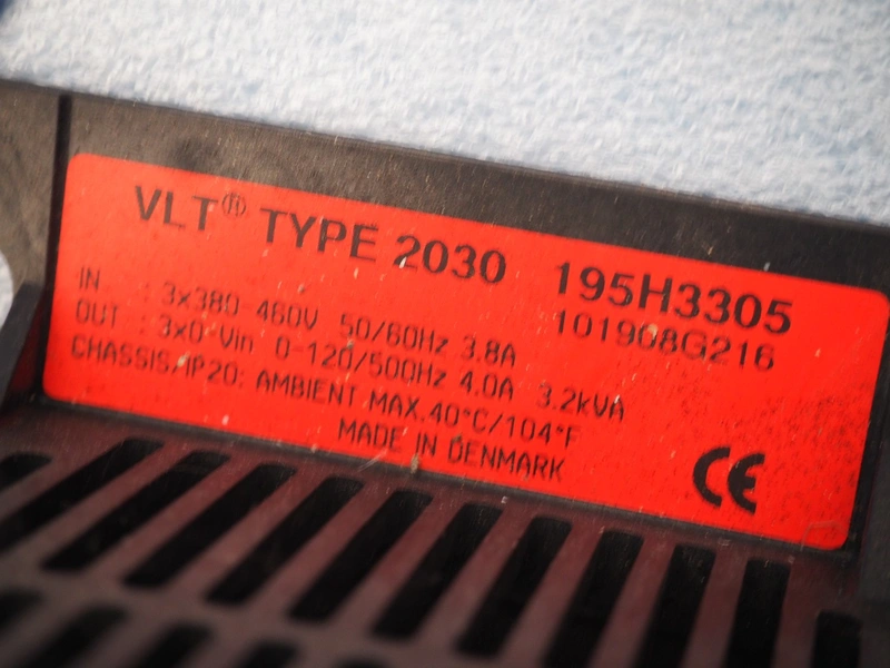 Danfoss frequency converter, model: VLT, type: 2030, 380-460 V, 3 Ph, 50/60 Hz, 3.8 A.