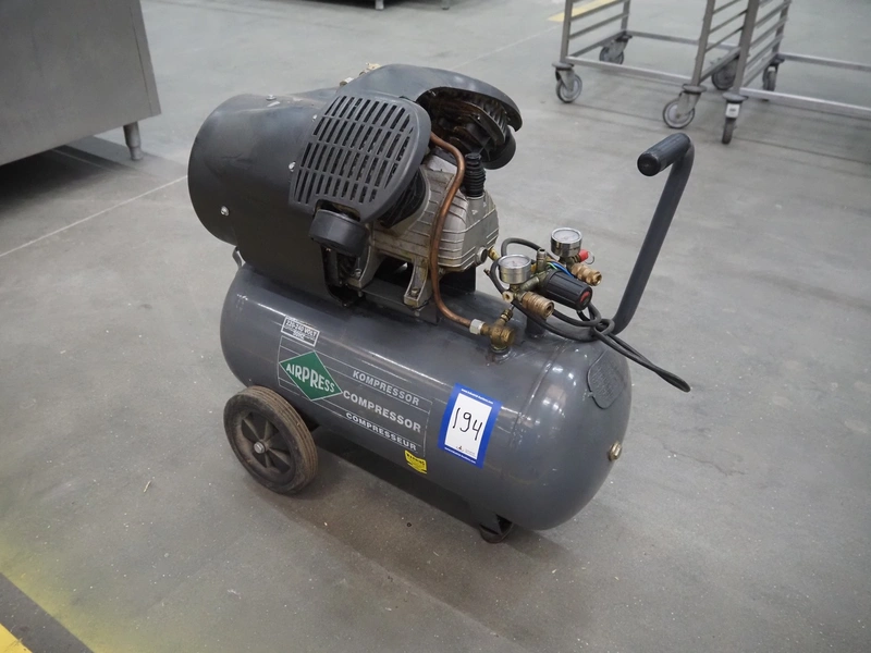 Airpress air compressor, model: 50MFL, year of construction: 2010, 220/240 V, 50 Hz, volume: 50 liter, dimensions: 670 mm x 620 mm x 665 mm.