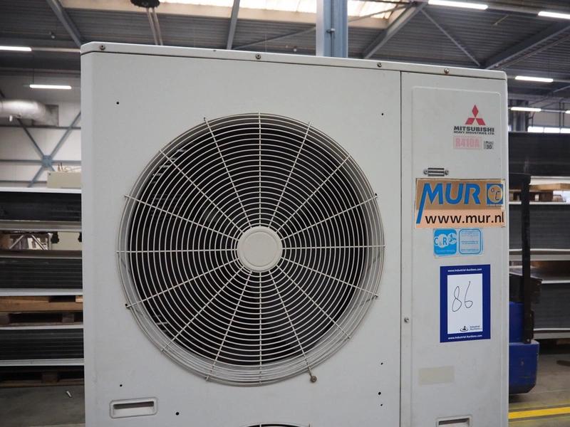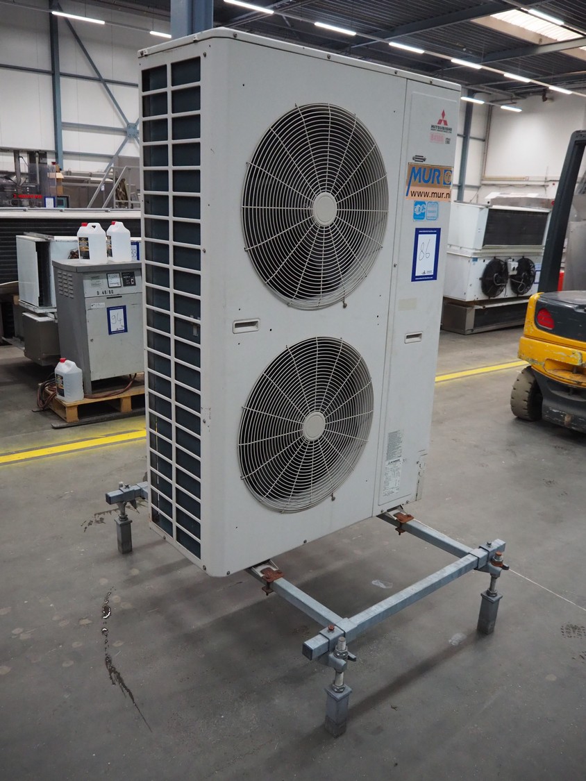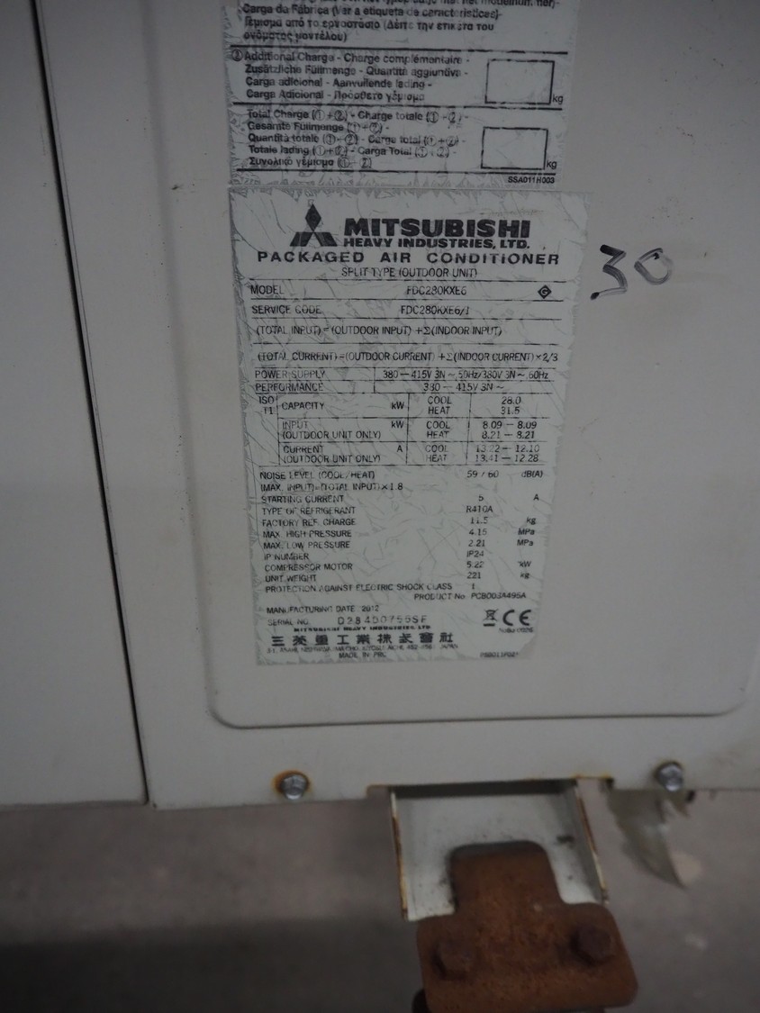 Mitsubishi outside cooling unit, model: FDC280KXE6, serial number: FDC280KXE6/1, refrigerant: R410A, dimensions: 1100 mm x 1500 mm x 2000 mm.