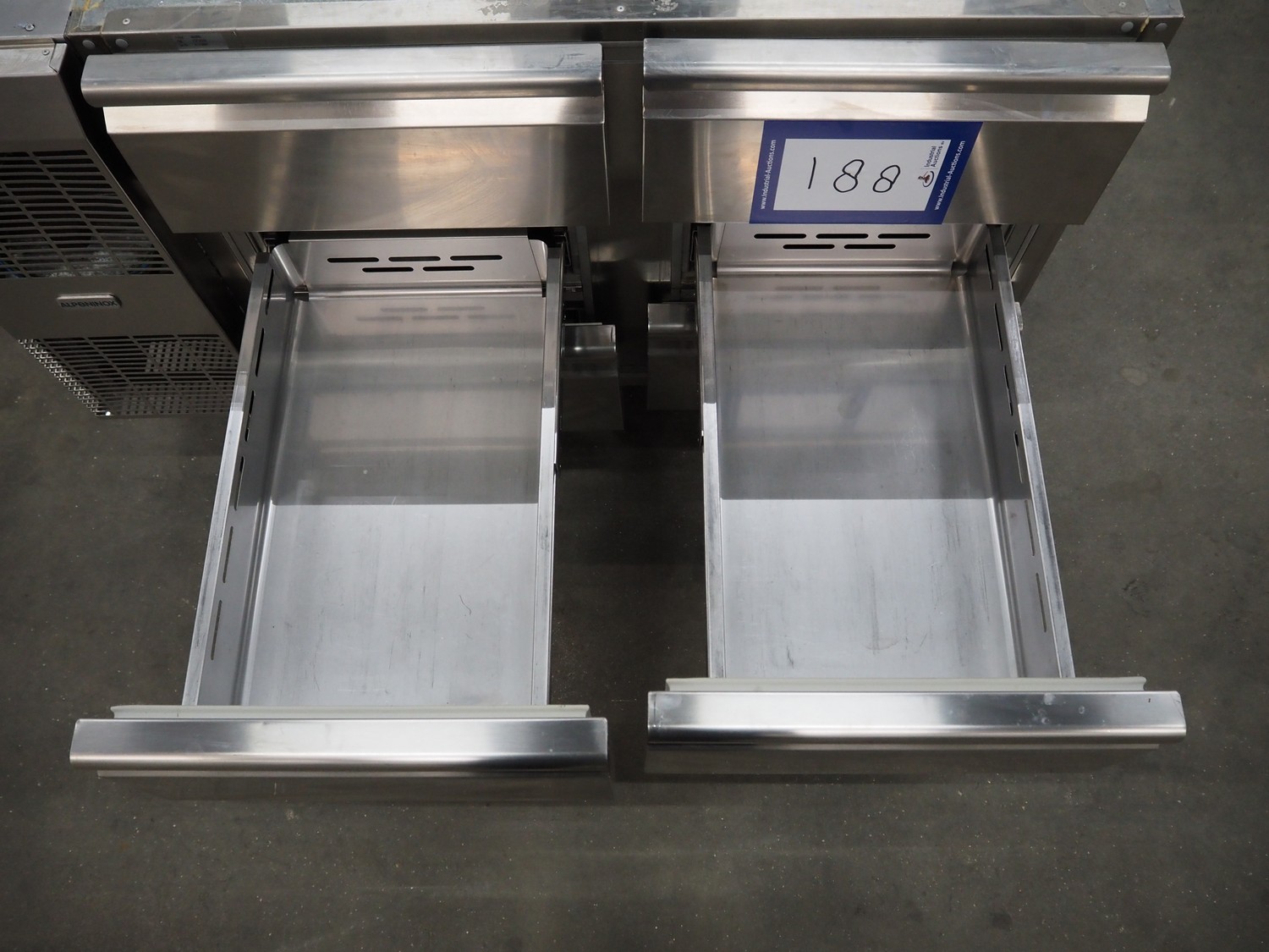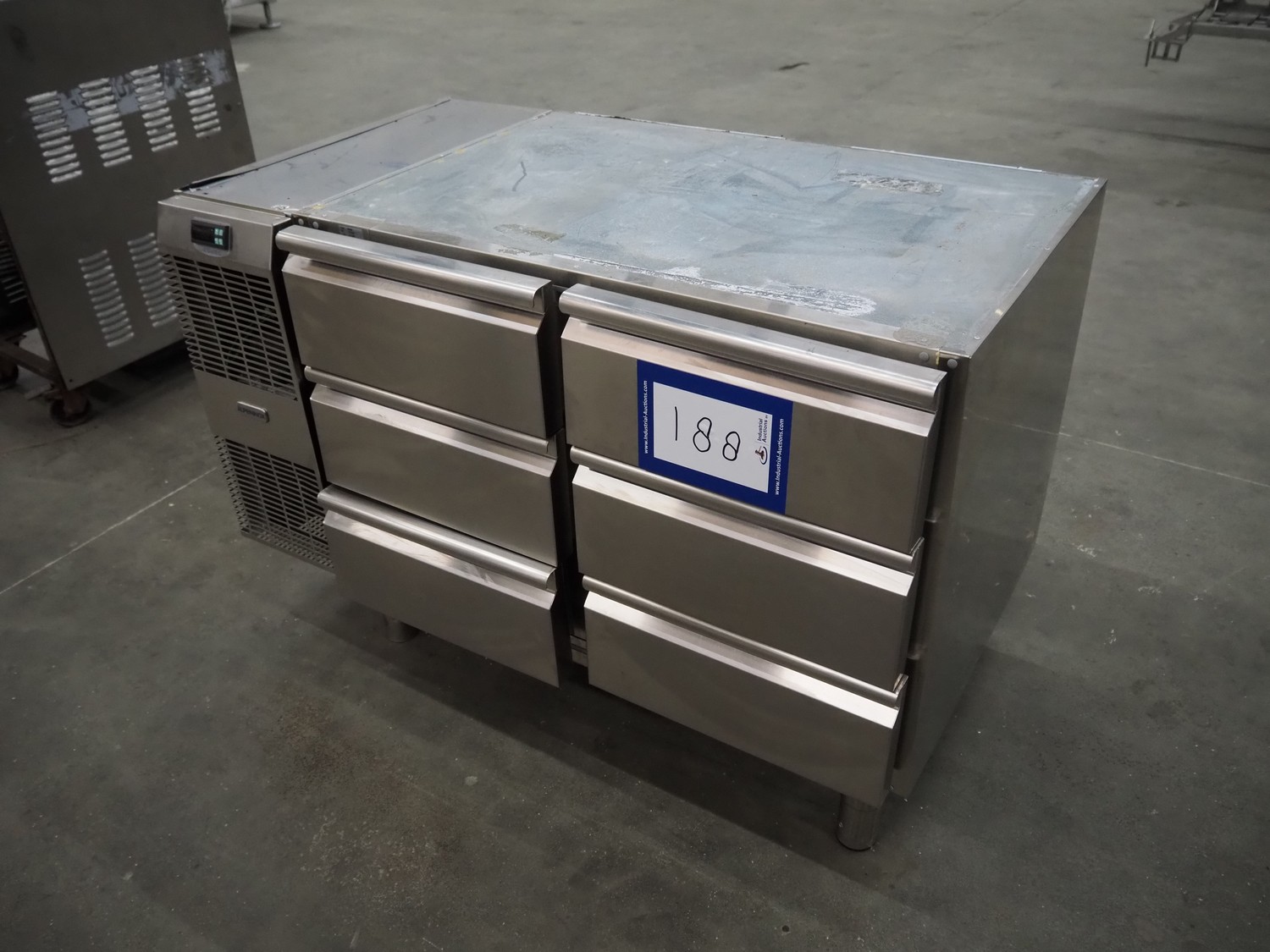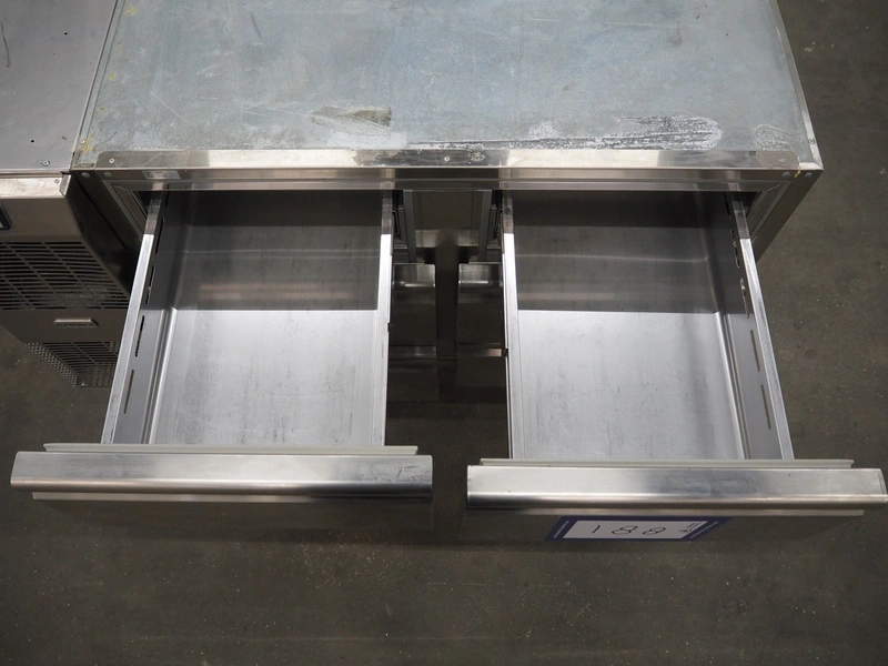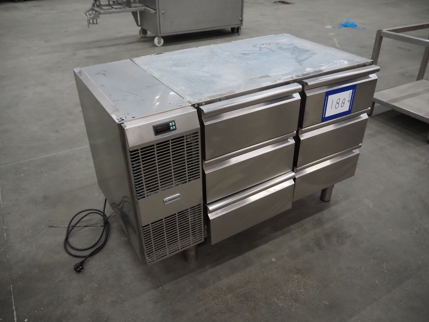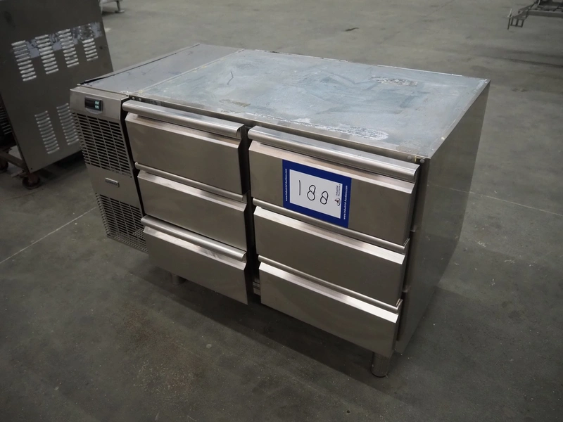 Alpeninox refrigerated counter with 6 drawers, model: HB2PNT, serial number: 61510001, inside dimensions: (6x) 300 mm x 520 mm x 100 mm, total dimensions: 1220 mm x 700 mm x 820 mm.