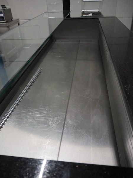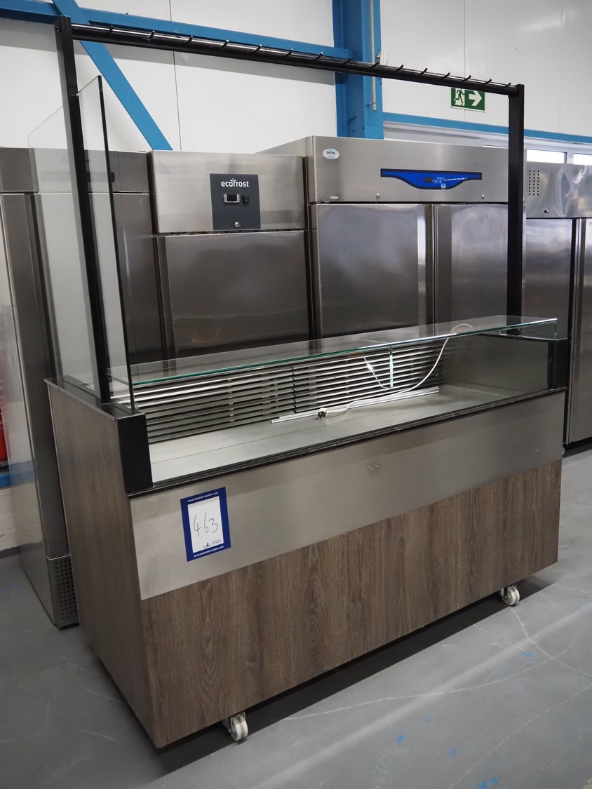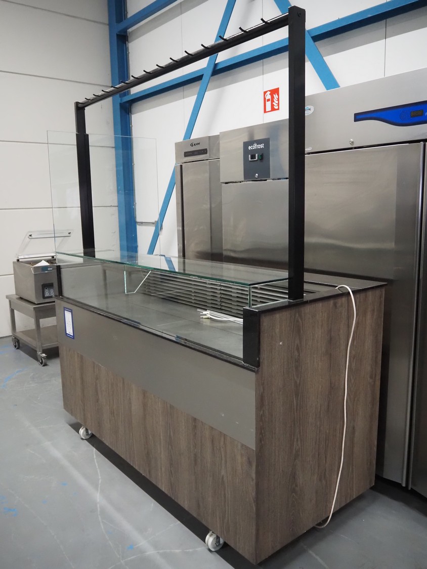 Mobile refrigerated counter, dimensions: 1950 mm x 850 mm x 2200 mm.