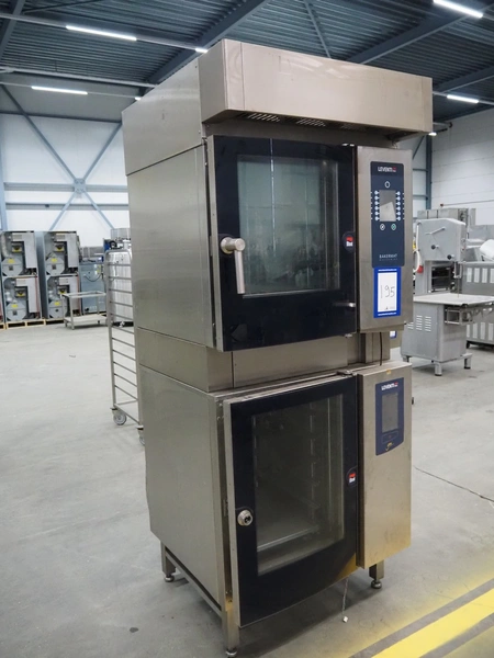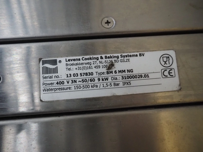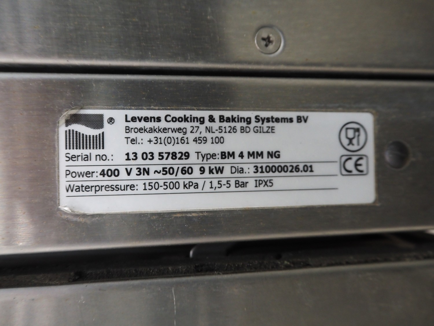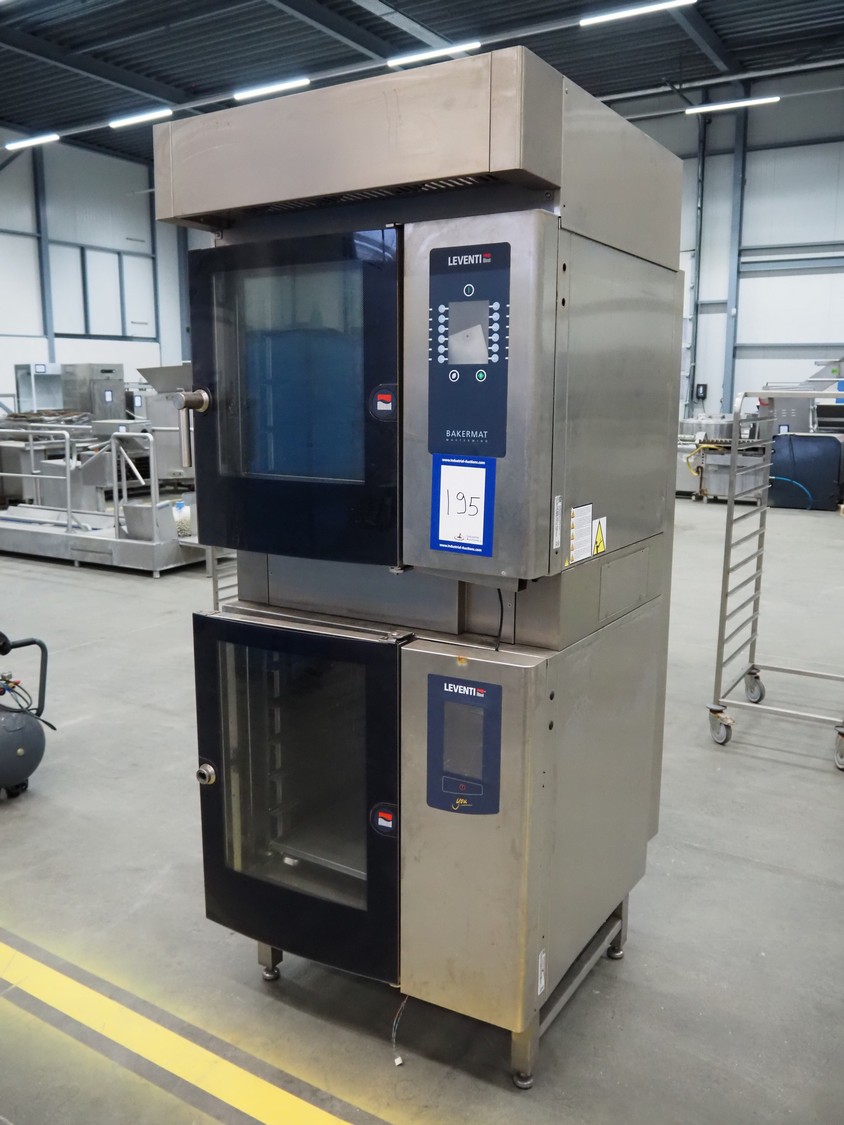 Leventi double combi steamer, type: BM 6 MM NG and BM 4 MM NG, number: 13 03 57830 and 13 03 57829, 400 V, 3 Ph, 50/60 Hz, 9 kW, 4 and 6 floors, dimensions each floor: 600 mm x 400 mm, total dimensions: 1000 mm x 900 mm x 2200 mm.