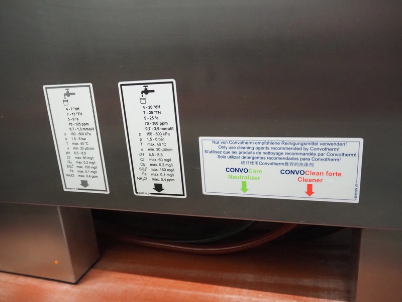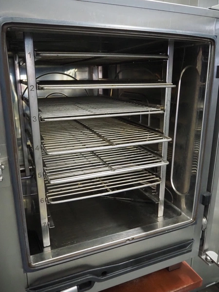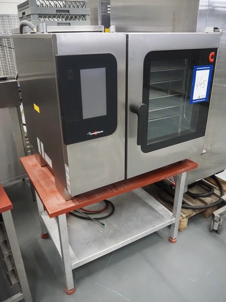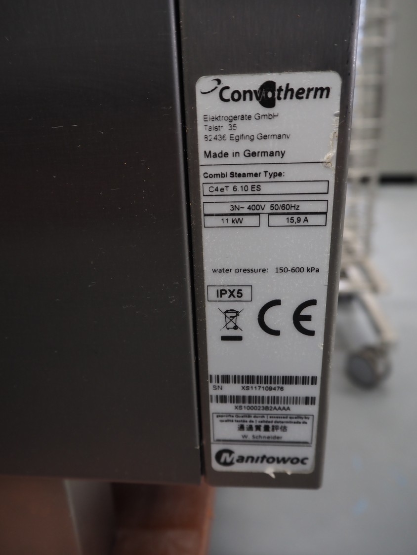 Convotherm combi steamer on s/s frame, type: C4eT 6.10ES, serial number: XS117109476, 400 V, 3 Ph, 50/60 Hz, 15.9 A, 11 kW, 7 floors, dimensions each floor: 530 mm x 330 mm, total dimensions: 1000 mm x 800 mm x 1530 mm.