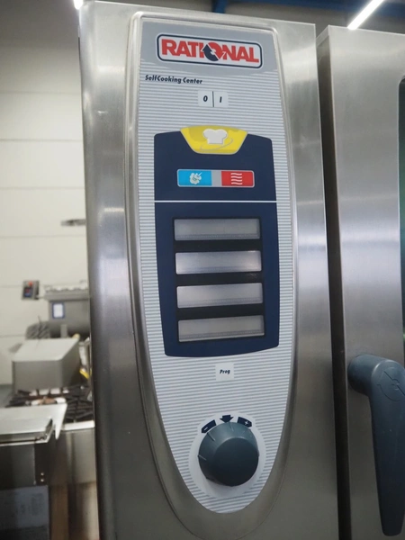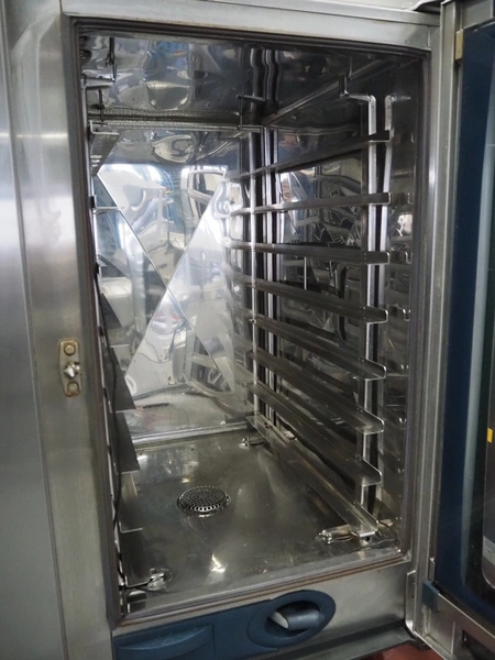 Rational combi steamer, 400 V, 50 Hz, 8 floors, floor dimensions: (8x) 410 mm x 610 mm, total dimensions: 980 mm x 850 mm x 1860 mm.