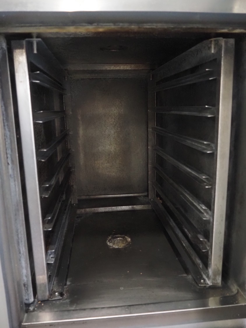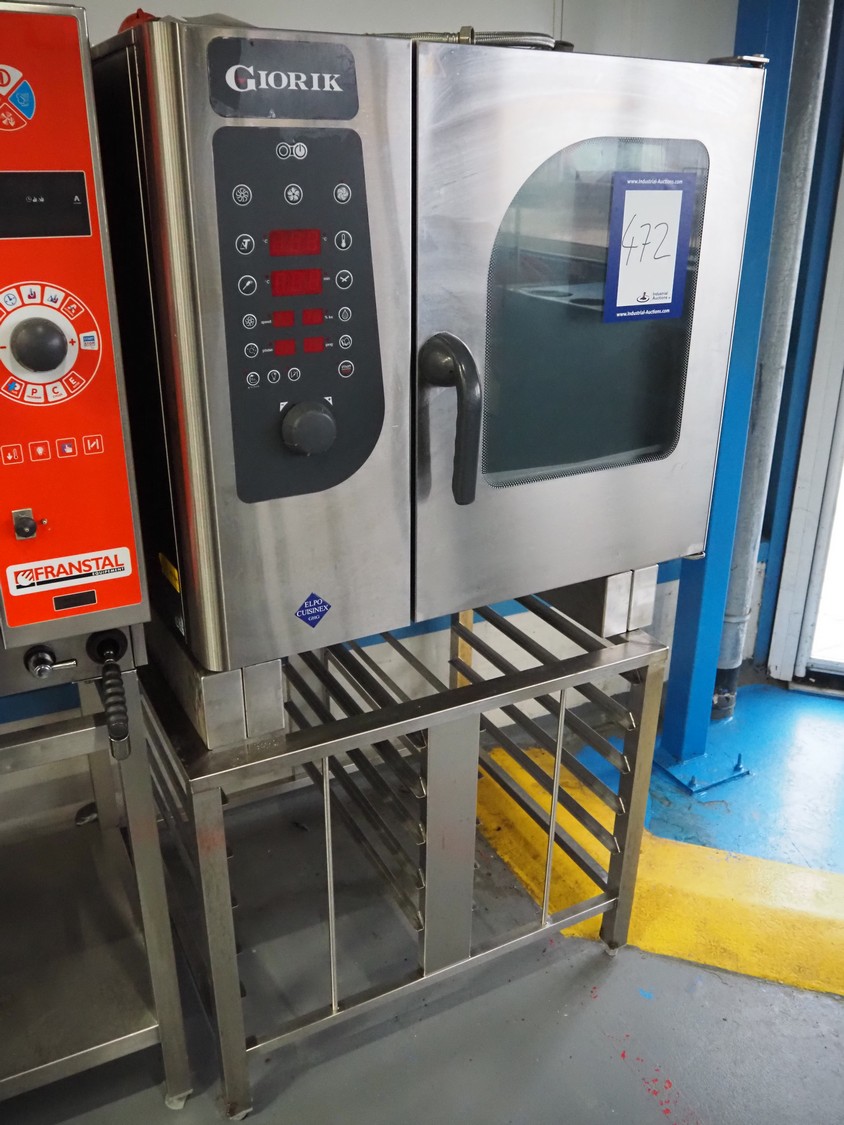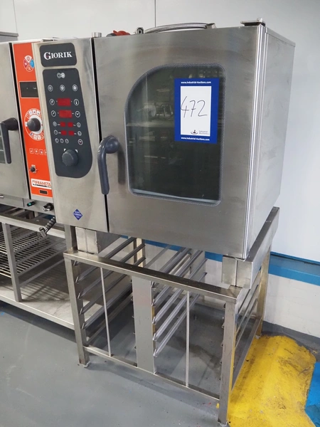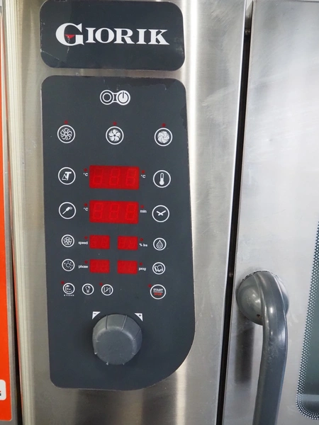 Giorik combi steamer, 400 V, 3 Ph, 50 Hz, 6 floors, dimensions each floor: 510 mm x 330 mm, total dimensions: 850 mm x 850 mm x 830 mm.