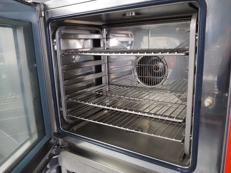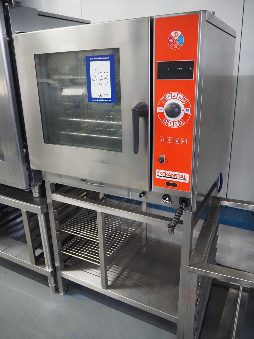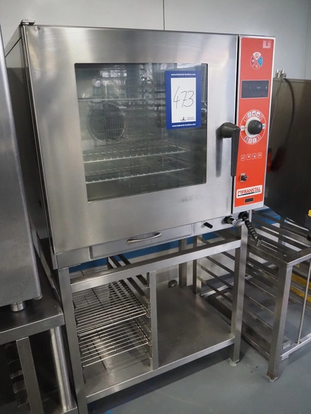 Franstal combi steamer on s/s frame, type: ME061T, serial number: LA020009220, 6 floors, floor dimensions: 530 mm x 300 mm, total dimensions: 950 mm x 900 mm x 1720 mm.