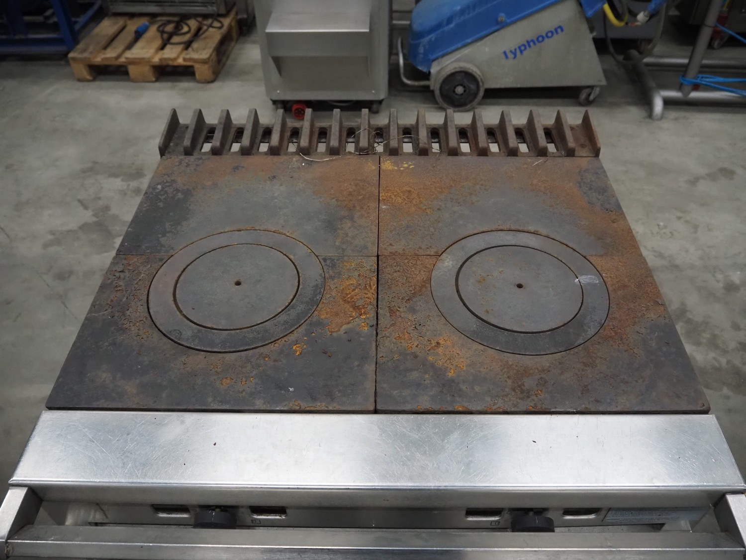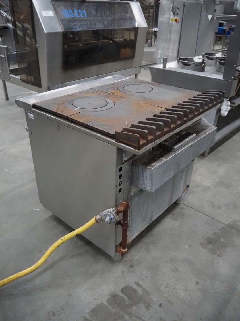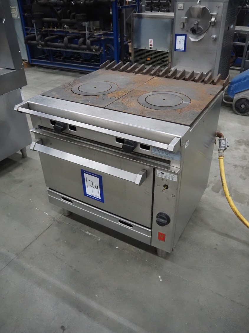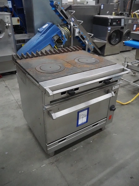 Falcon gas stove with oven, model: G1006FX, serial number: F574077, dimensions: 900 mm x 950 mm x 900 mm.