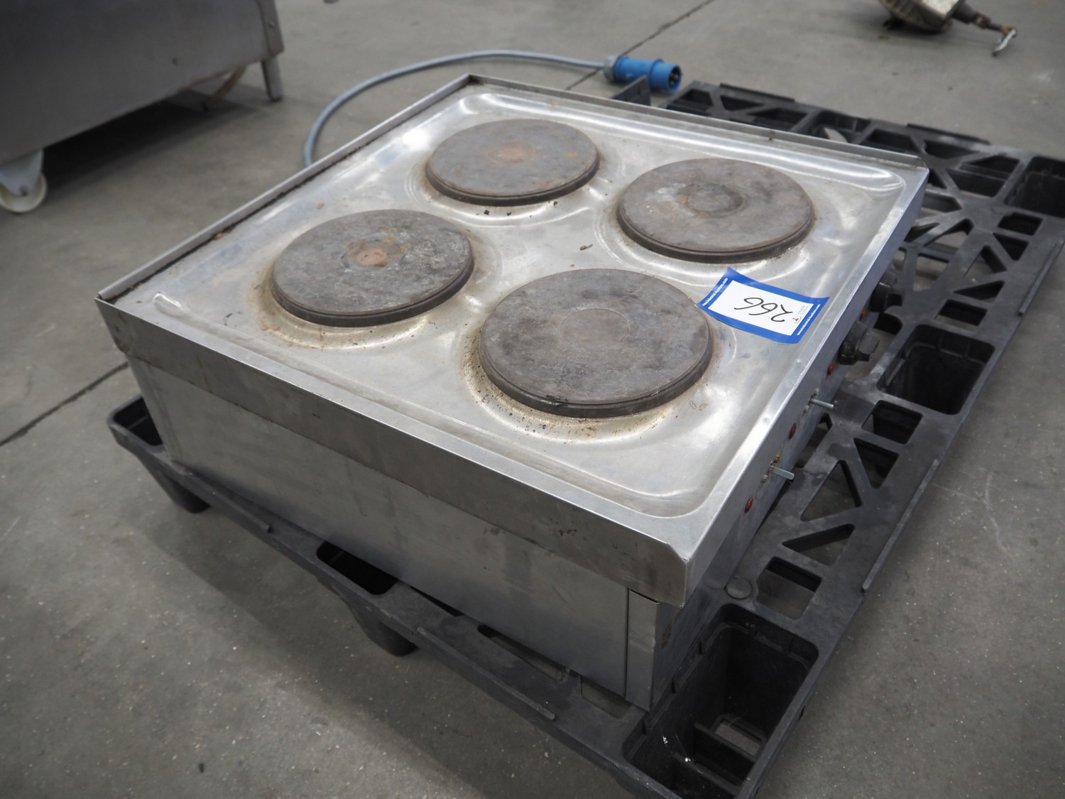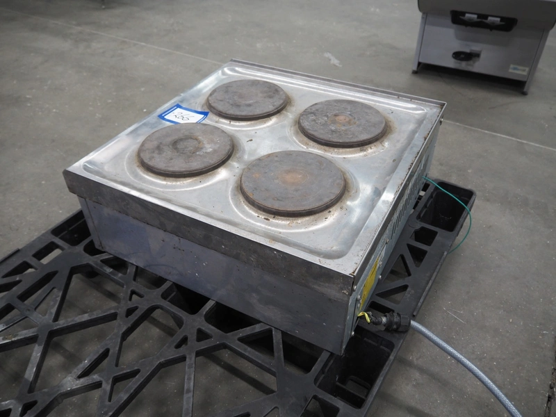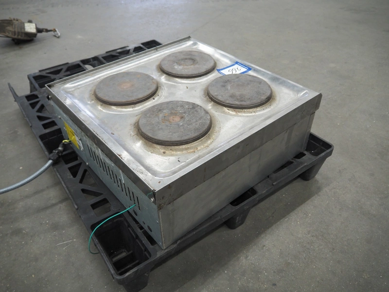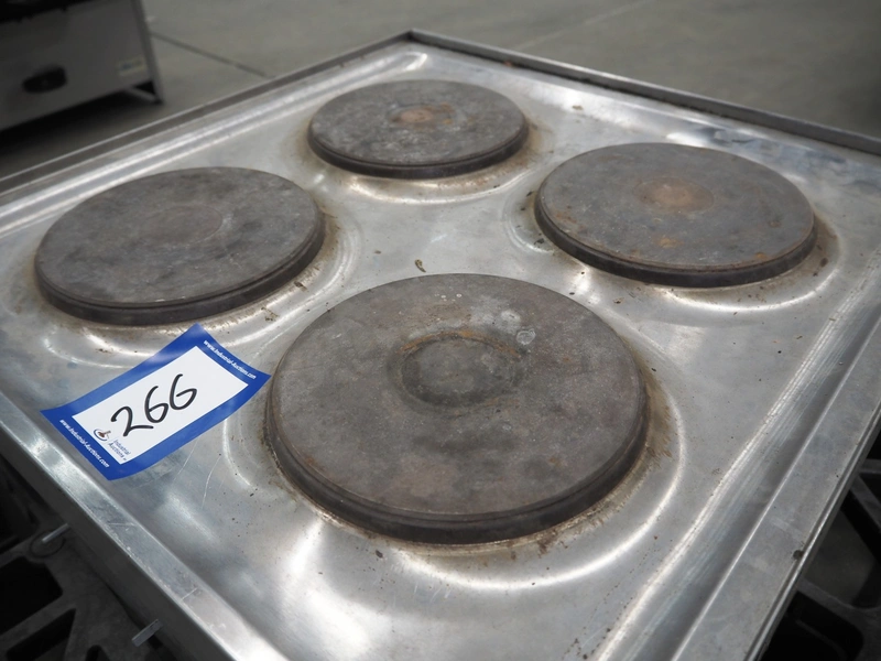 Parry 4 pits stove, model: N1871, serial number: 160160283, 240/415 V, 50 Hz, 8.5/12.5/29.2 A, 7 kW, dimensions: 600 mm x 610 mm x 220 mm. Missing 2 buttons.