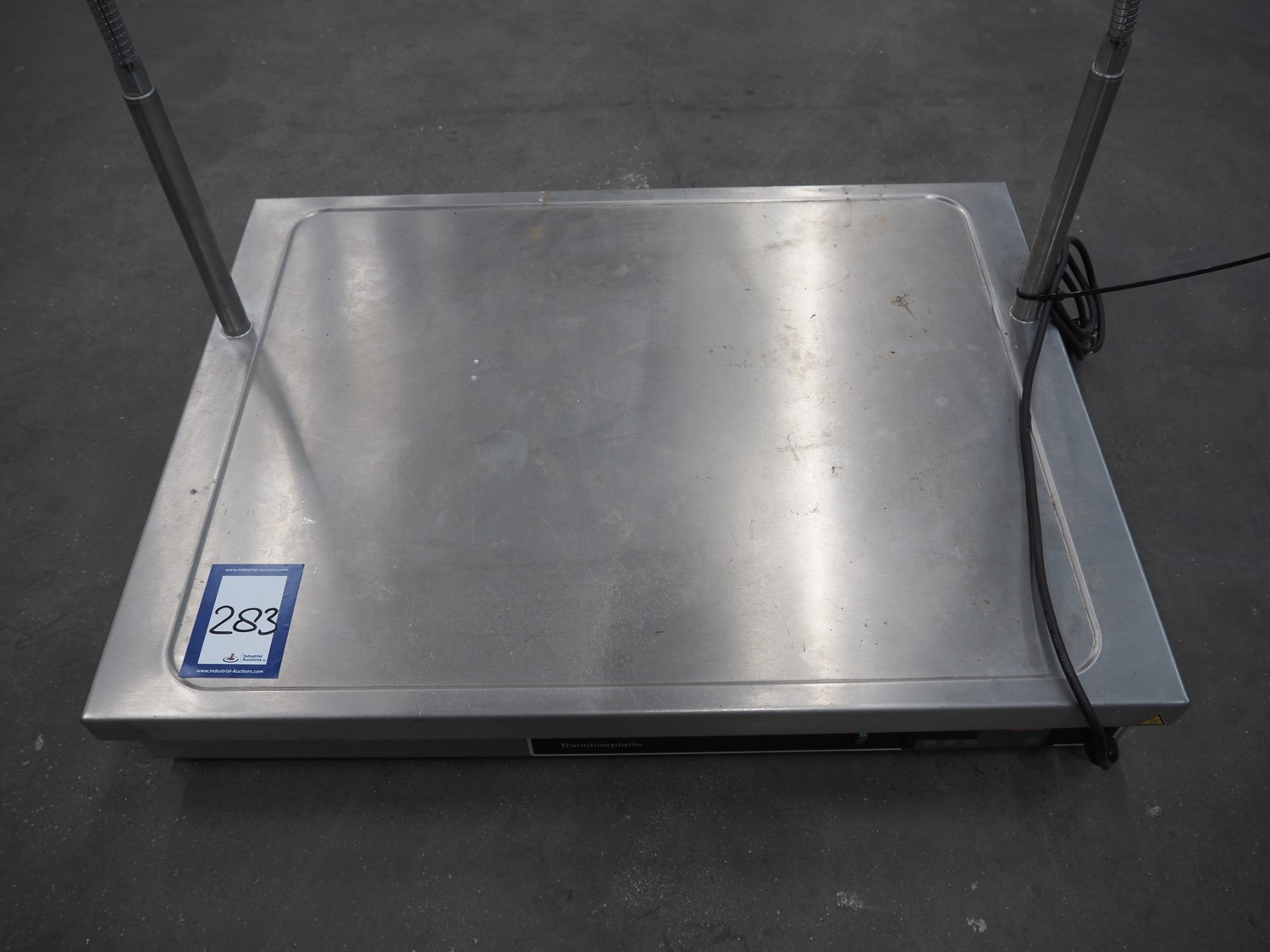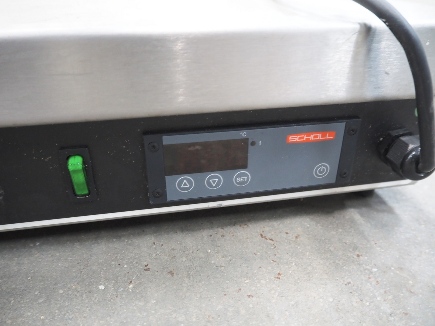 Scholl Apparatebau warming plate, serial number: 541362-003, 230 V, 50 Hz, 1.25 kW, dimensions: 800 mm x 600 mm x 650 mm.