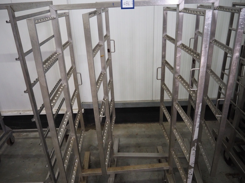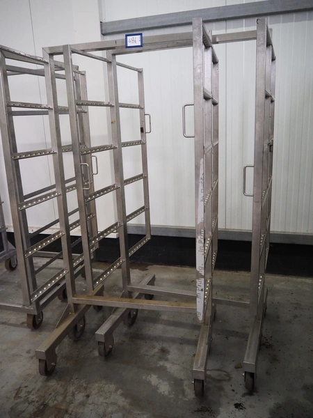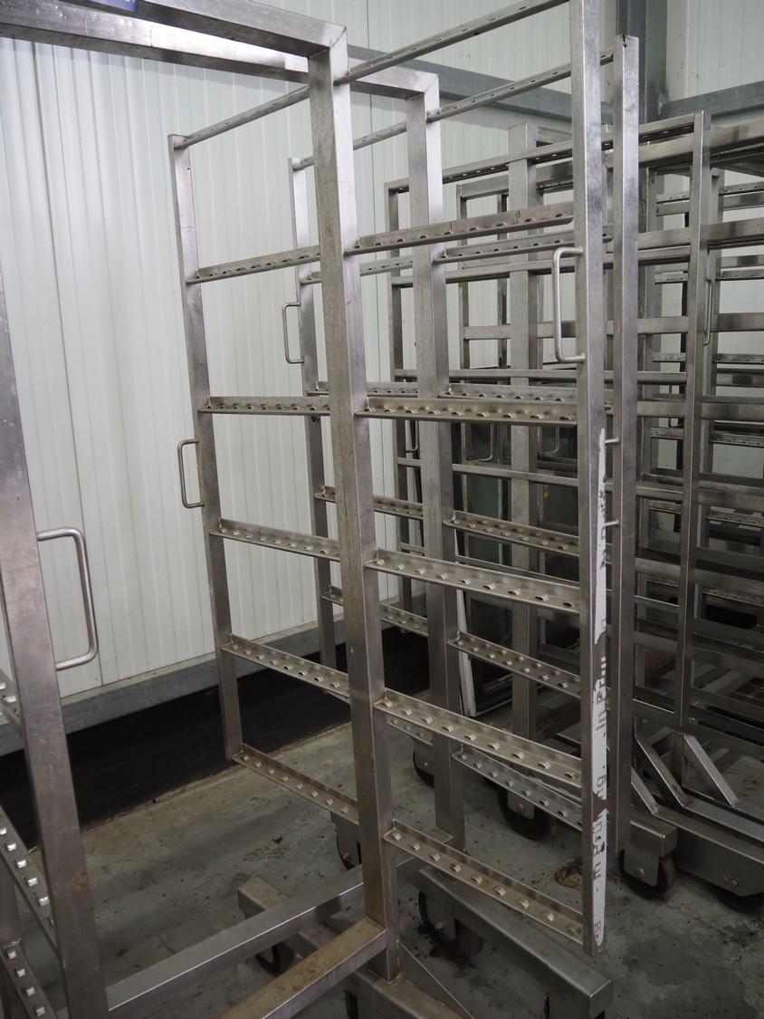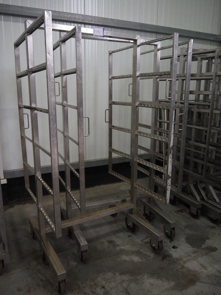Steel trolley, dimensions: 820 mm x 730 mm x 1530 mm.