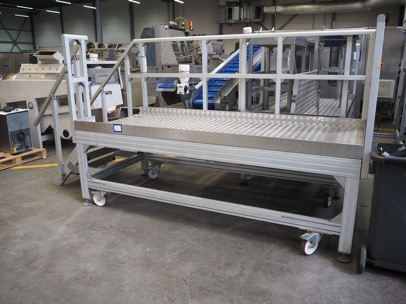 Aluminium mobile working platform, working height: 800 mm, total dimensions: 3700 mm x 1200 mm x 1700 mm.