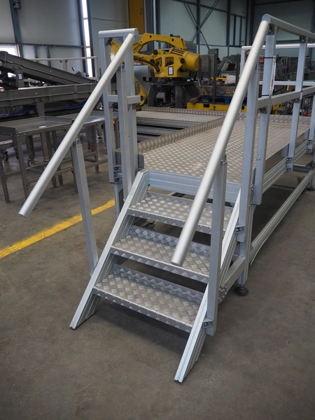 Aluminium mobile working platform, working height: 800 mm, total dimensions: 3700 mm x 1200 mm x 1700 mm.