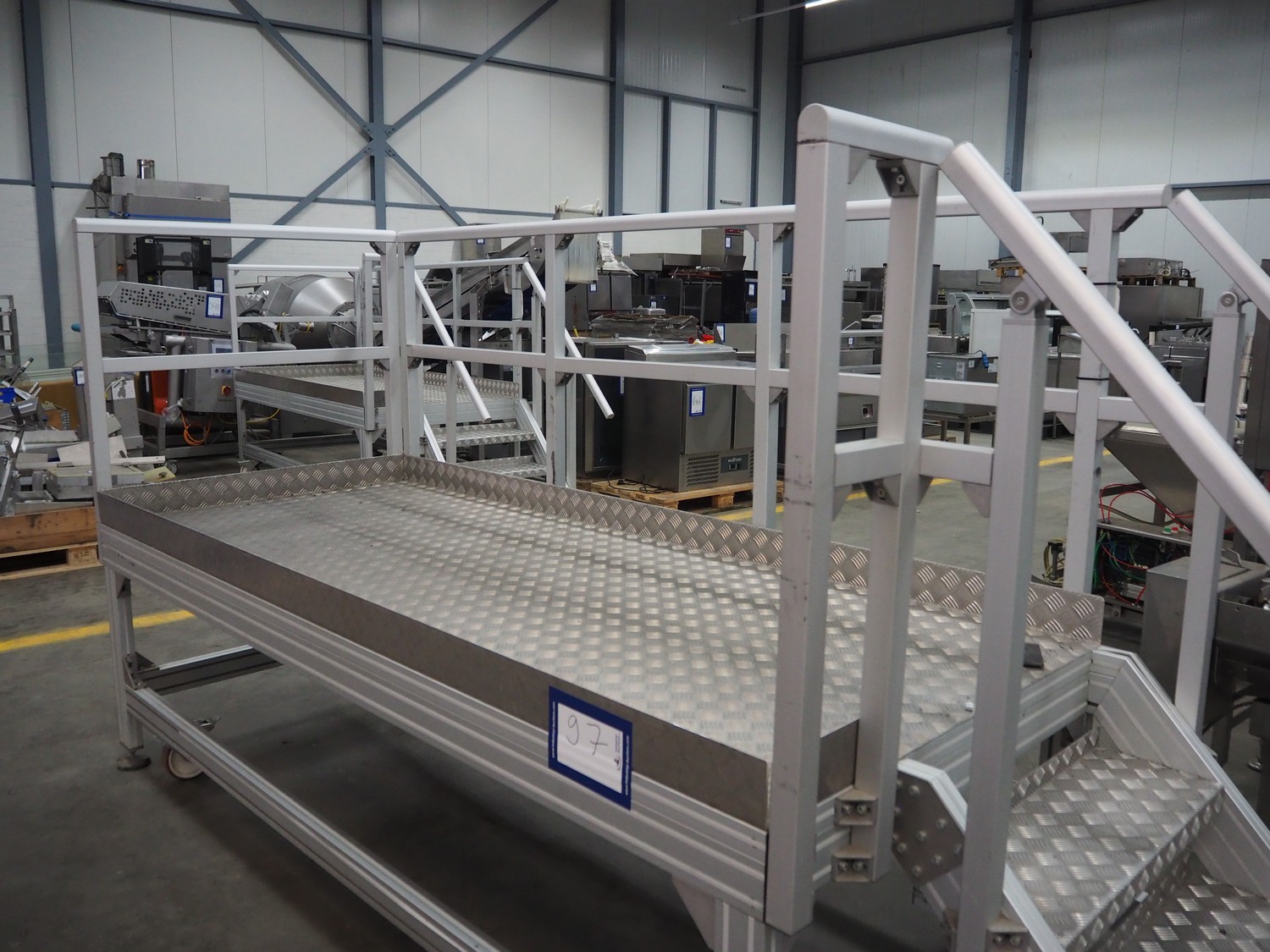 Aluminium mobile working platform, working height: 800 mm, total dimensions: 3700 mm x 1200 mm x 1700 mm.