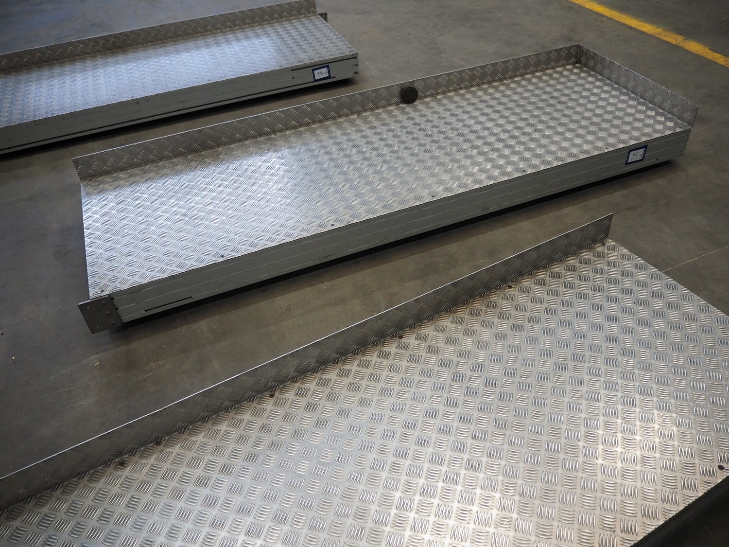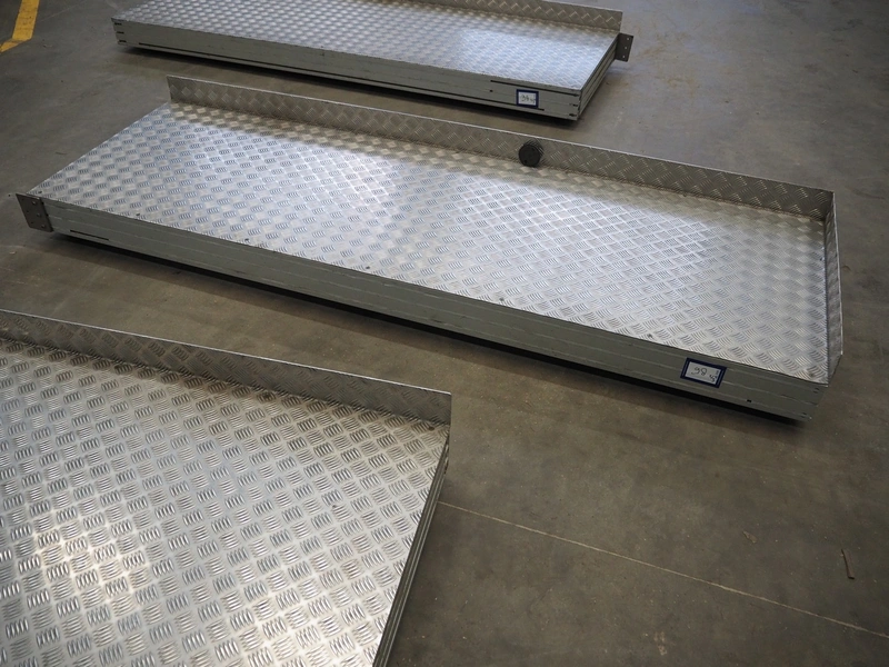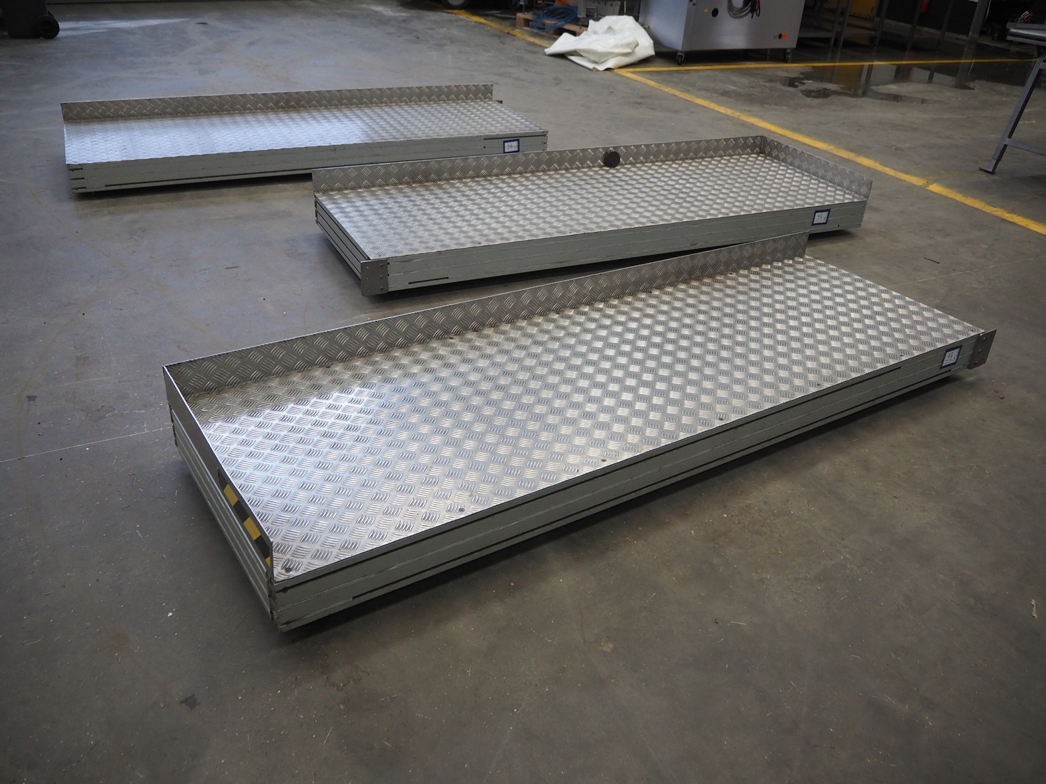 3 aluminium platforms, dimensions: 2500 mm x 800 mm x 280 mm.