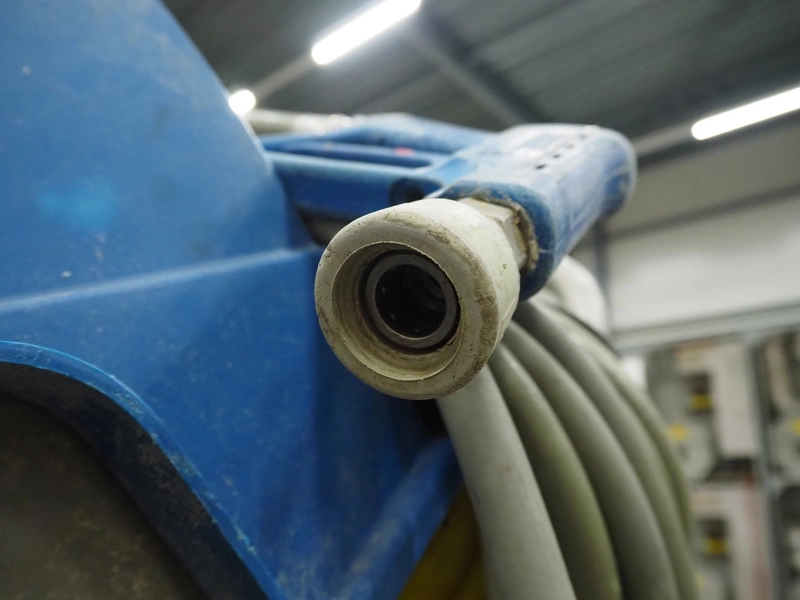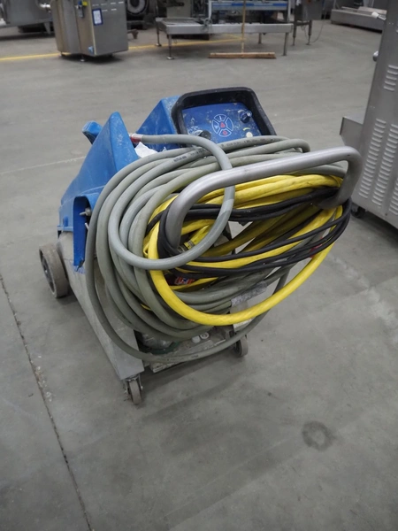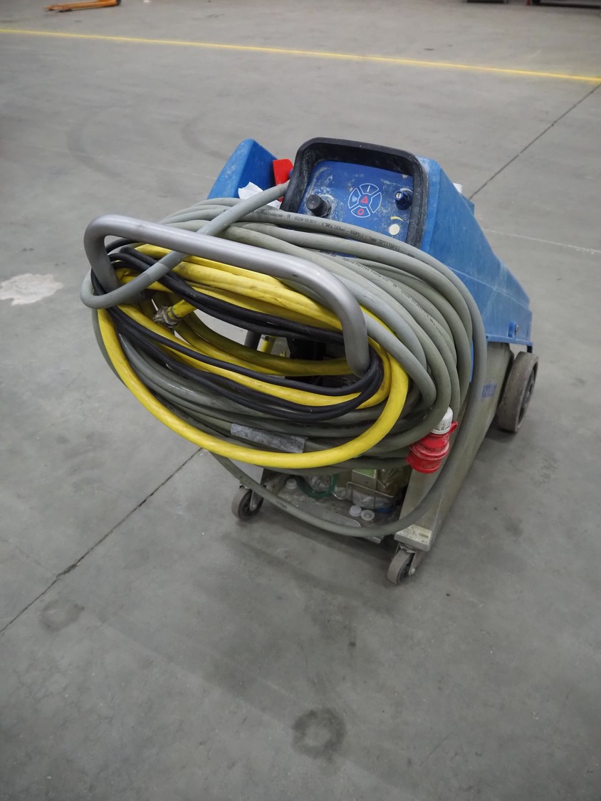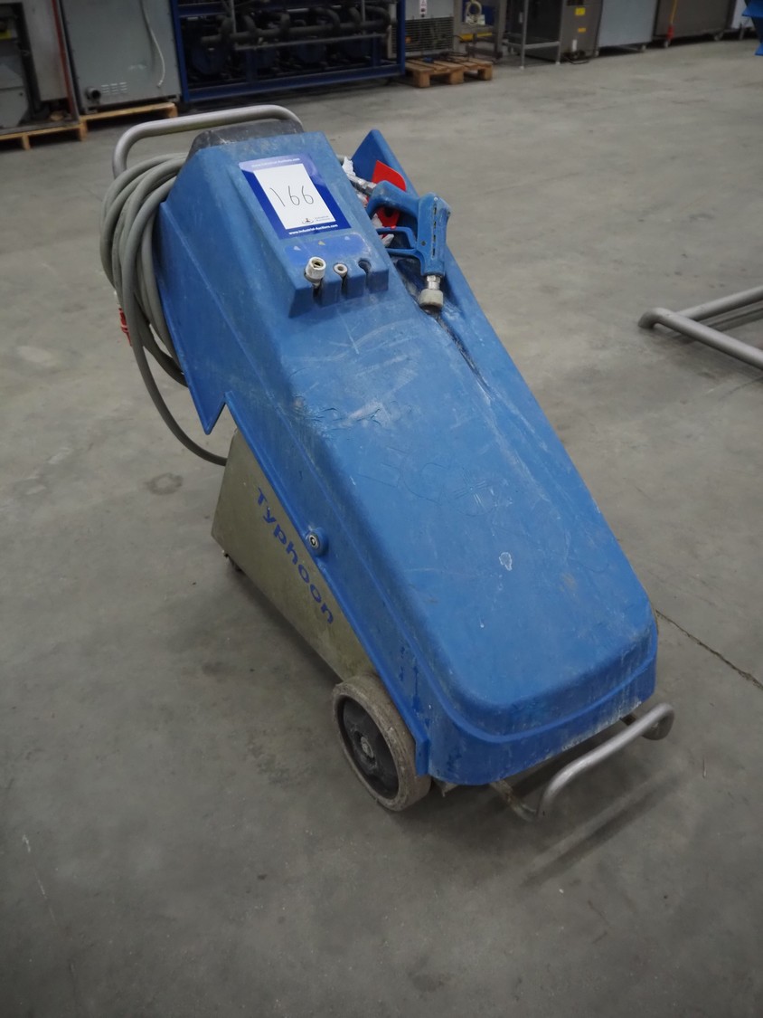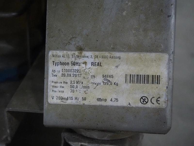 Nilfisk mobile high pressure cleaner, model: Typhoon 50HZ, serial number: 94665, year of construction: 20.09.2013, 380 V, 50 Hz, 4.75 A, weight: 126 kg, max temperature: 70 ⁰C, maximum water supply: 50 litres per minute, dimensions: 1450 mm x 600 mm x 1020 mm.