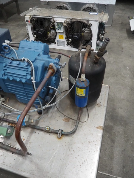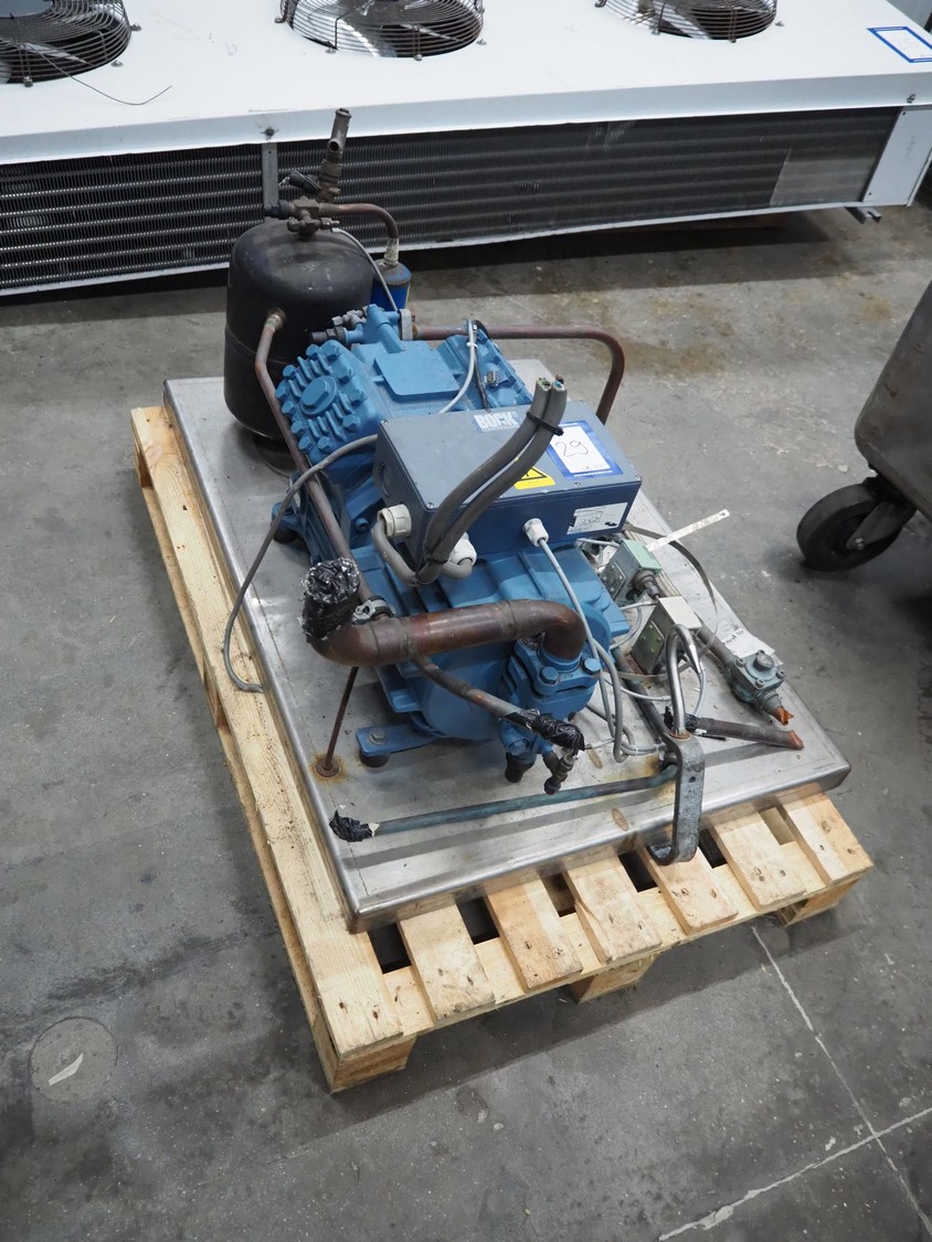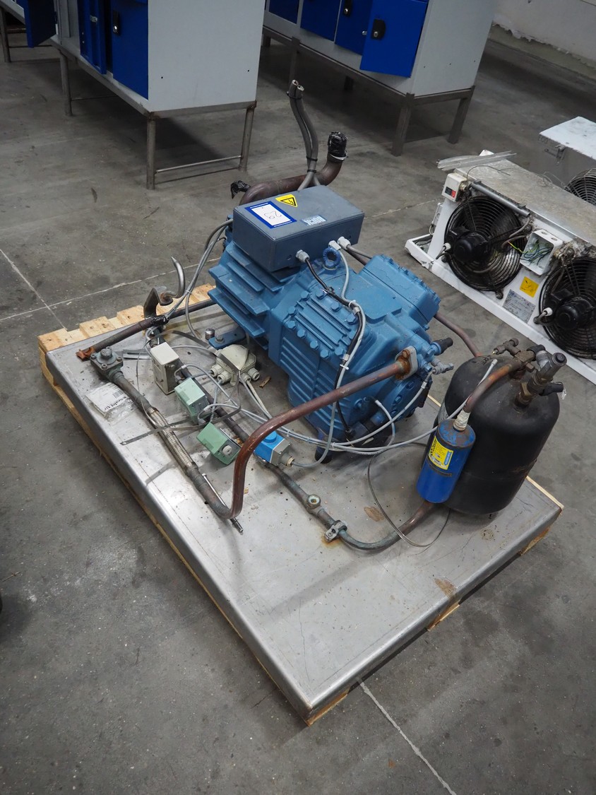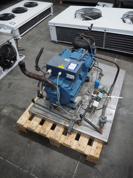 GEA Bock GmbH cooling compressor, type: HGX4/650-4, number: AV20271A019, capacity: 56.6 m³ per hour, dimensions: 1100 mm x 800 mm x 650 mm.