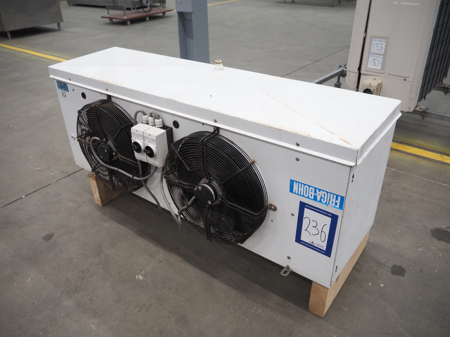Friga-Bohn evaporator, 2 fans, type: GKB08.C, serial number: MY0080, 230/400 V, 3 Ph, 50 Hz, dimensions: 1700 mm x 600 mm x 680 mm.