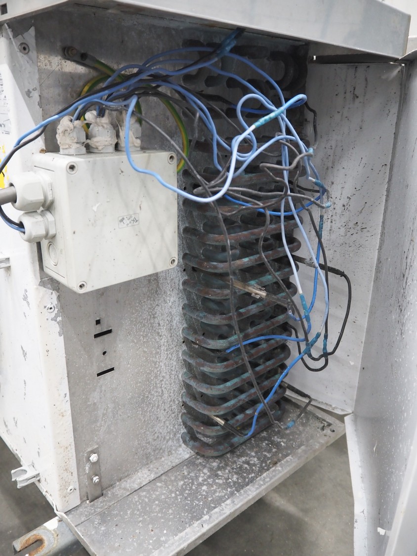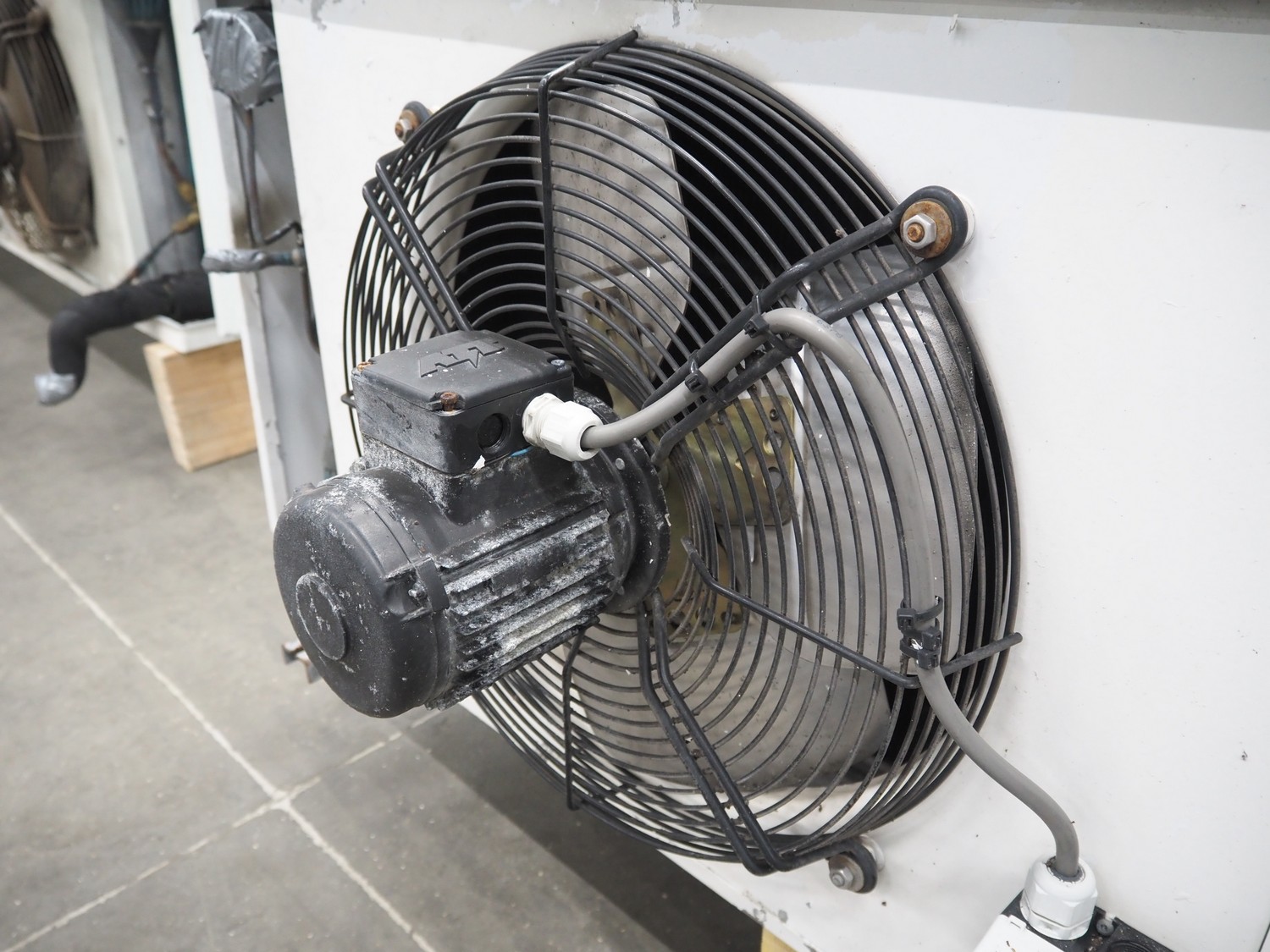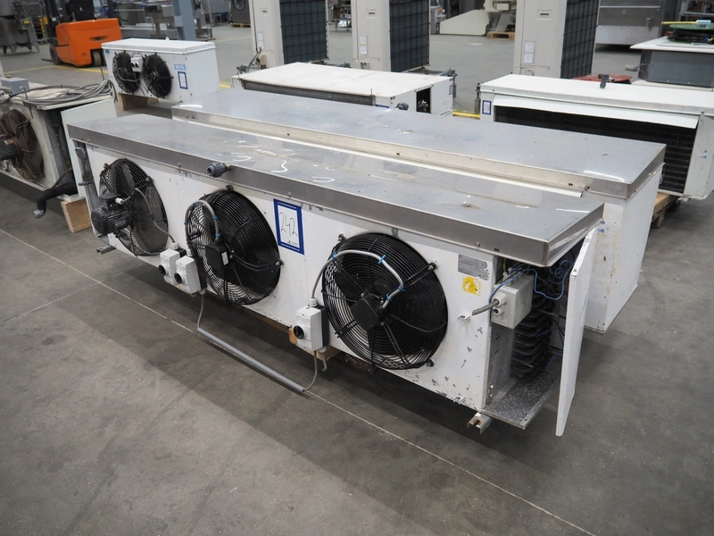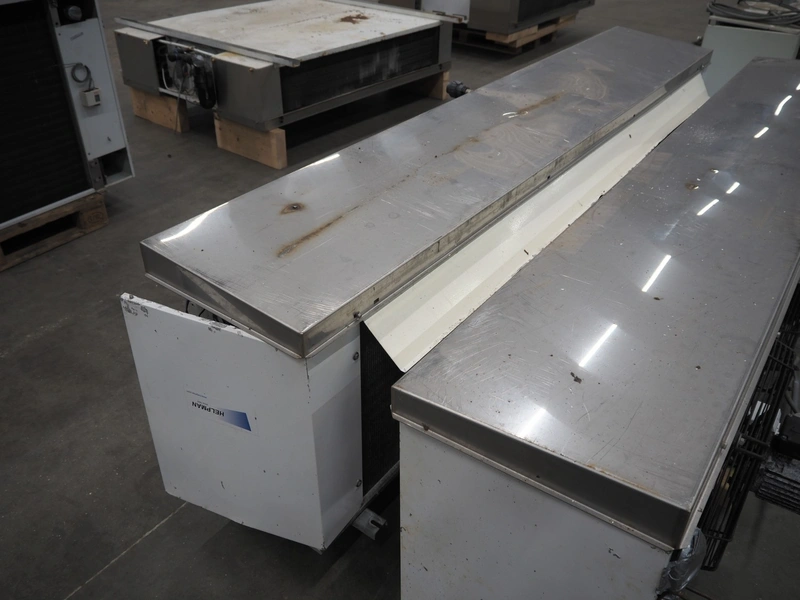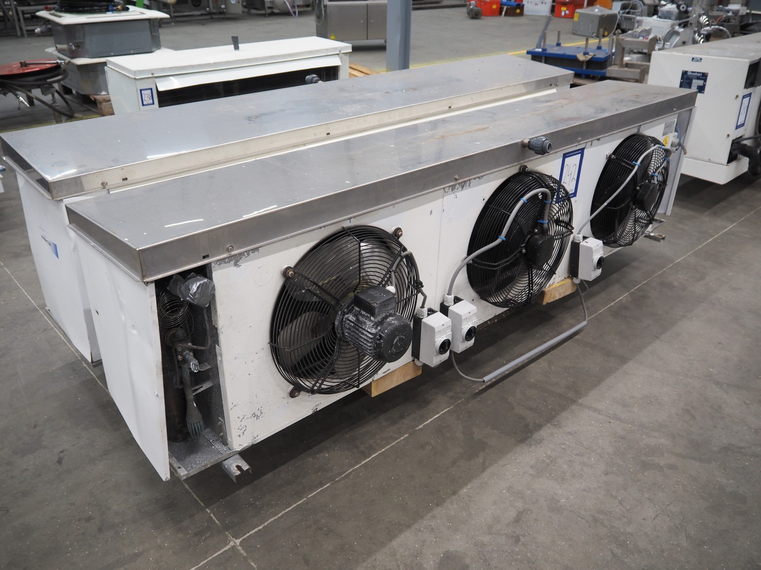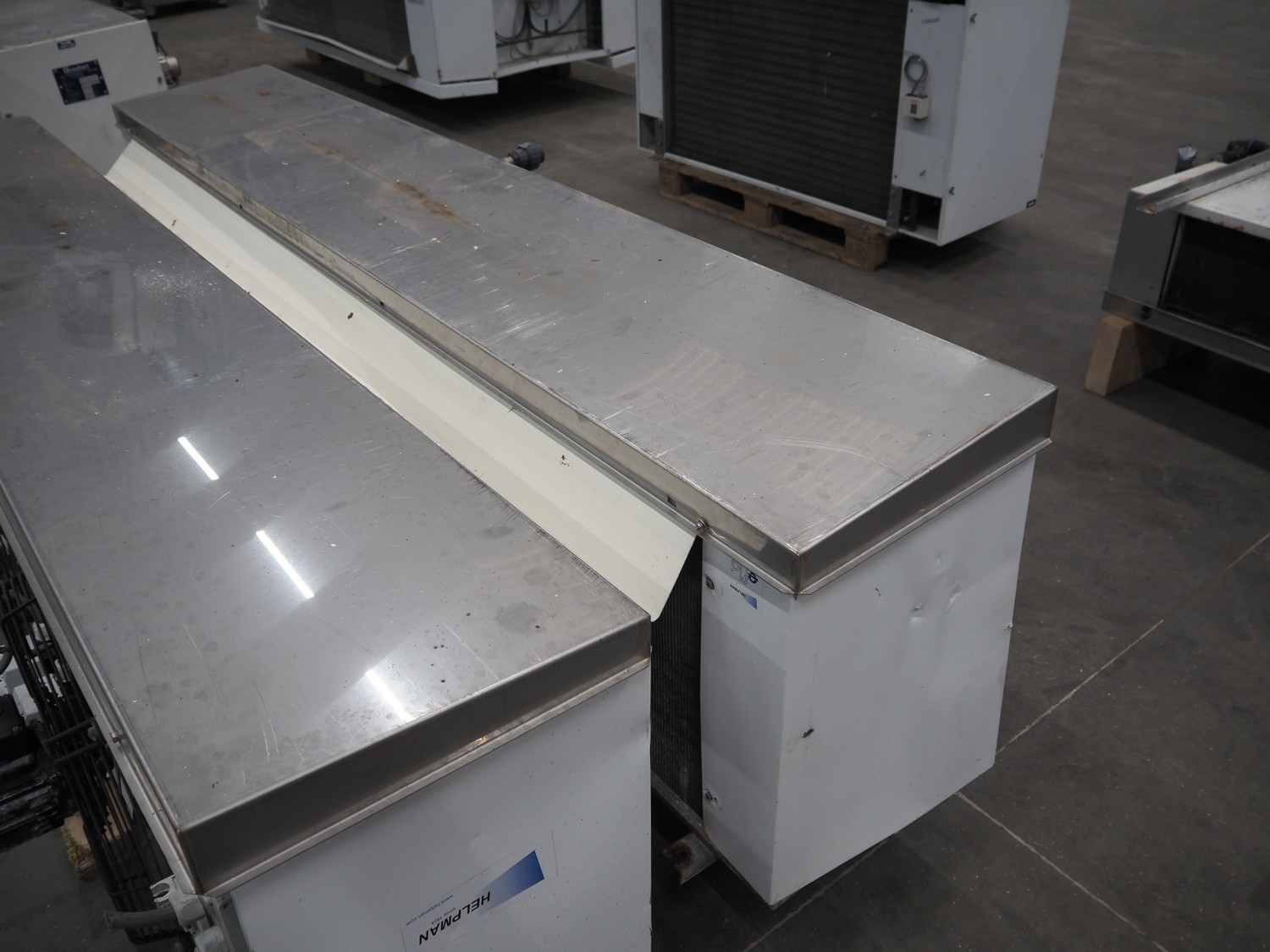Helpman evaporator, 3 fans, year of construction: 2004, 230 V, 1 Ph, 50 Hz, maximum temperature: -55/63 ⁰C, maximum pressure: 25 bar, volume: 30.9 dm³, weight: 159 kg, dimensions: 2650 mm x 700 mm x 700 mm.