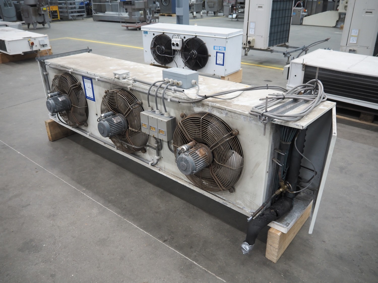 Helpman evaporator, 3 fans, dimensions: 2620 mm x 700 mm x 800 mm.