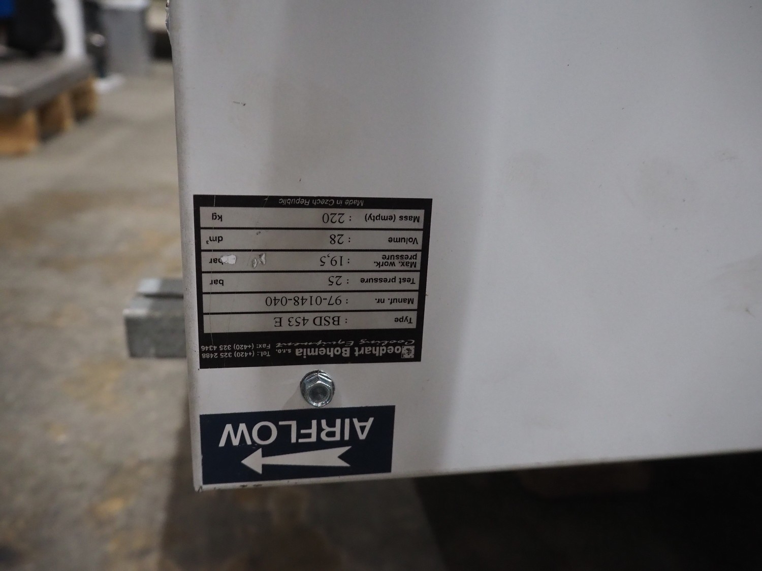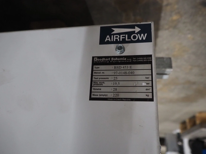Goedhart Bohemia evaporator, type: BSD 453 E, manufacturing number: 97-0148-040, 3 fans, weight: 220 kg, dimensions: 3000 mm x 1000 mm x 400 mm.