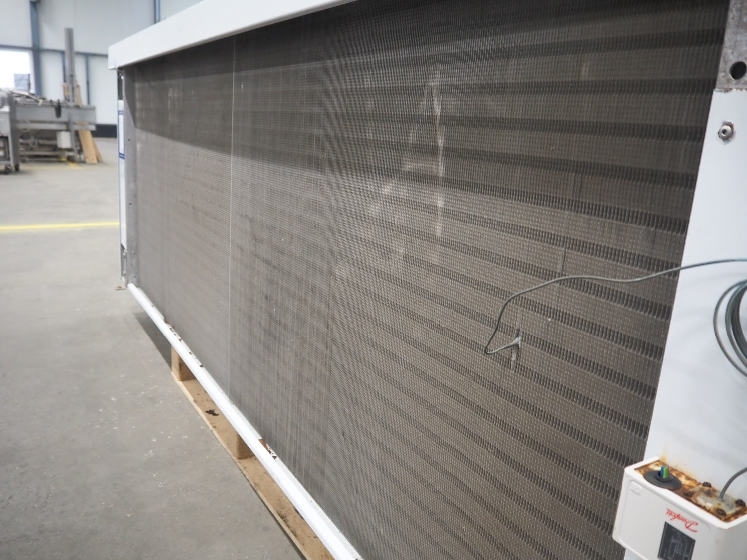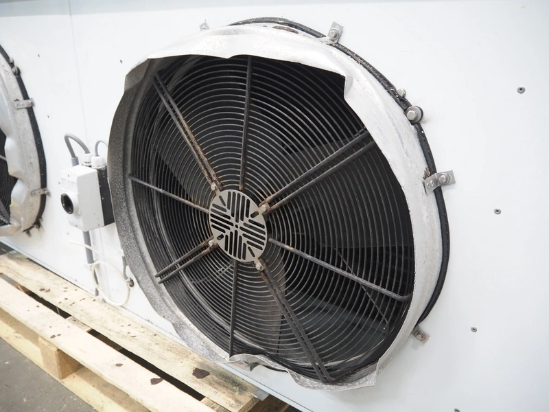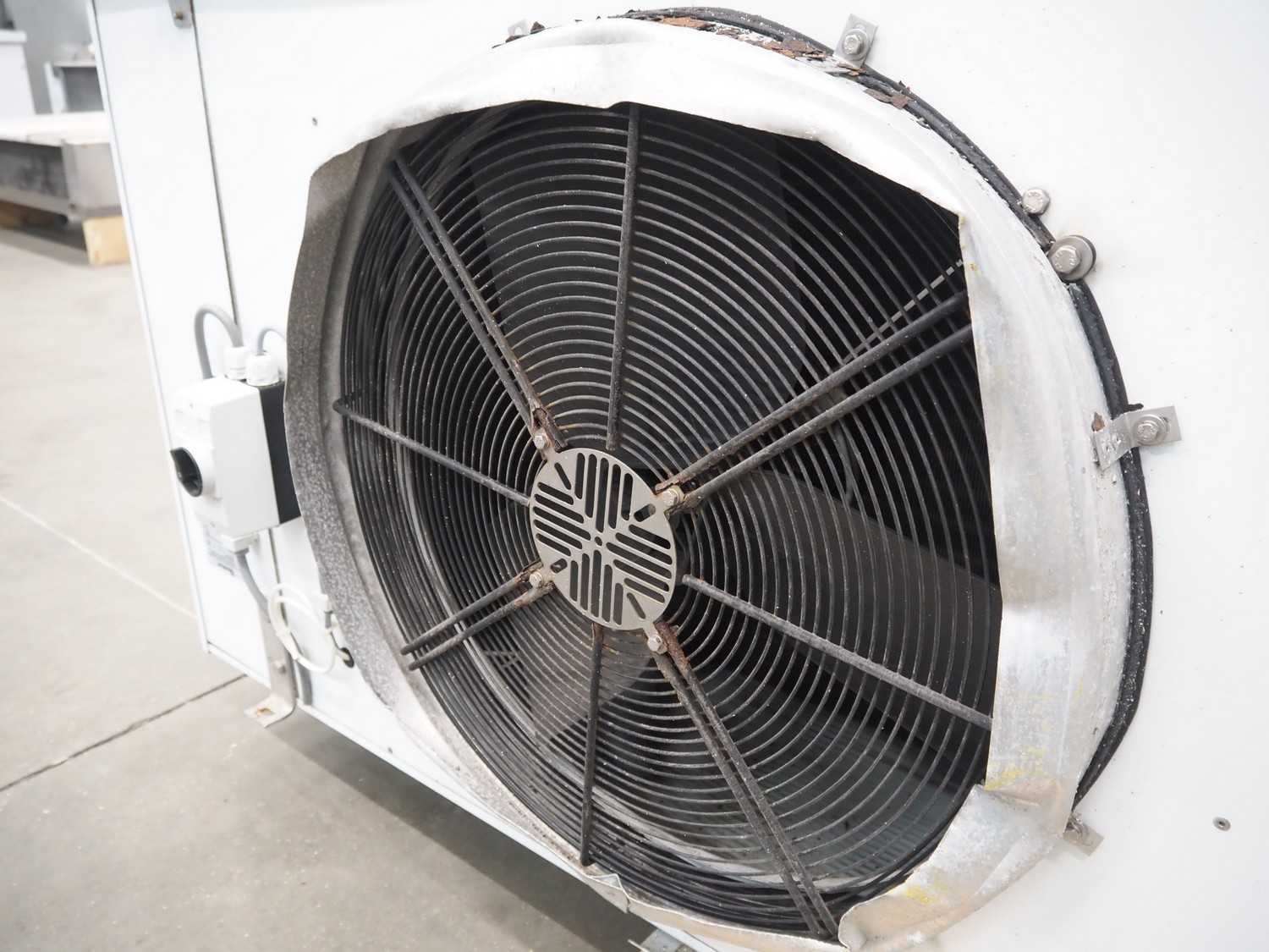 Goedhart evaporator, 2 fans, type: SKU38 62634, manufacturing number: PJV071614. VK0701376/270702170, year of construction: 2007, fluid: R404a, maximum work pressure: 28 bar, working temperature: +55/-1⁰C, volume: 41 dm³, dimensions: 2860 mm x 780 mm x 1250 mm.