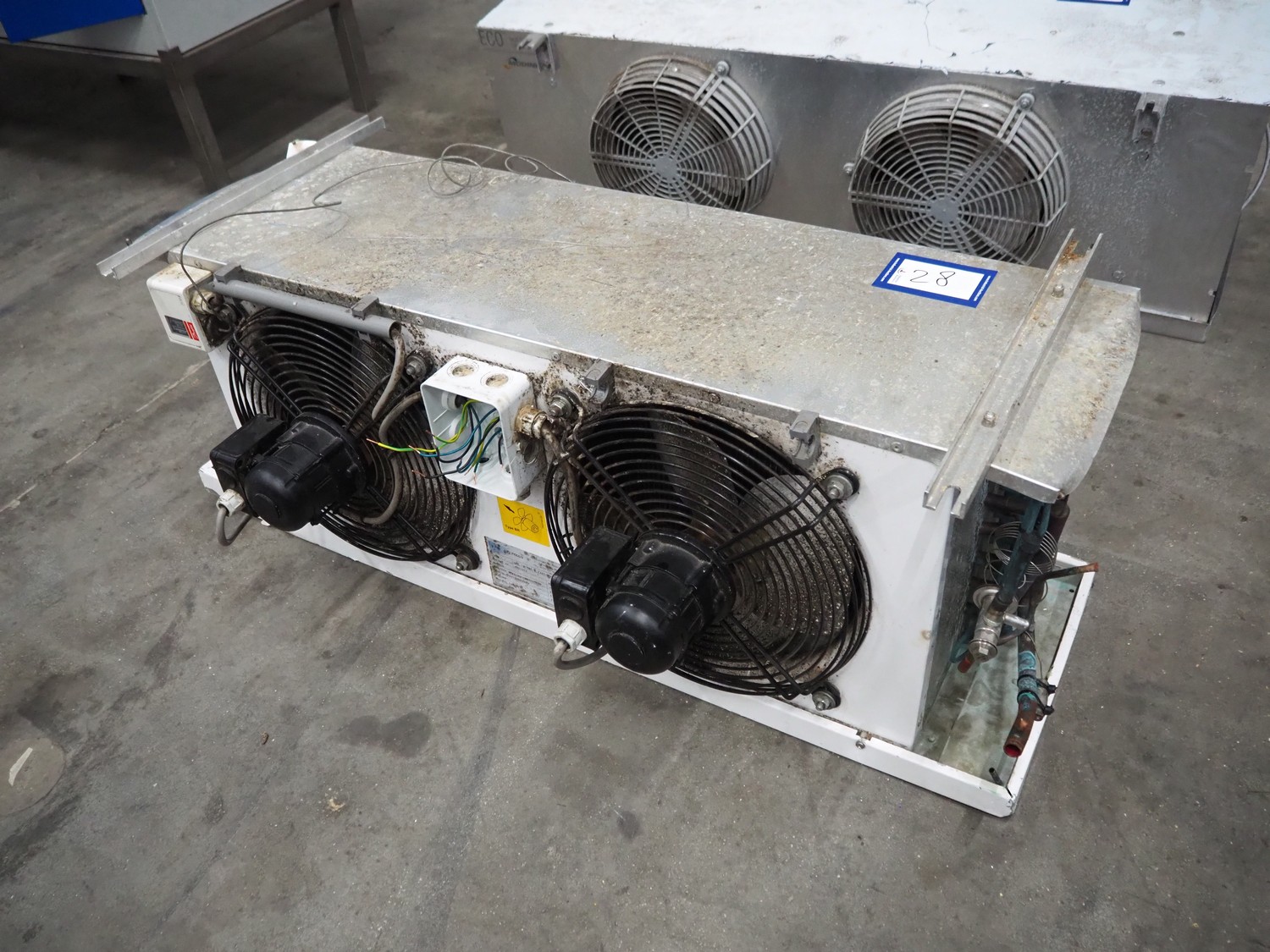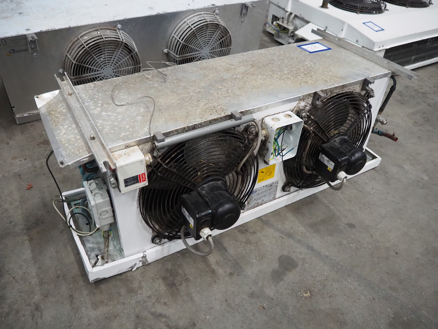 Helpman evaporator, type: LEX 10-7RI-E/220-50-1, serial number: 470-004, refrigerant: R22/R404a, weight: 32 kg, dimensions: 1000 mm x 500 mm x 450 mm.