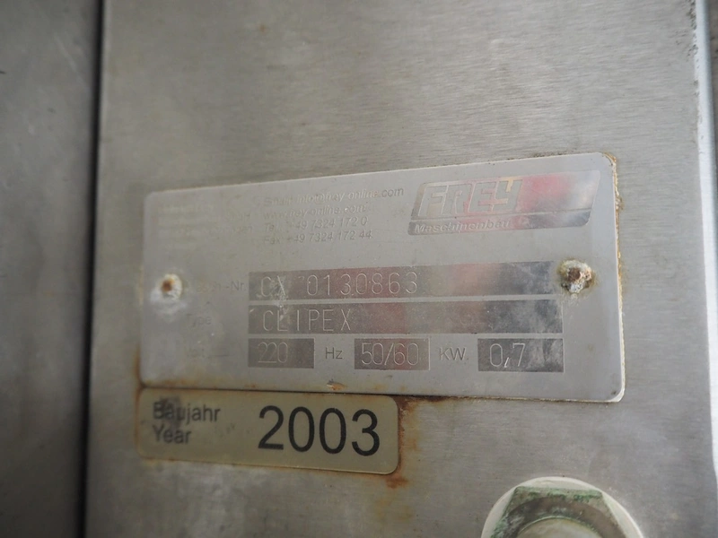Frey Maschinenbau casing sealer, type: CLIPEX, machine number: CX 0130863, year of construction: 2003, 220 V, 50/60 Hz, 0.7 kW, dimensions: 370 mm x 300 mm x 150 mm