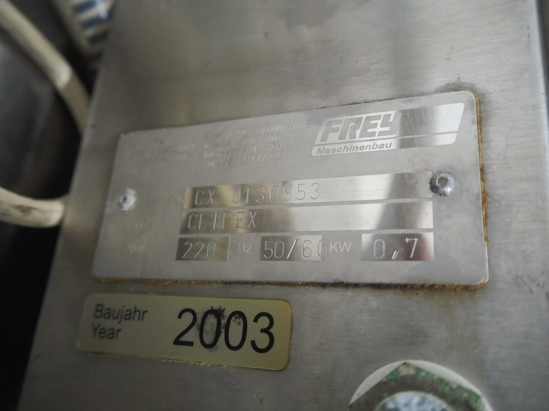 Frey Maschinenbau casing sealer, type: CLIPEX, machine number: CX 0130853, year of construction: 2003, 220 V, 50/60 Hz, 0.7 kW, dimensions: 370 mm x 300 mm x 150 mm